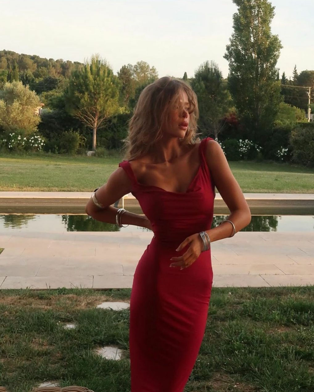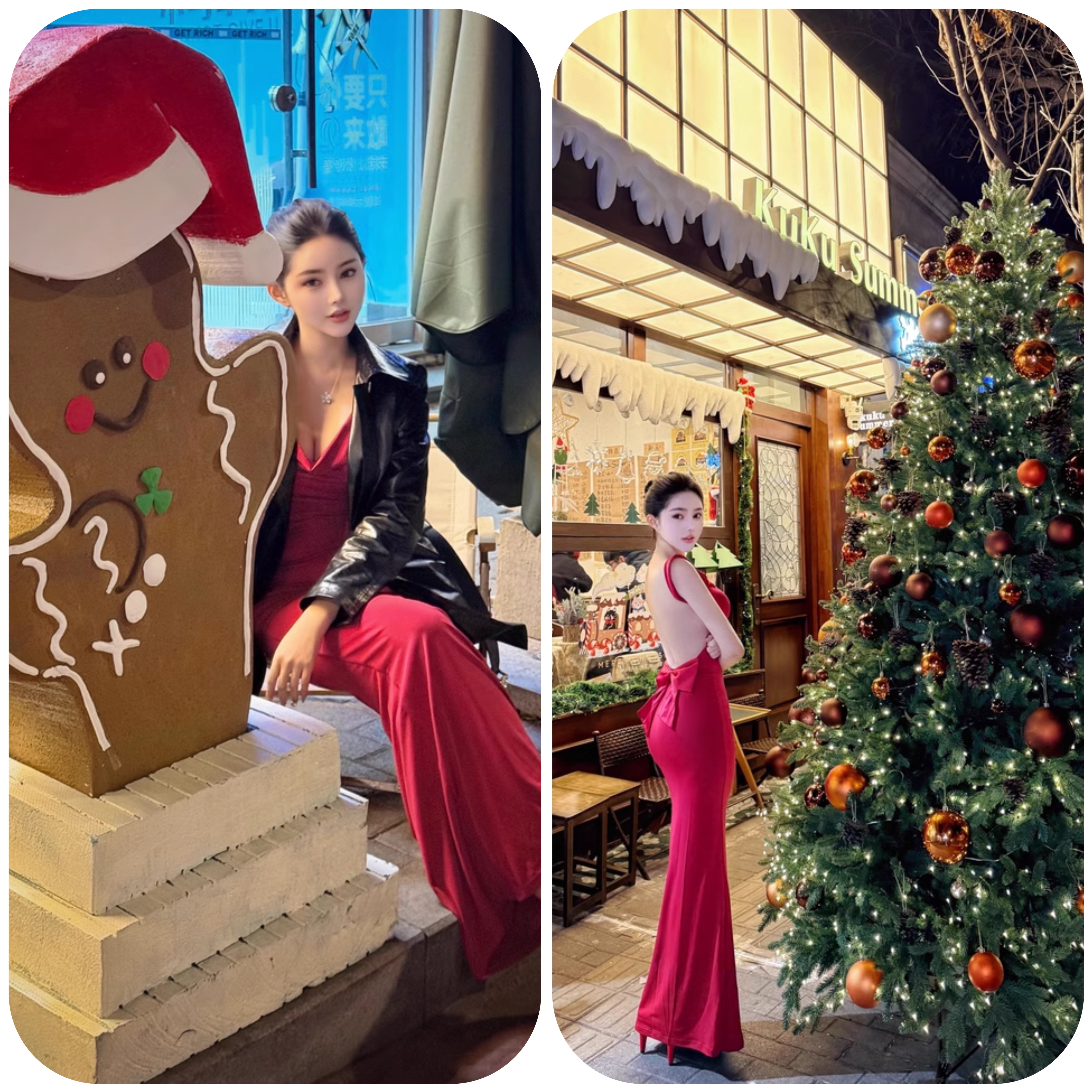 Dana European and American Sexy Hot Girl Dress Style Backless Christmas New Year Red Long Dress Elegant Bodycon Socialite