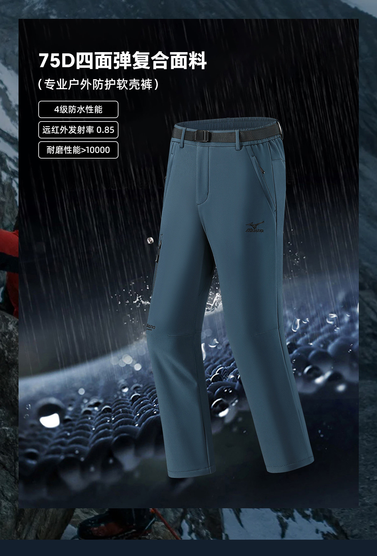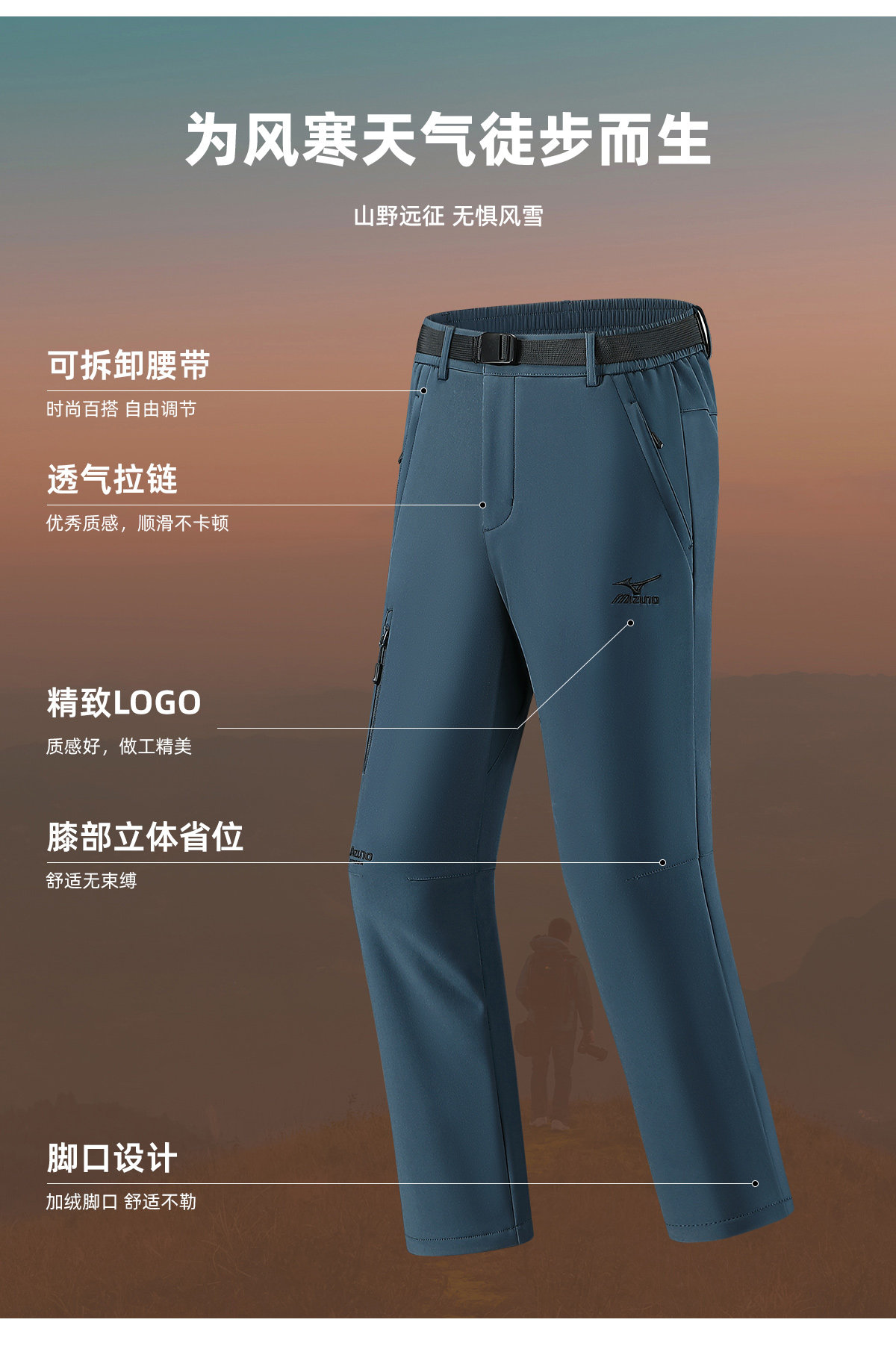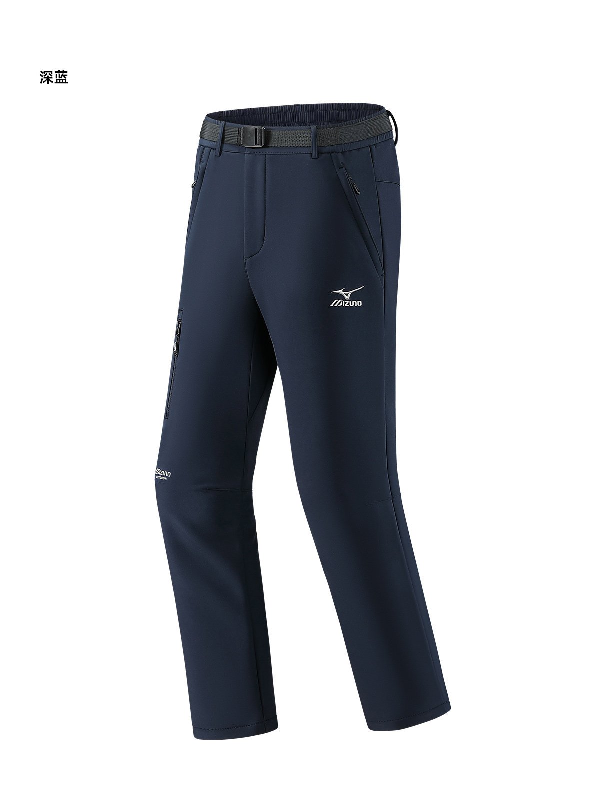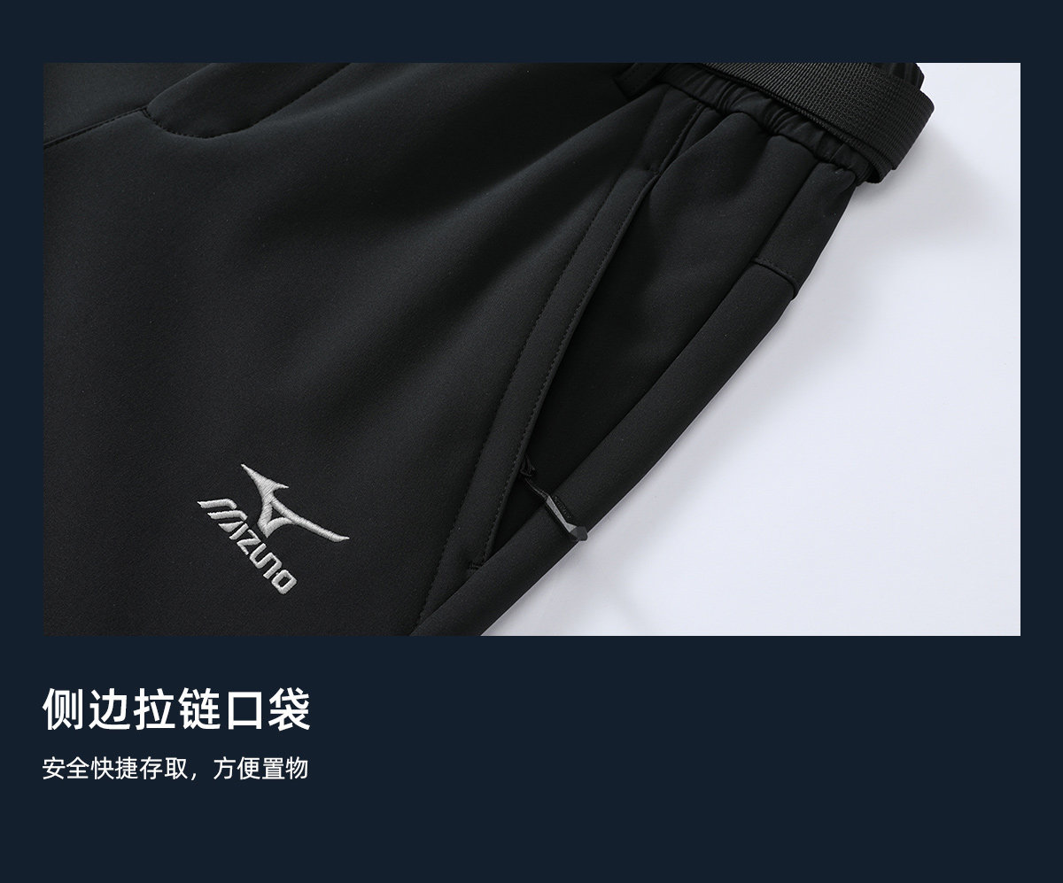 Mizuno Autumn and Winter Windproof and Waterproof Embroidered Fleece-Lined Softshell Pants for Men and Women Outdoor Hiking Long Pants