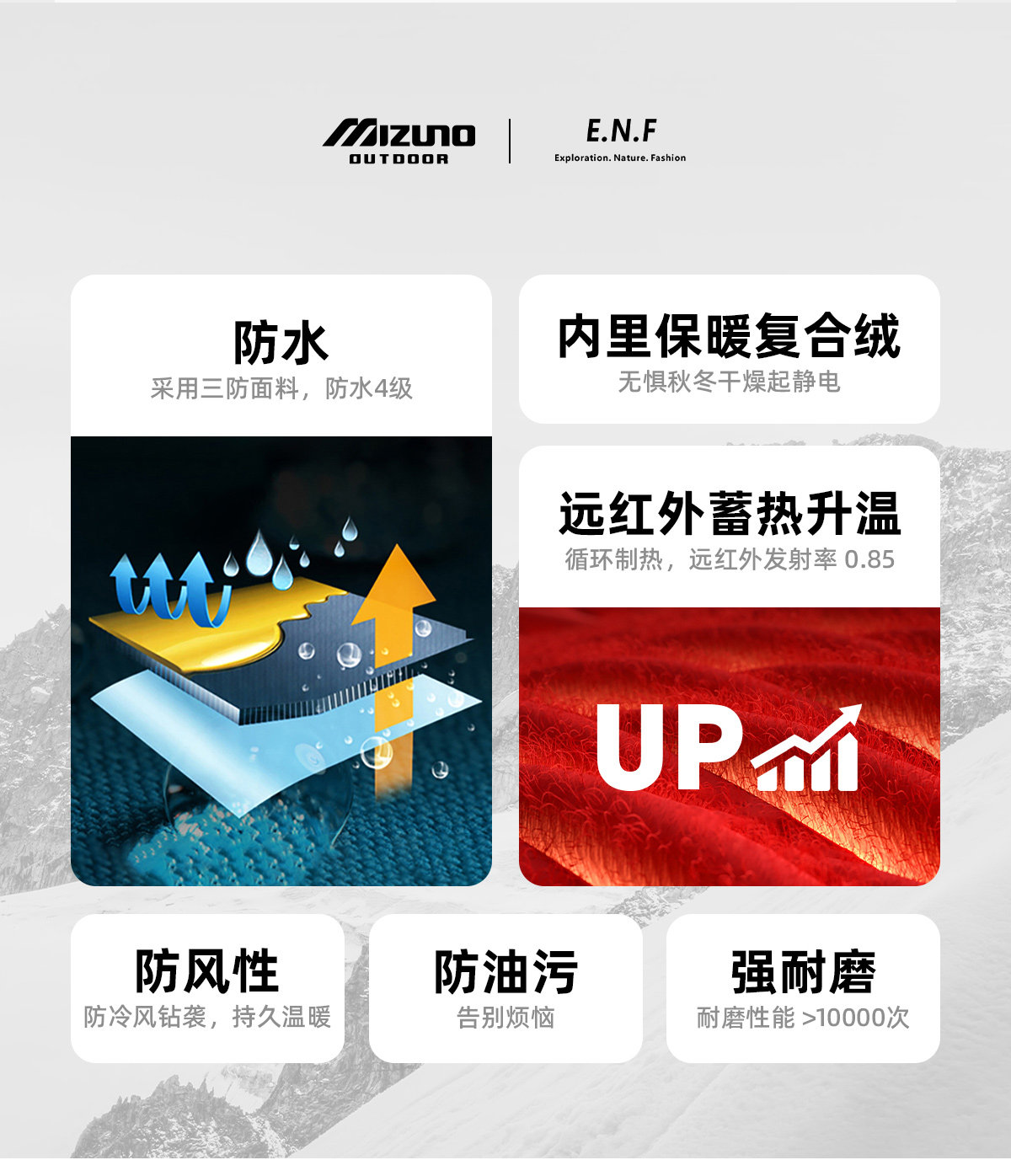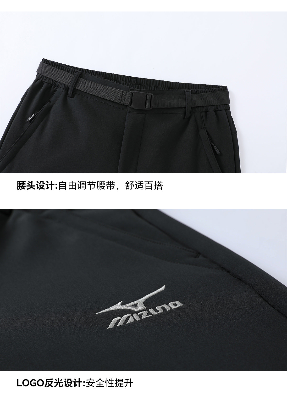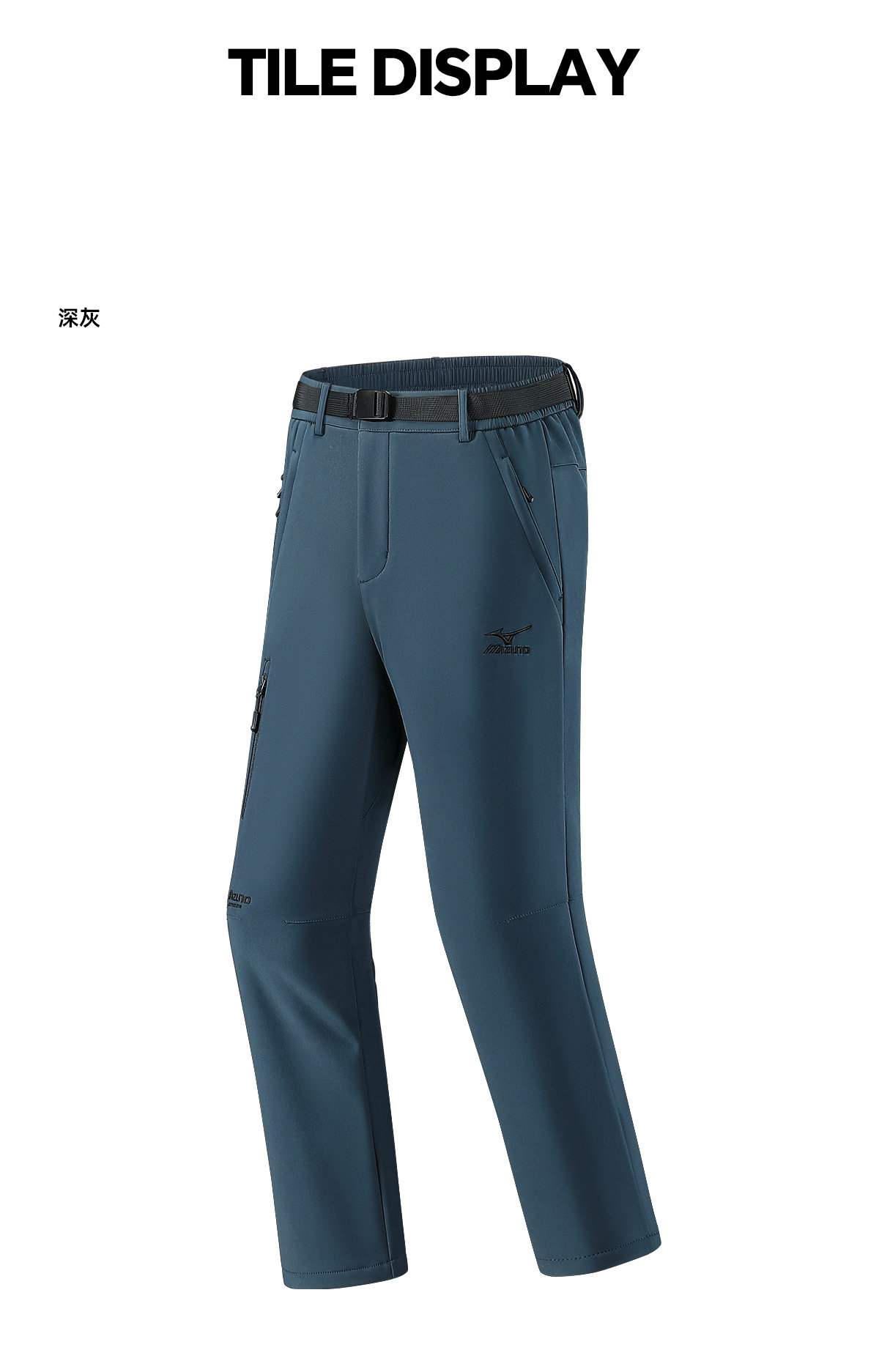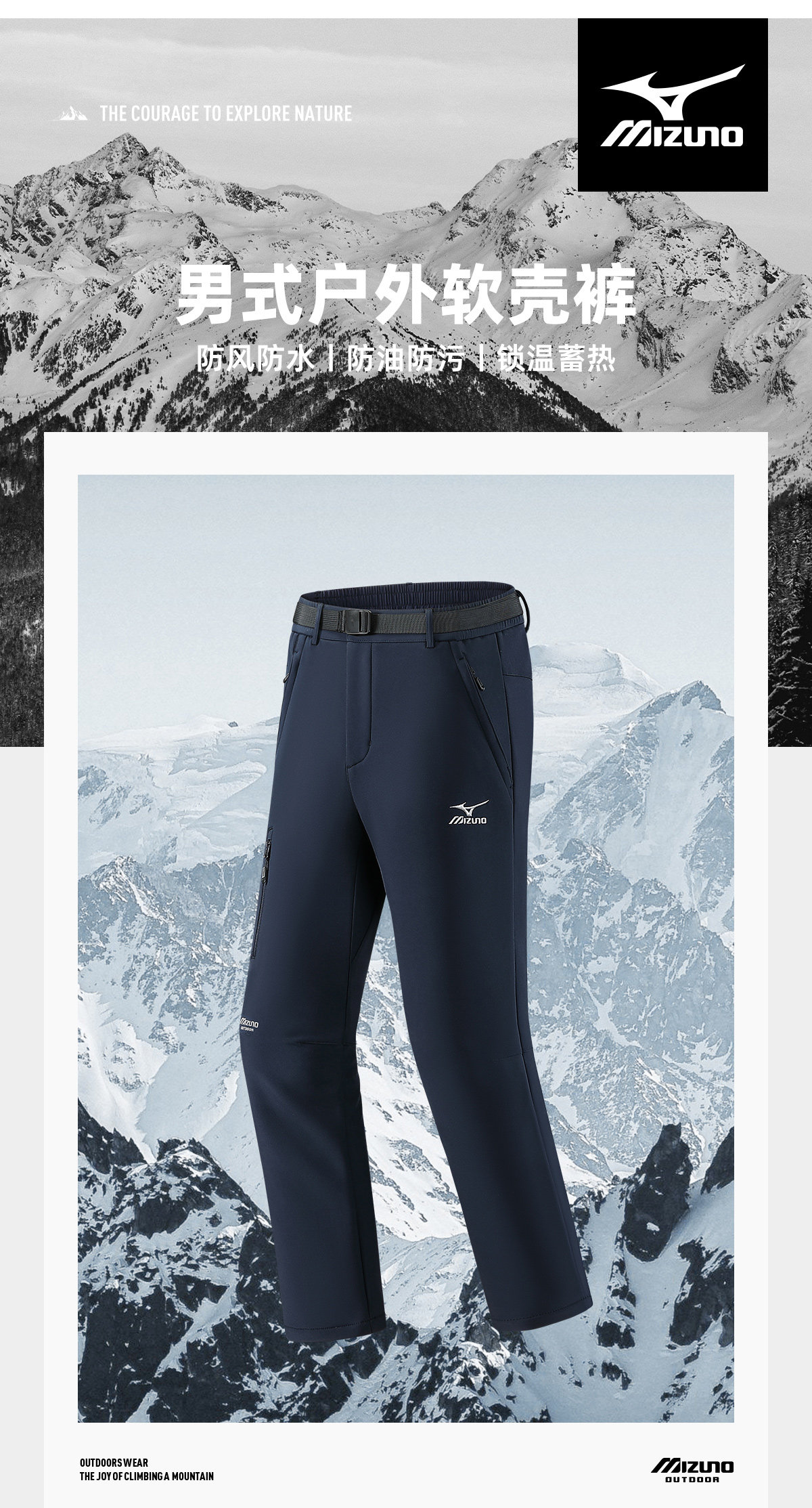 Mizuno Autumn and Winter Windproof and Waterproof Embroidered Fleece-Lined Softshell Pants for Men and Women Outdoor Hiking Long Pants