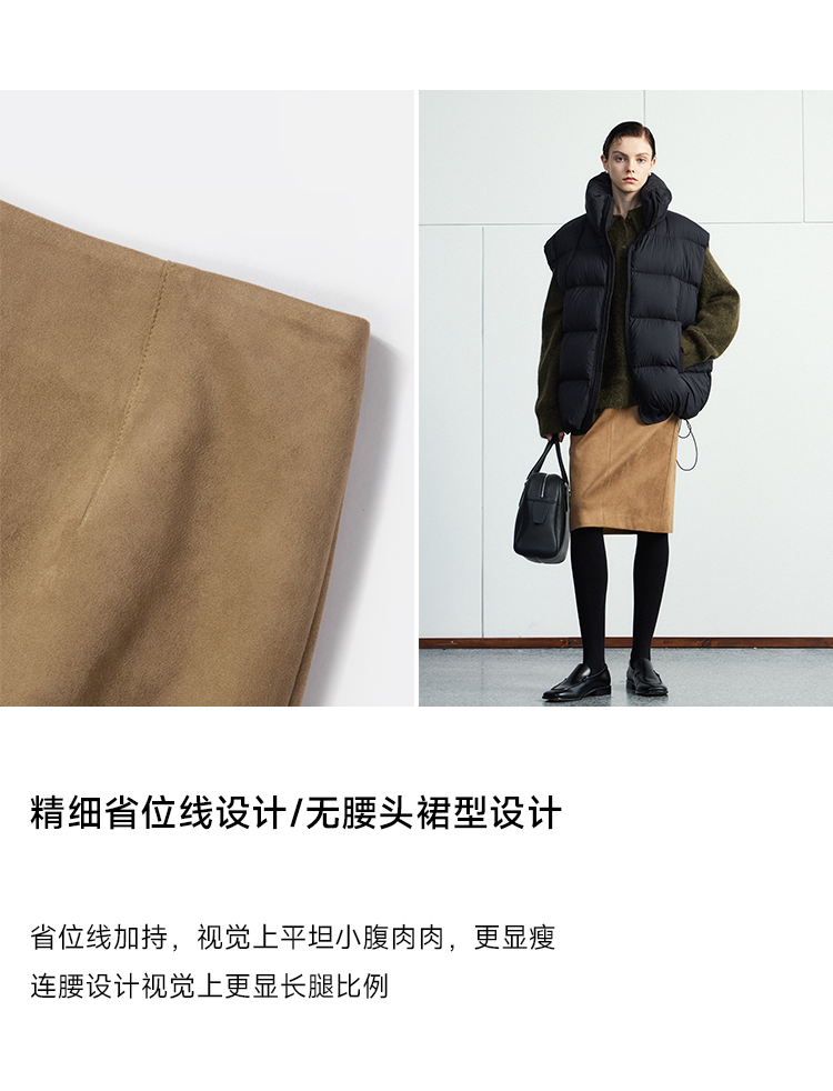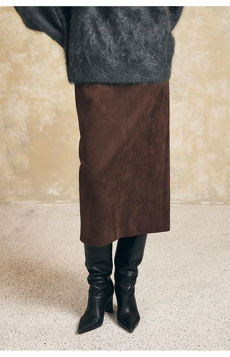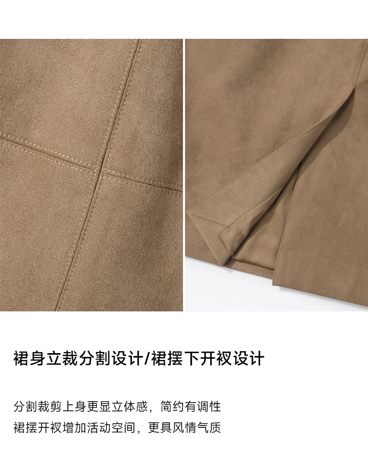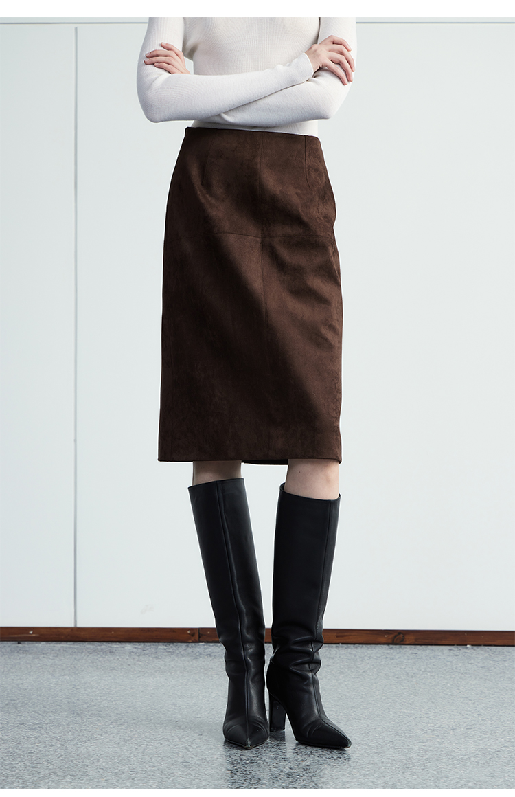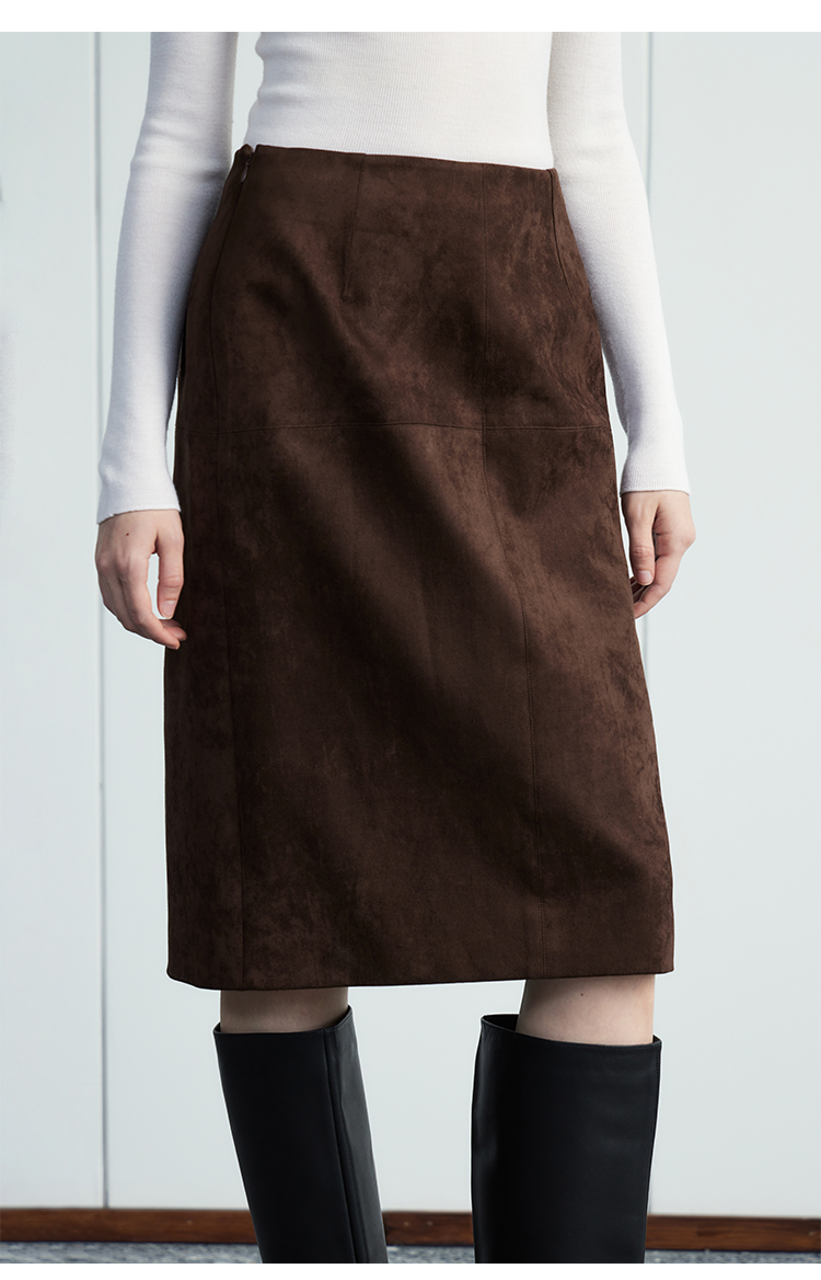 Thornsaura Commuting Simple Versatile Straight Slit Faux Suede Autumn and Winter Short Skirt for Women