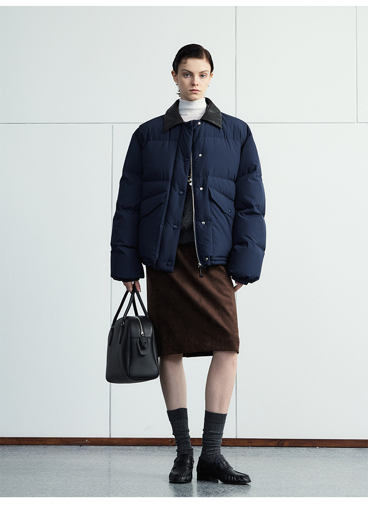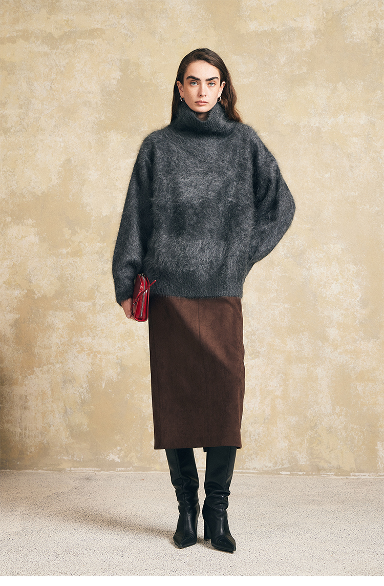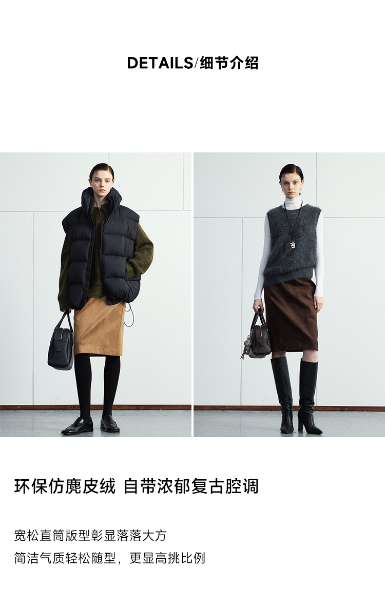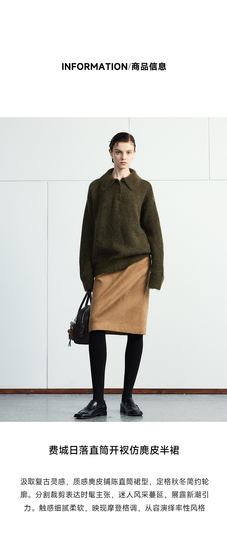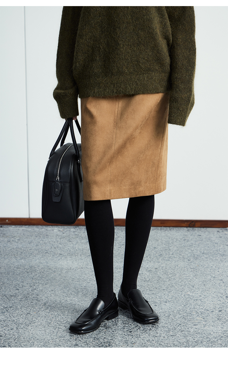 Thornsaura Commuting Simple Versatile Straight Slit Faux Suede Autumn and Winter Short Skirt for Women
