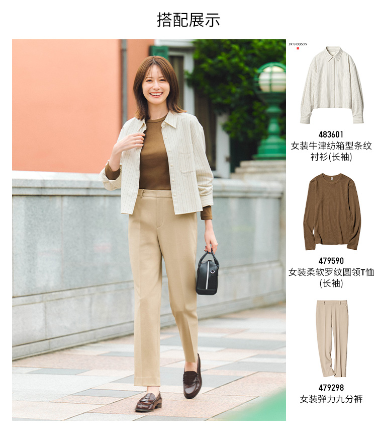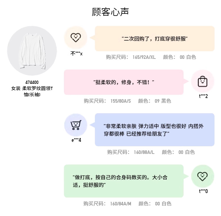 Uniqlo Women's Soft Rib Crewneck T-shirt Long sleeves pure color Basics 474400 479590 470124