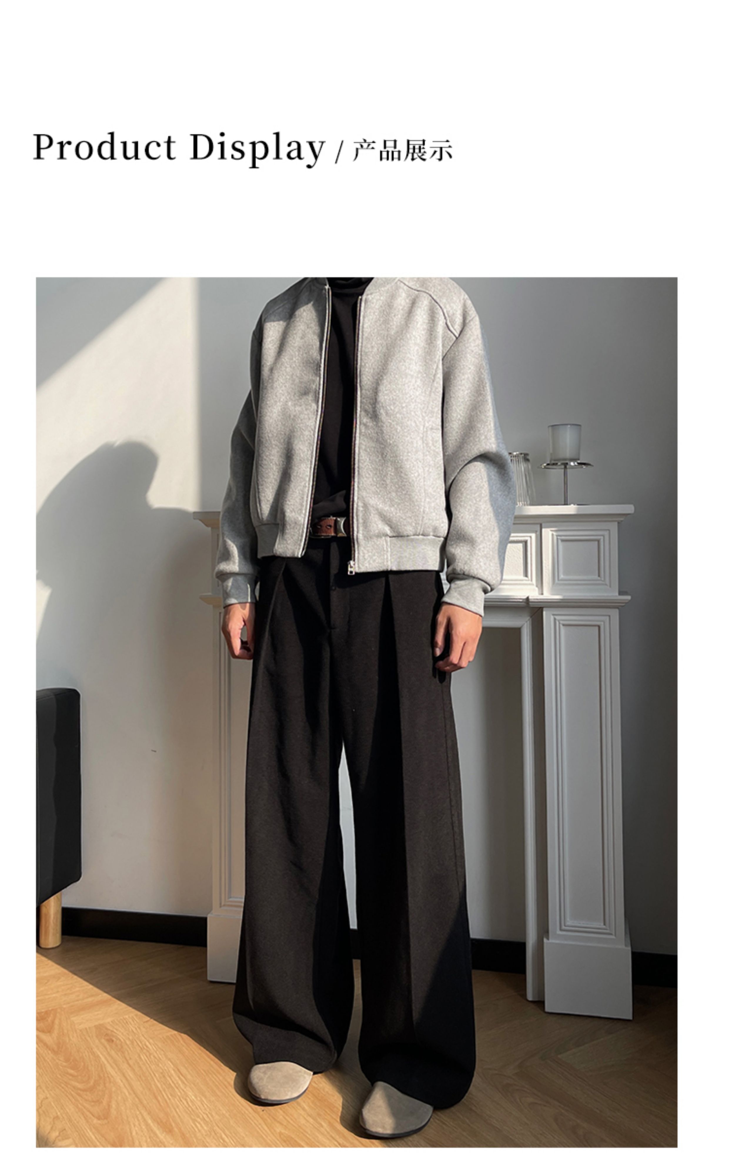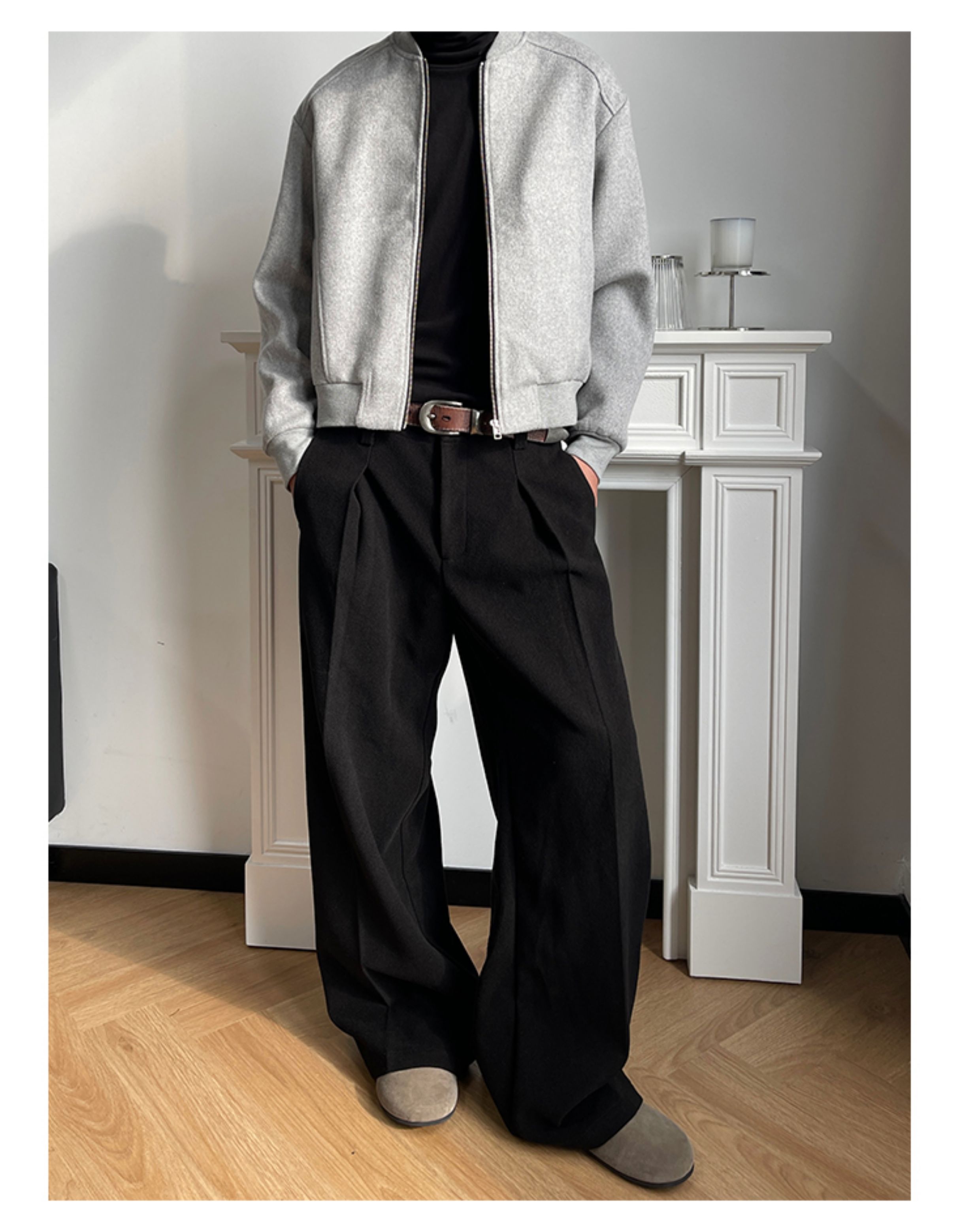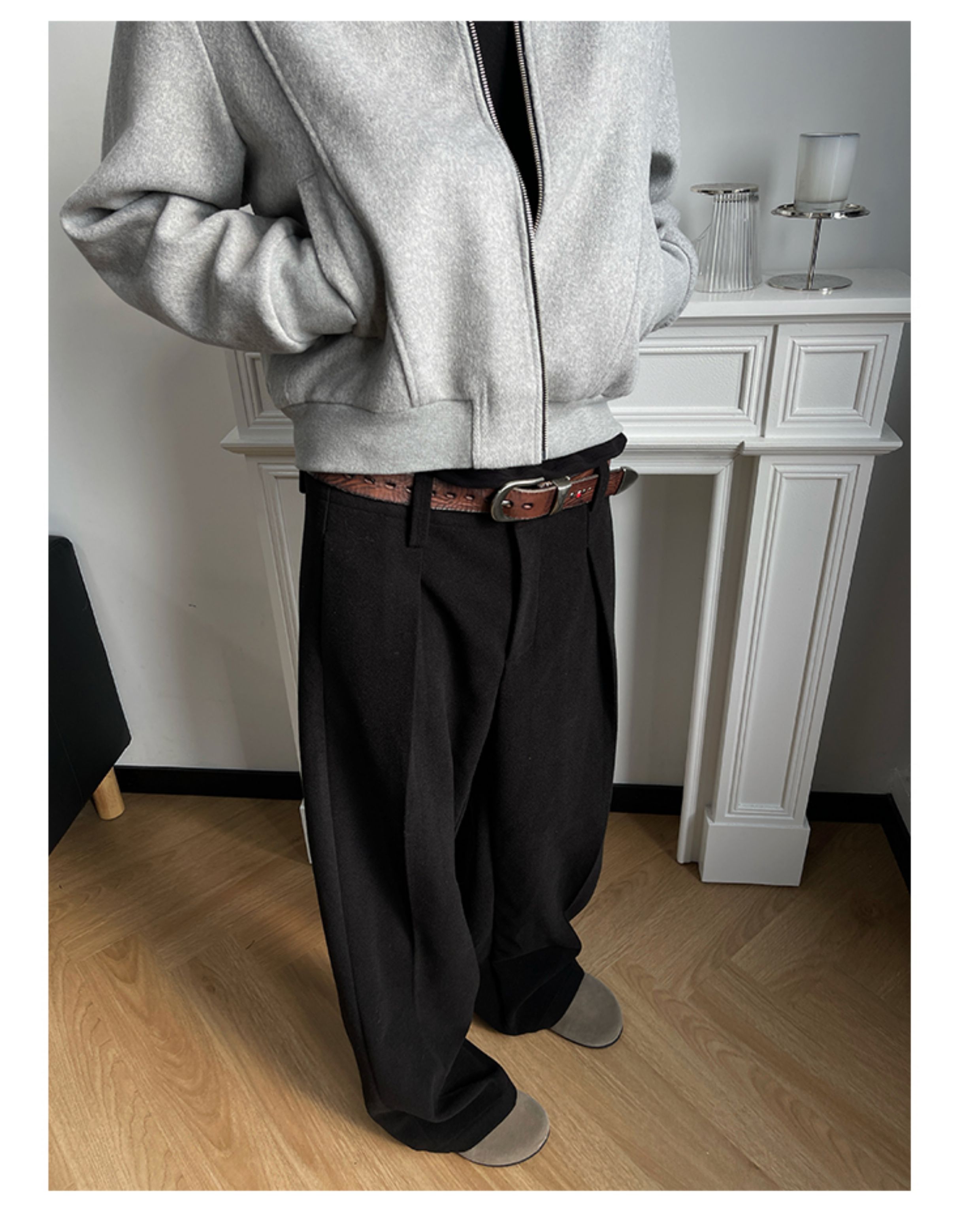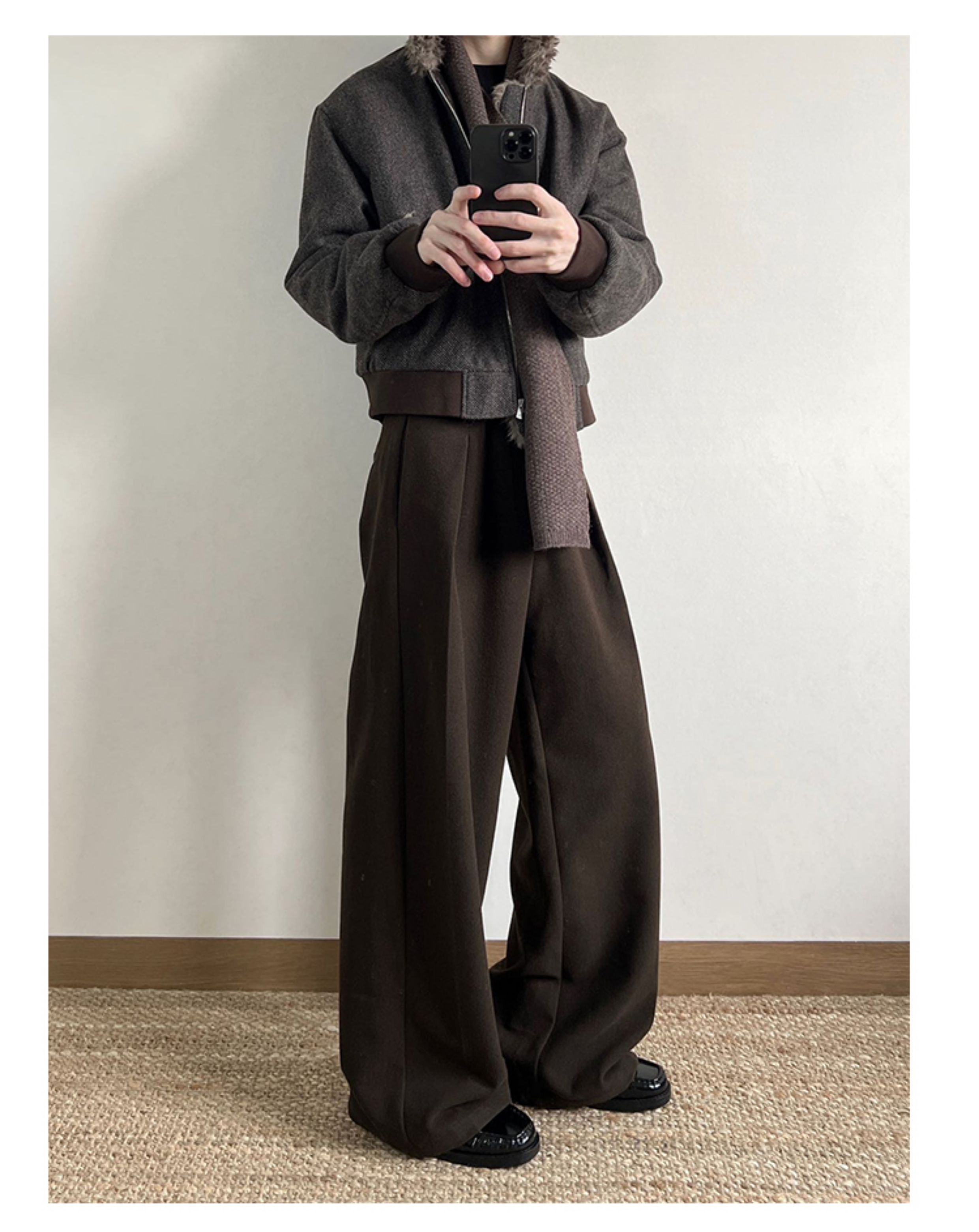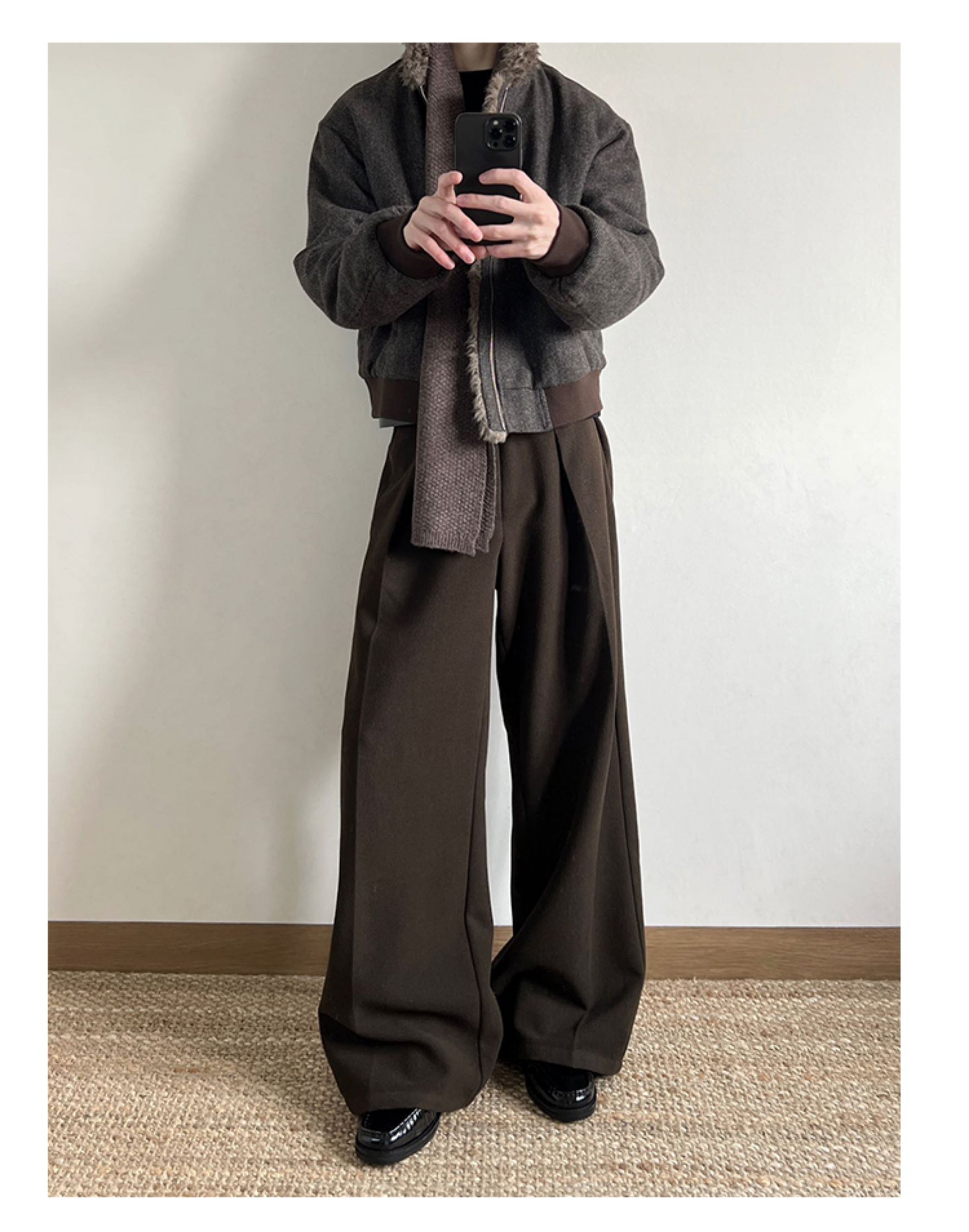 Okaythxbye 700g Heavy Woolen Autumn and Winter A-Line Baggy Wide-Leg Trousers, Casual Commuter Long Pants for Men