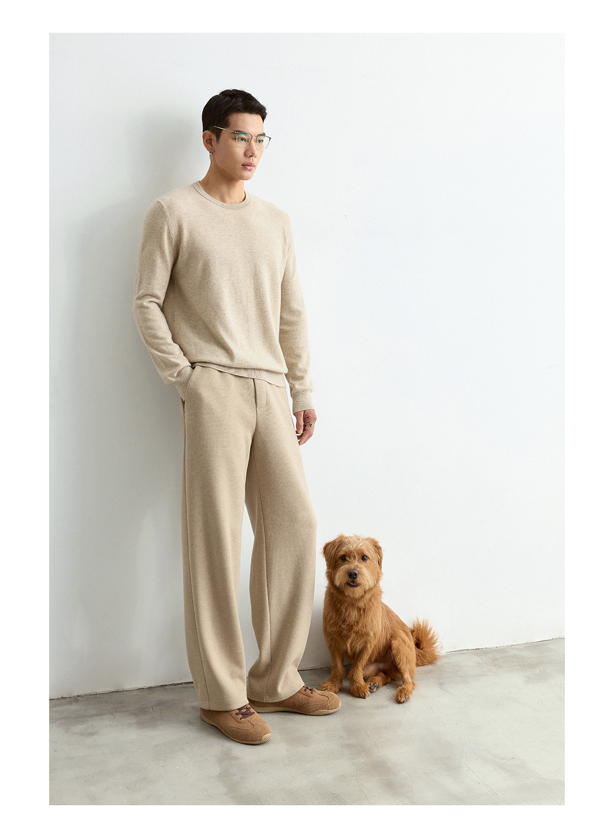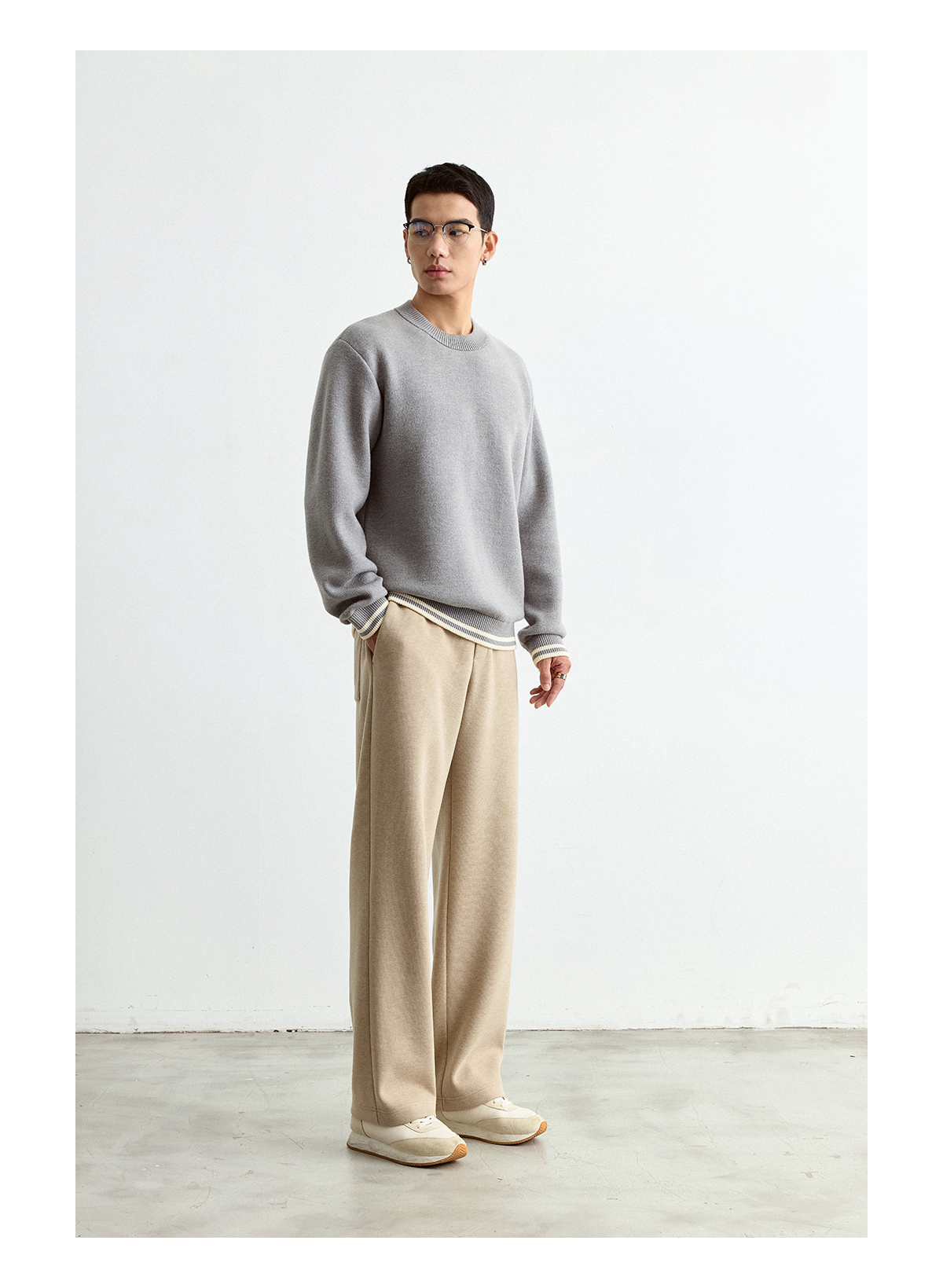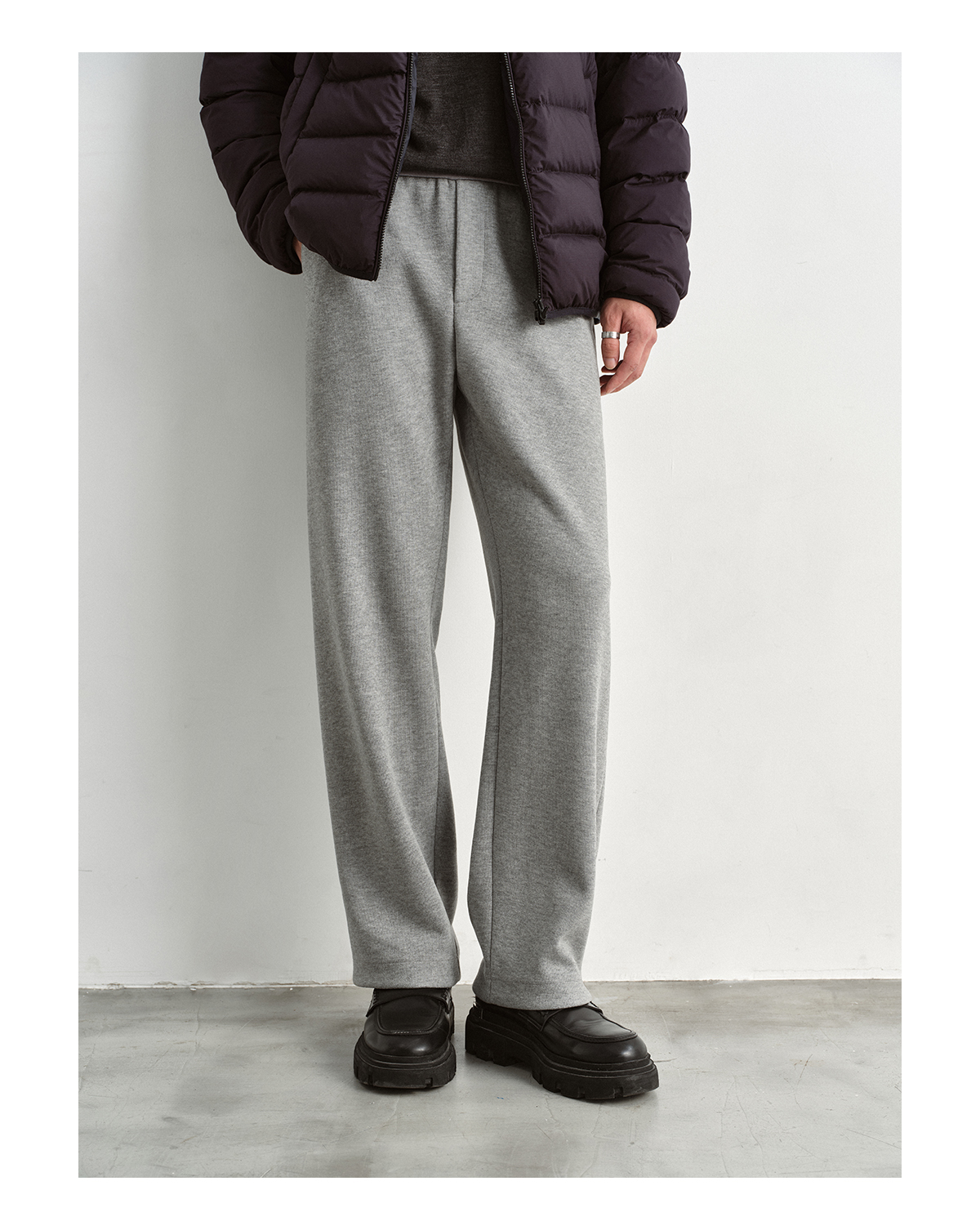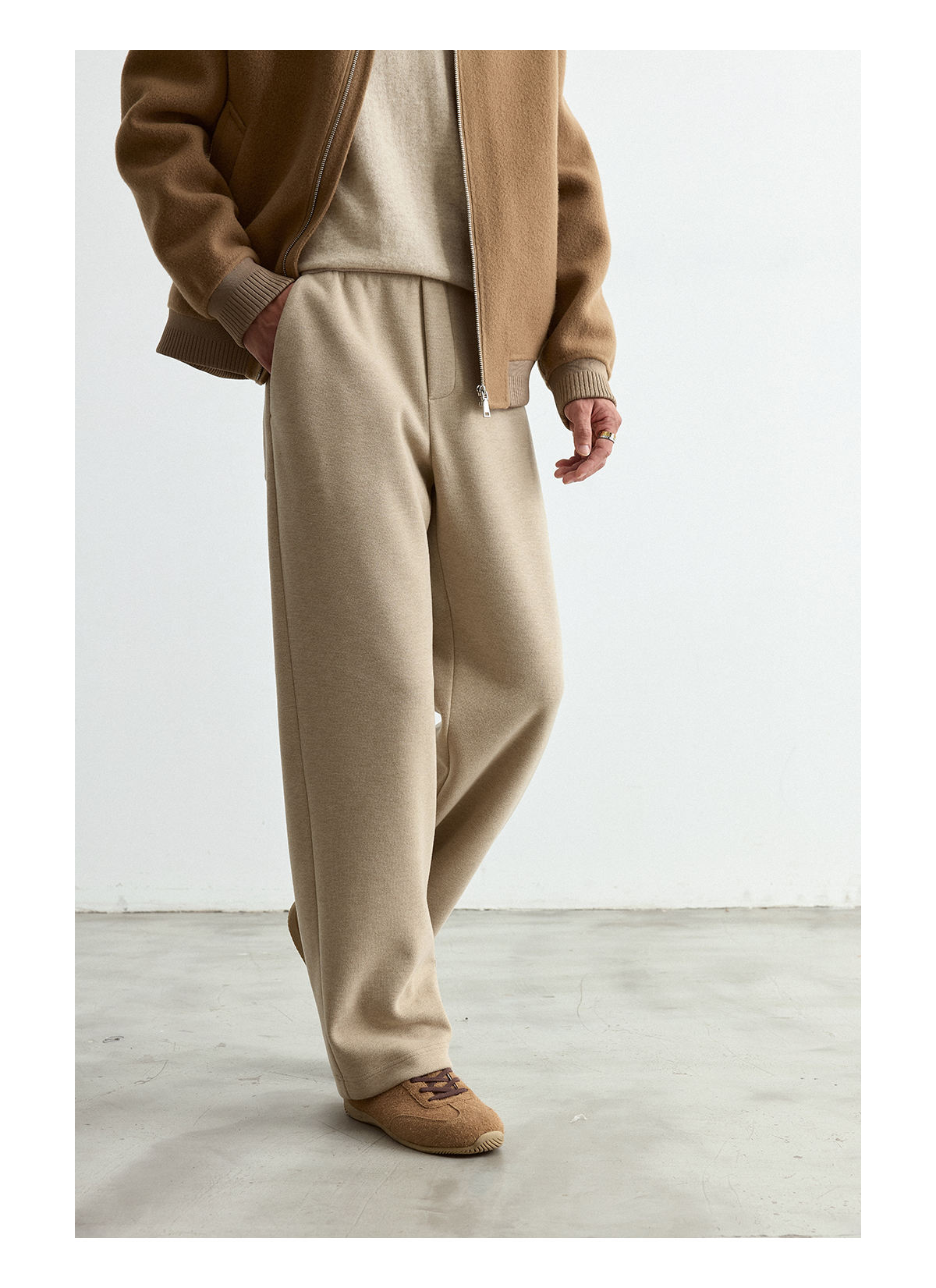 Osens Men's Wool Blend Knitted Ribbed Sweatpants Drawstring Straight Casual Pants Winter Thick Commuter Trousers