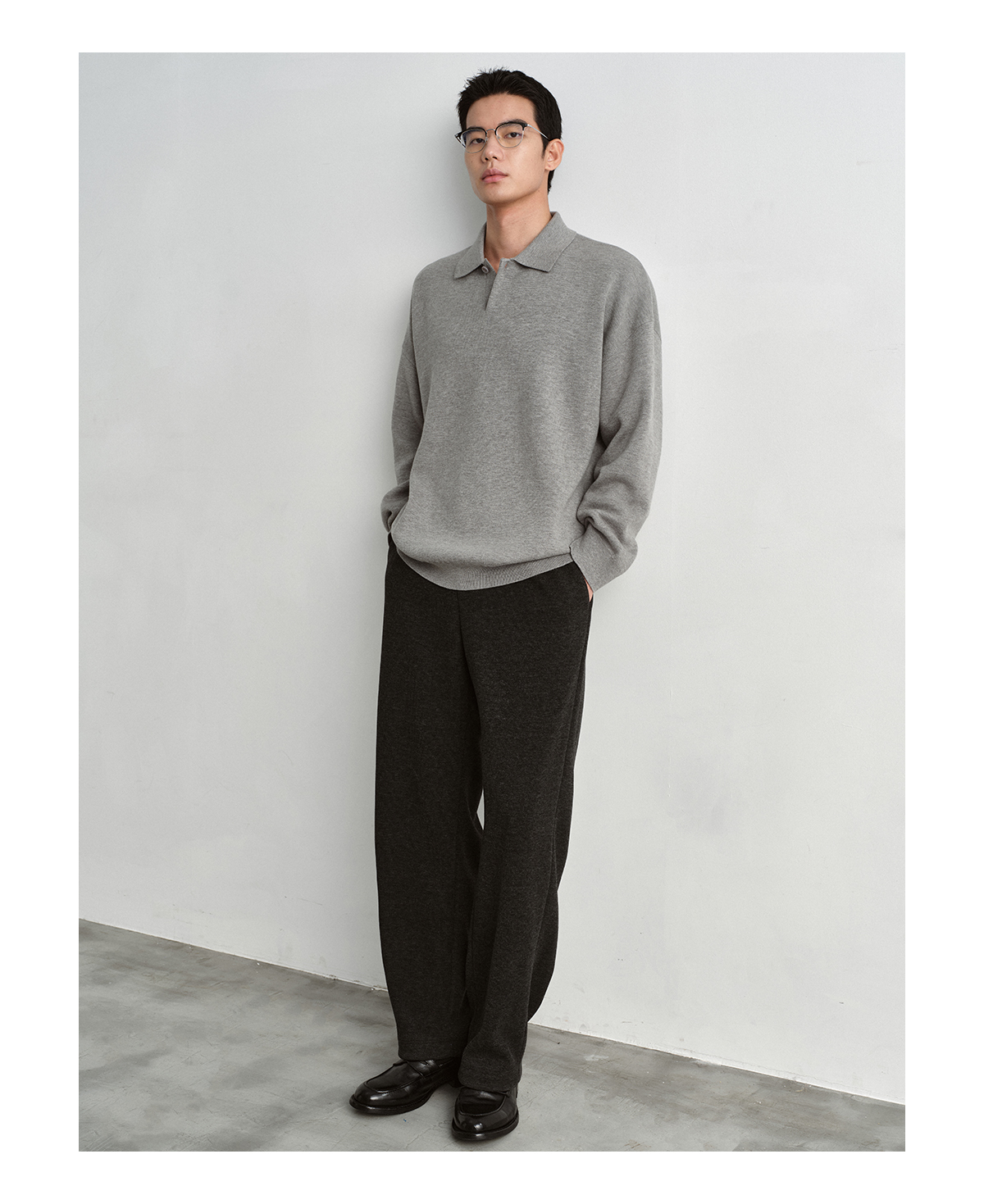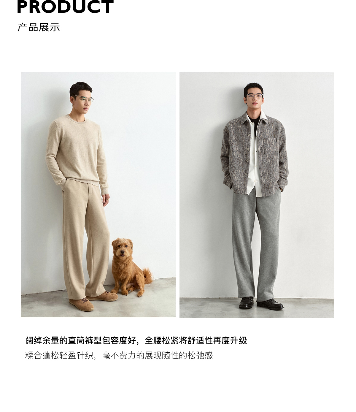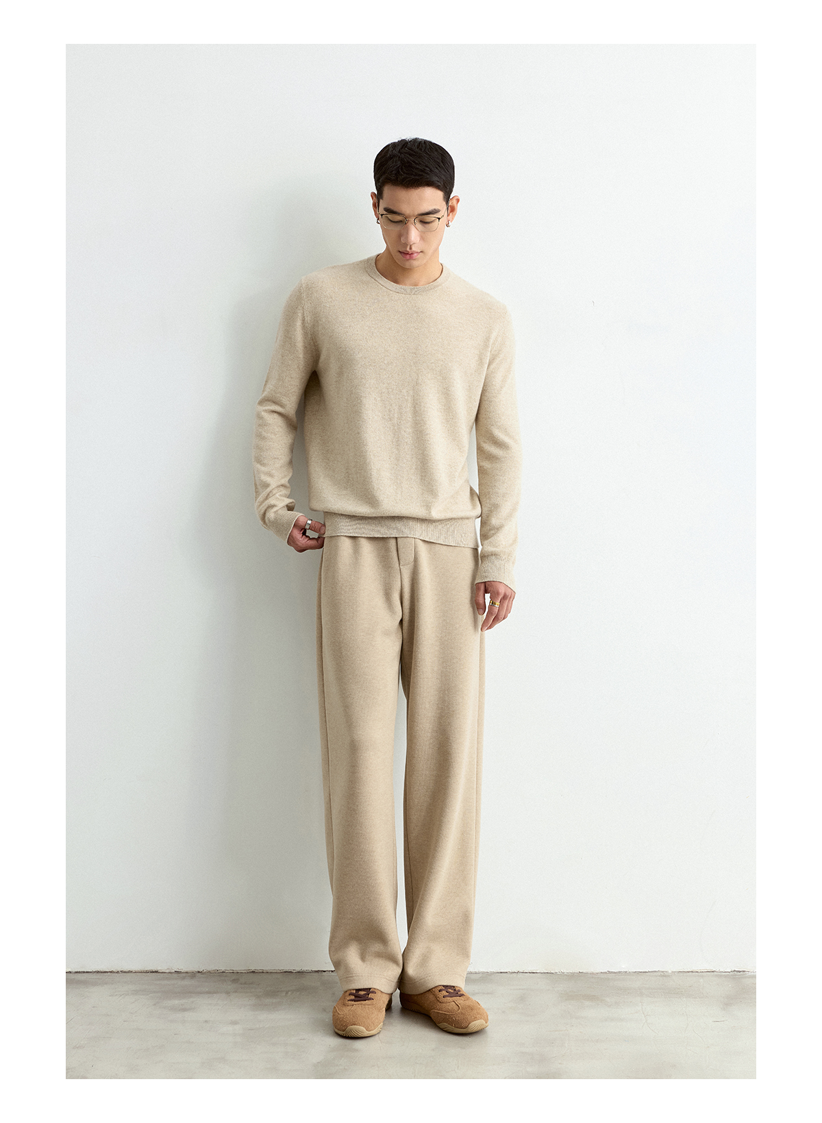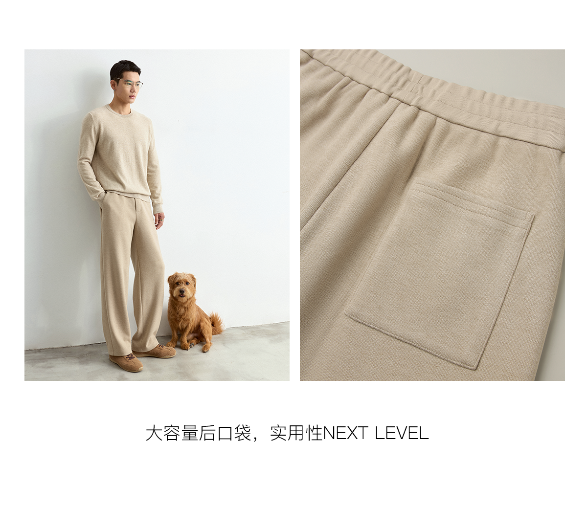 Osens Men's Wool Blend Knitted Ribbed Sweatpants Drawstring Straight Casual Pants Winter Thick Commuter Trousers