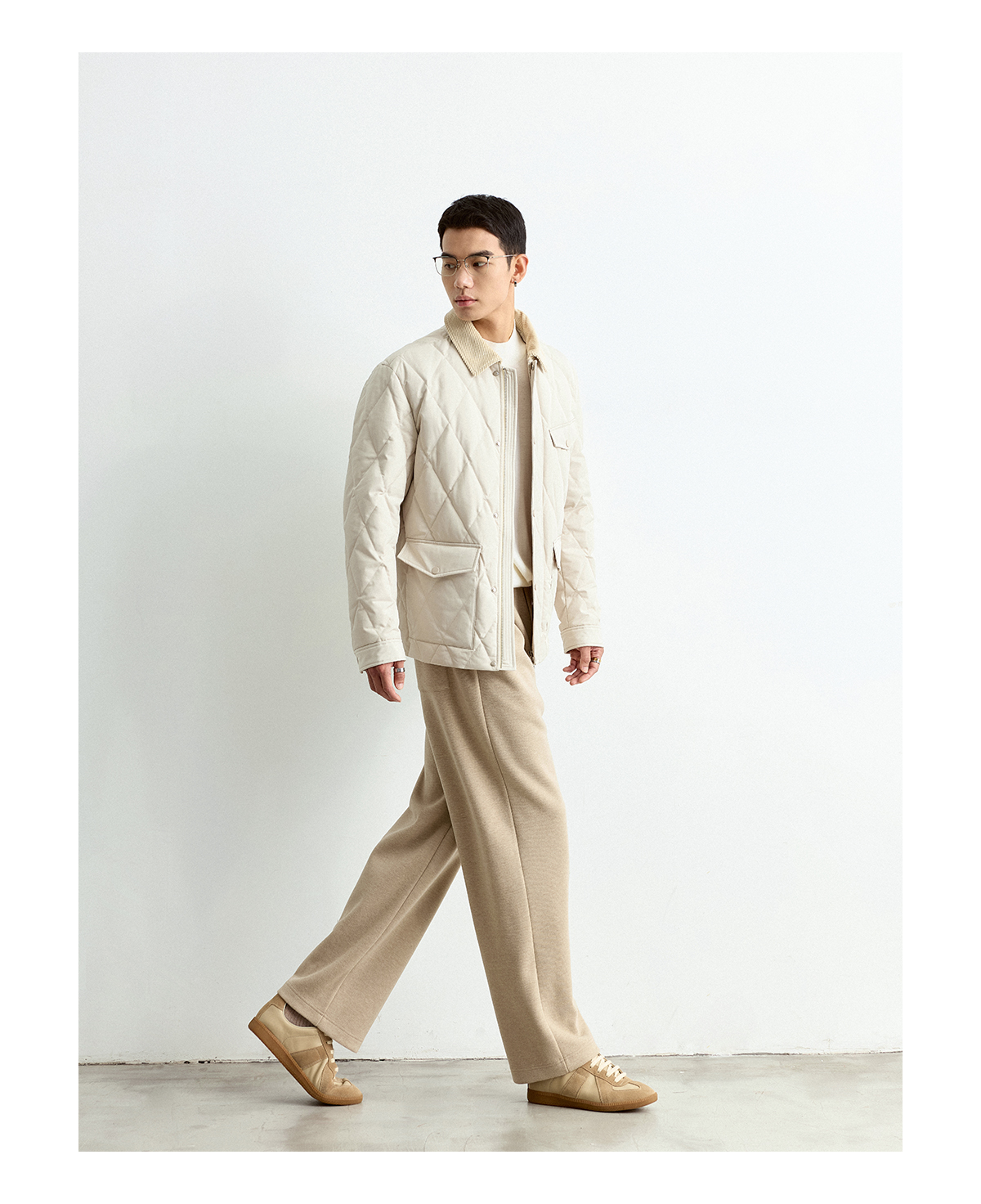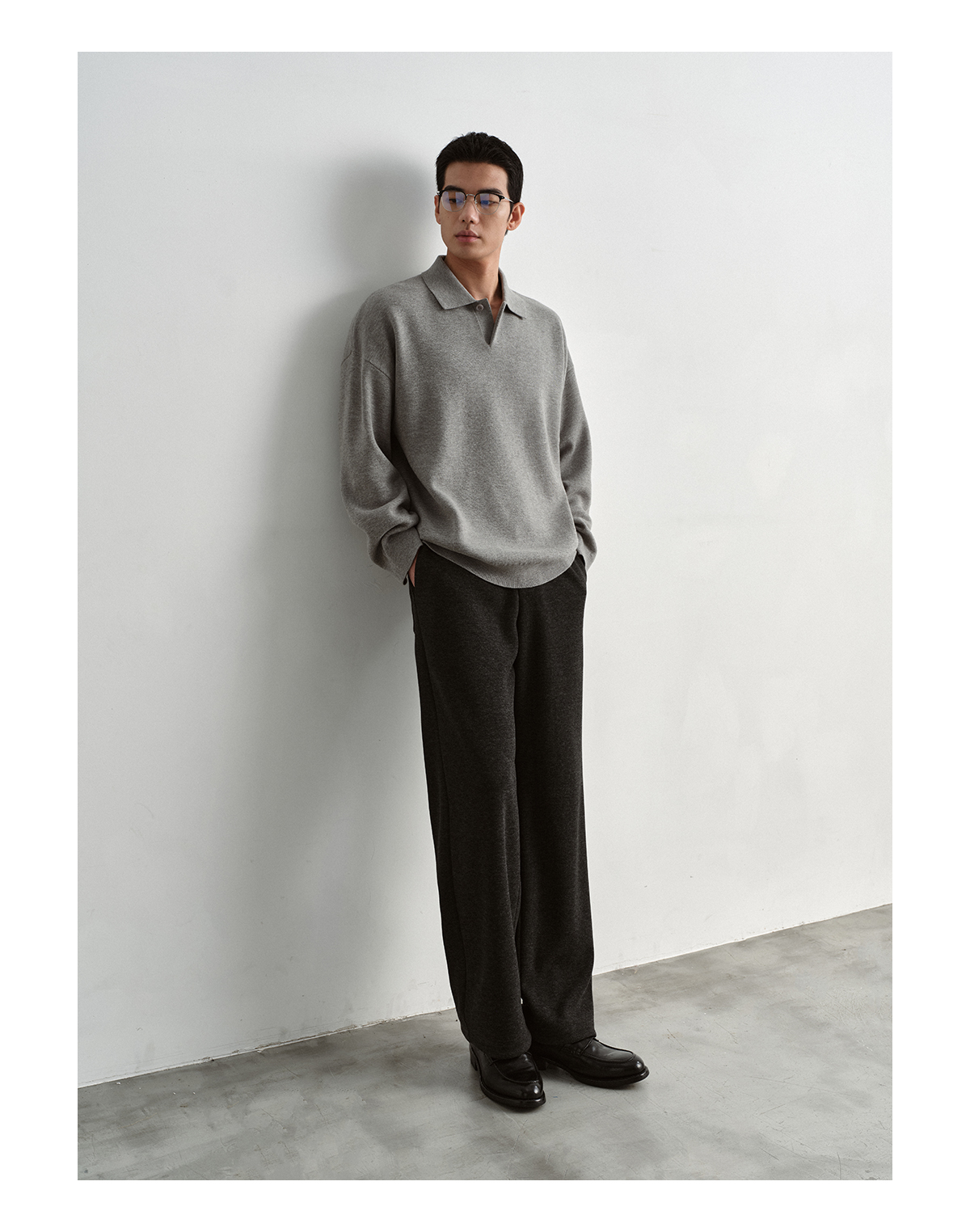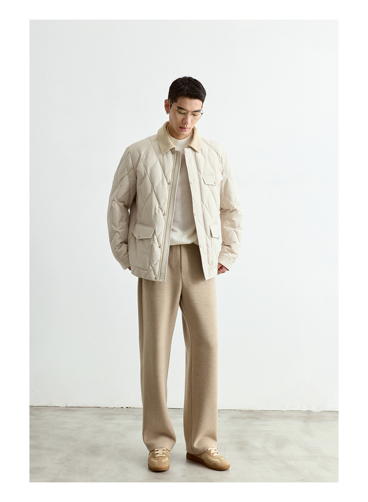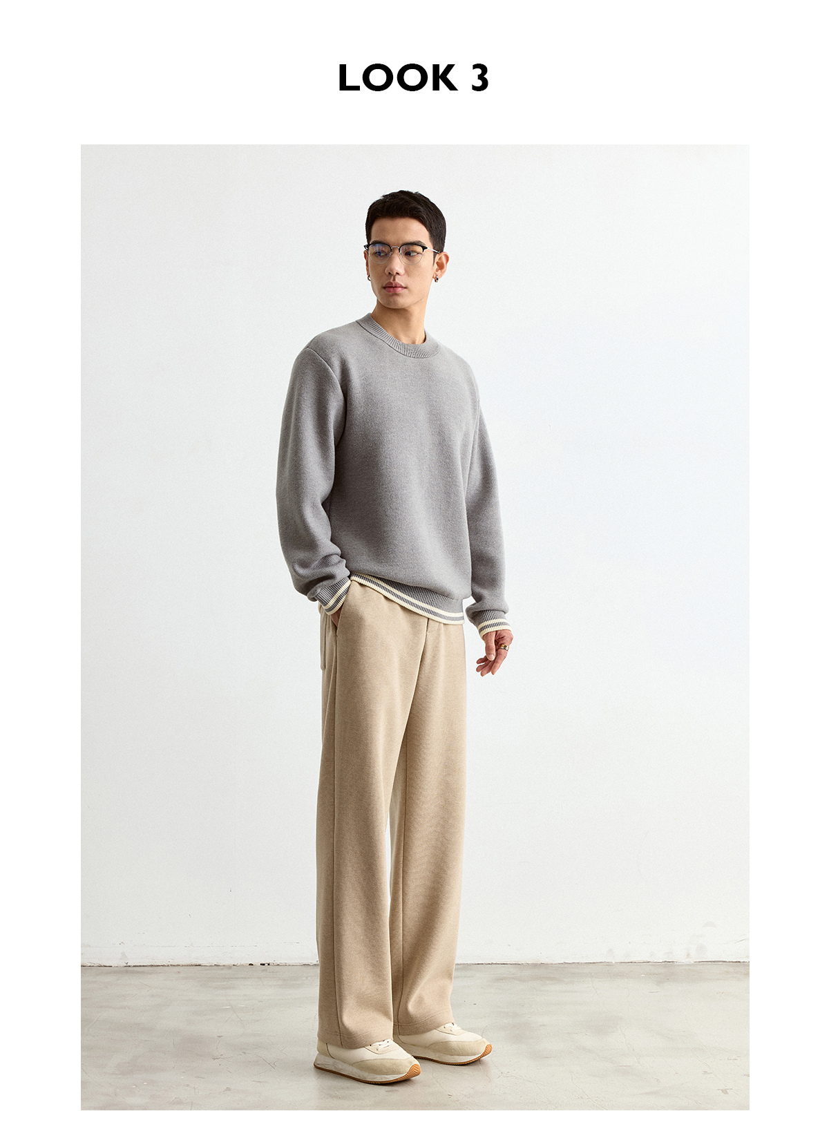 Osens Men's Wool Blend Knitted Ribbed Sweatpants Drawstring Straight Casual Pants Winter Thick Commuter Trousers