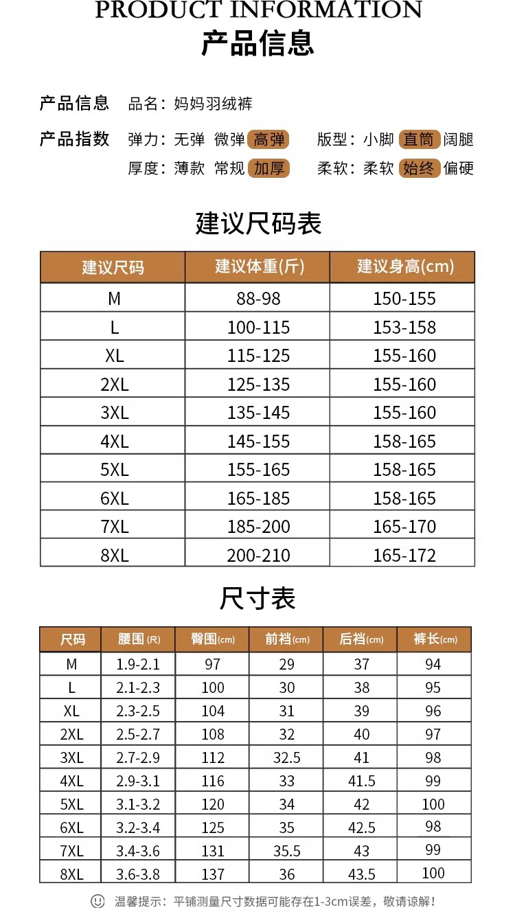 White Goose down Pants for Middle-Aged and Elderly Women, Detachable Liner, Winter Large Size, Thick Cotton Pants for Grandma and Mom, Goose down Pants