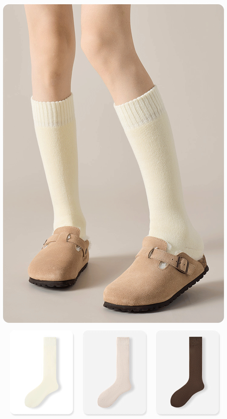 Cashmere Socks for Women, Autumn and Winter Style, Thickened Warm Terry Knee-High Socks, Fleece-Lined Home Floor Socks for Women in Winter