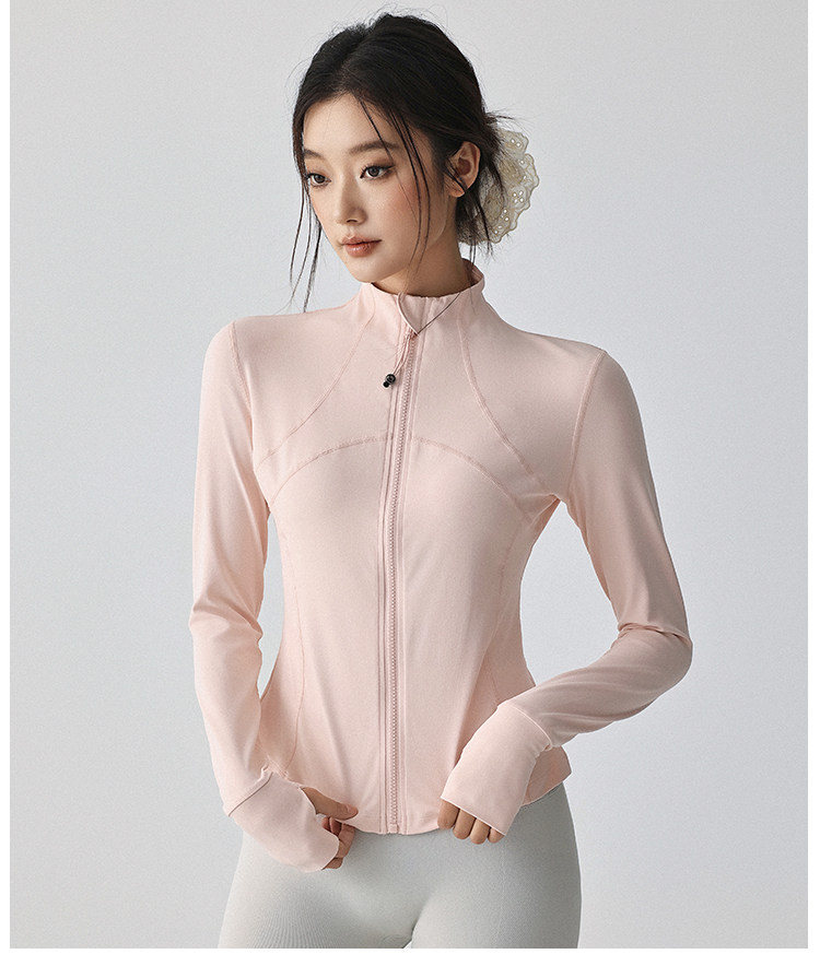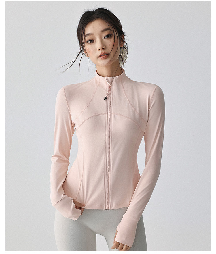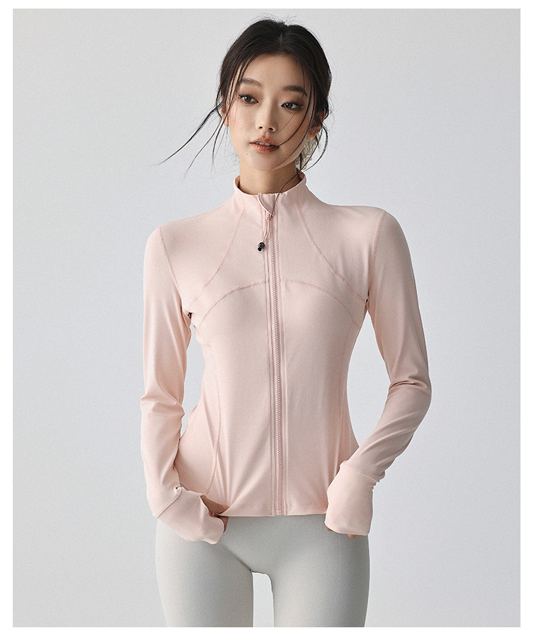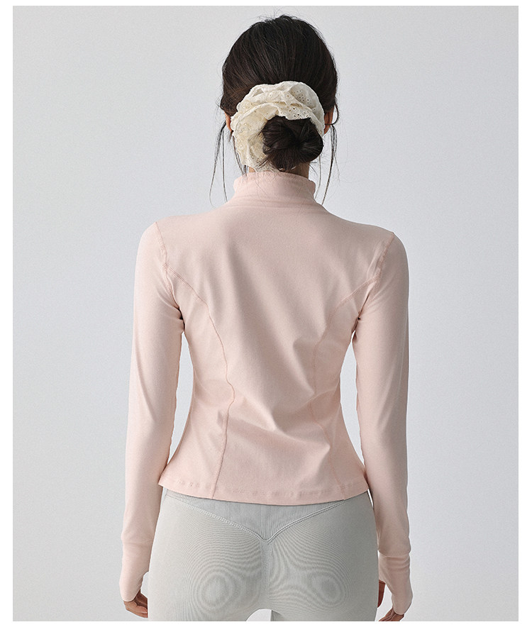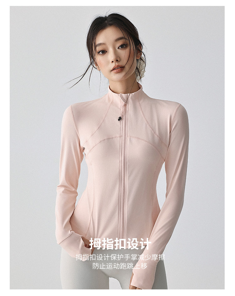 Umeko Sports Jacket for Women, Slim Fit, Running Training, Pilates Yoga Wear, Long-Sleeved Pink Fitness Top