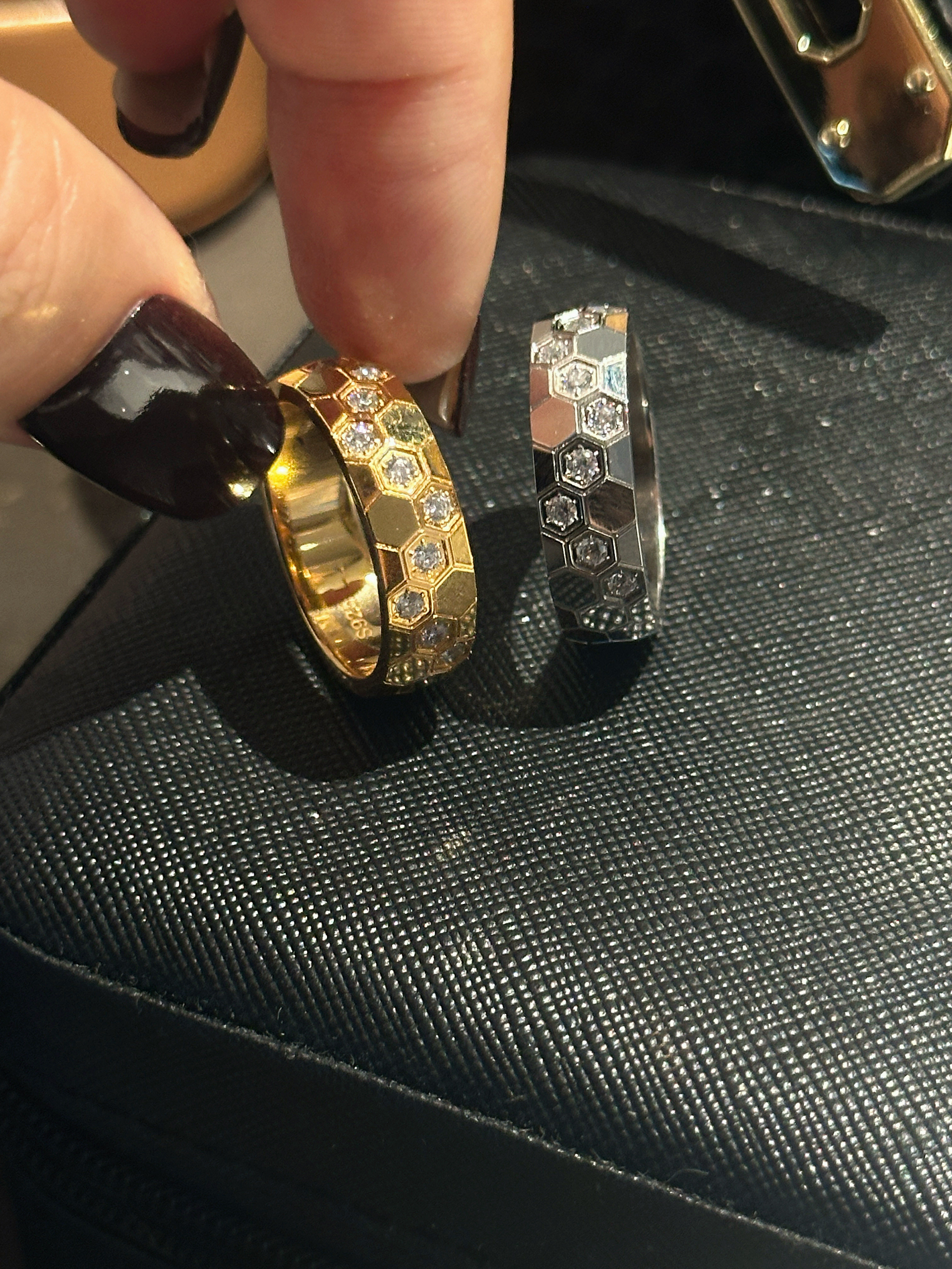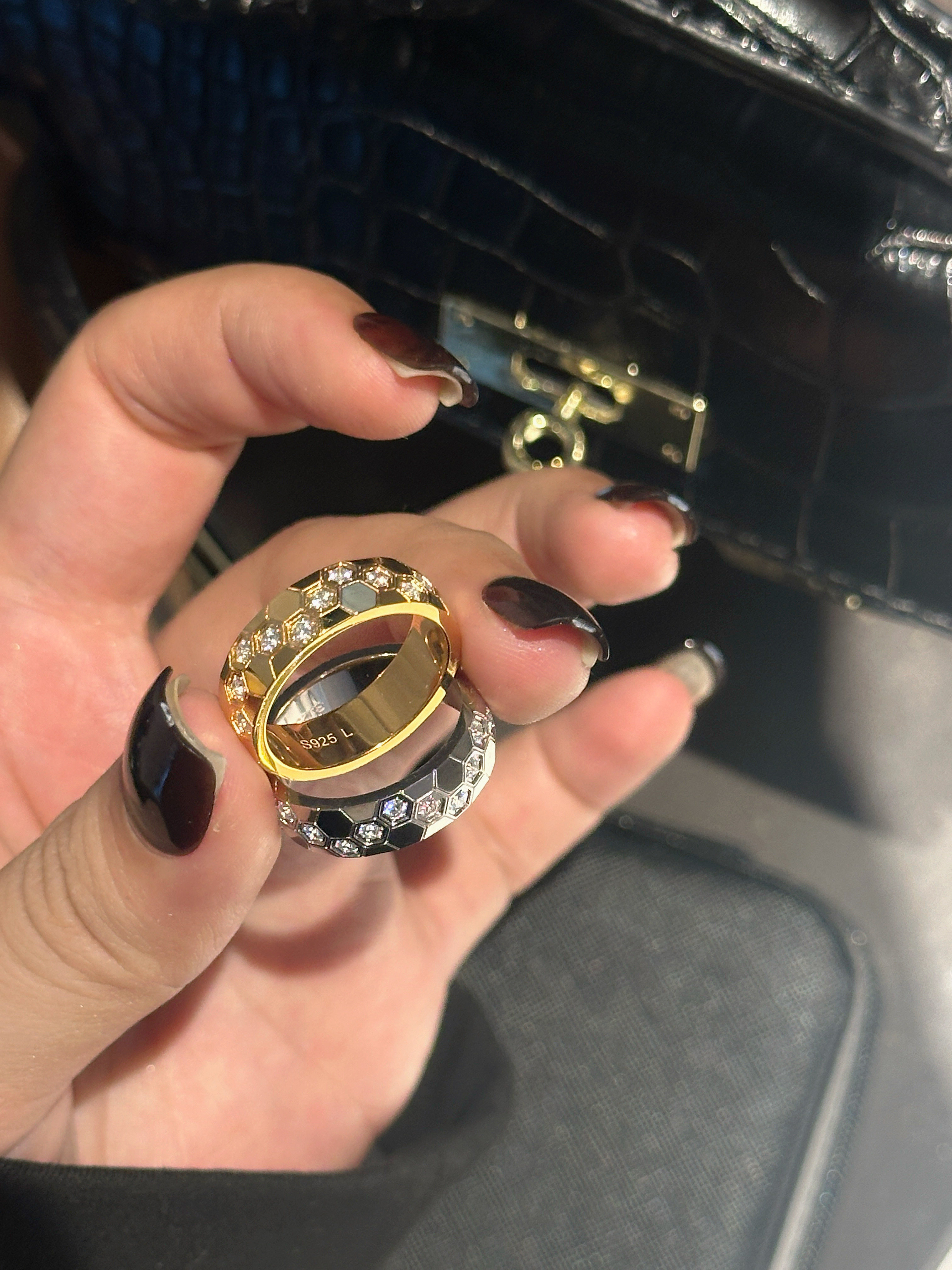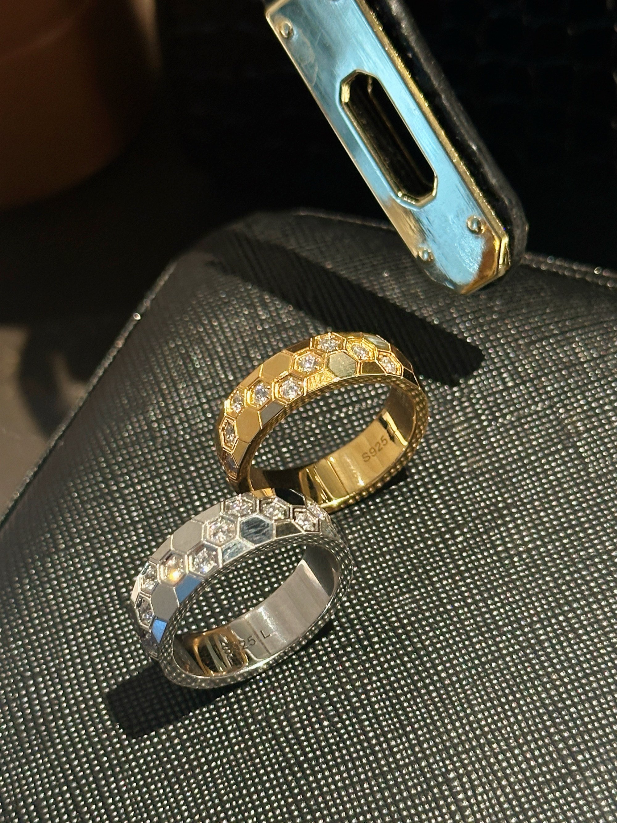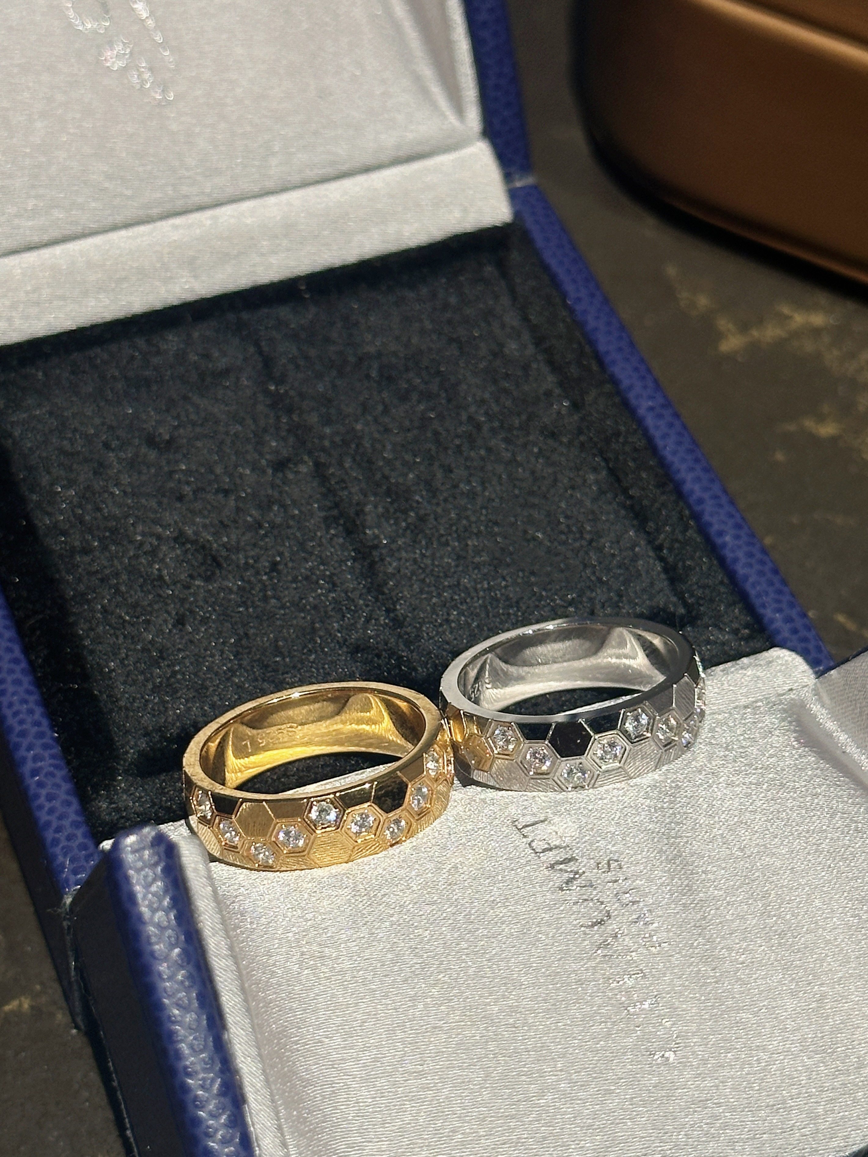High-Weight Wide Half-Drilled Honeycomb Ring for Women, Light Luxury Niche Fashion Honeycomb Stacking Ring, S925 Sterling Silver Couple Rings