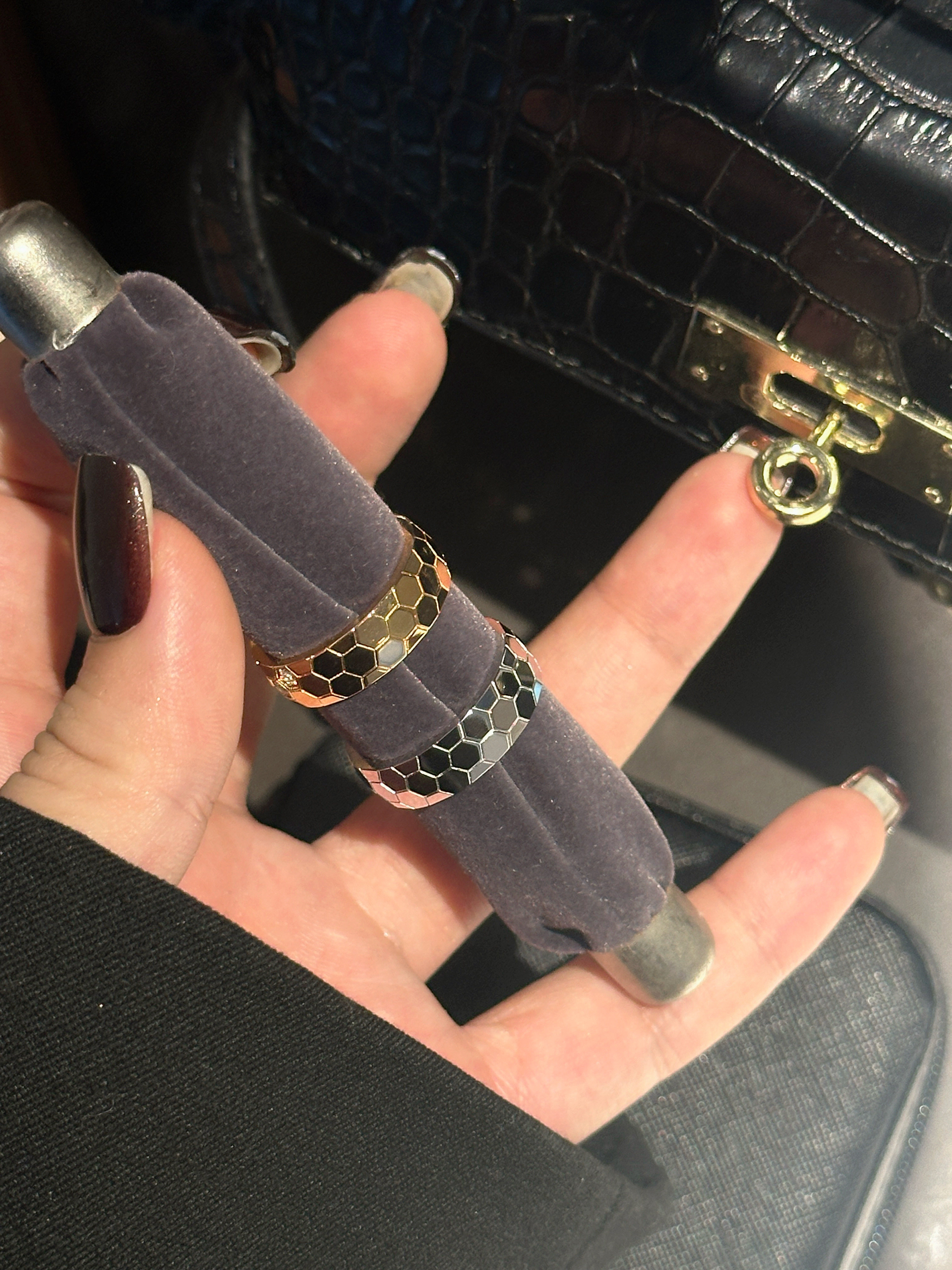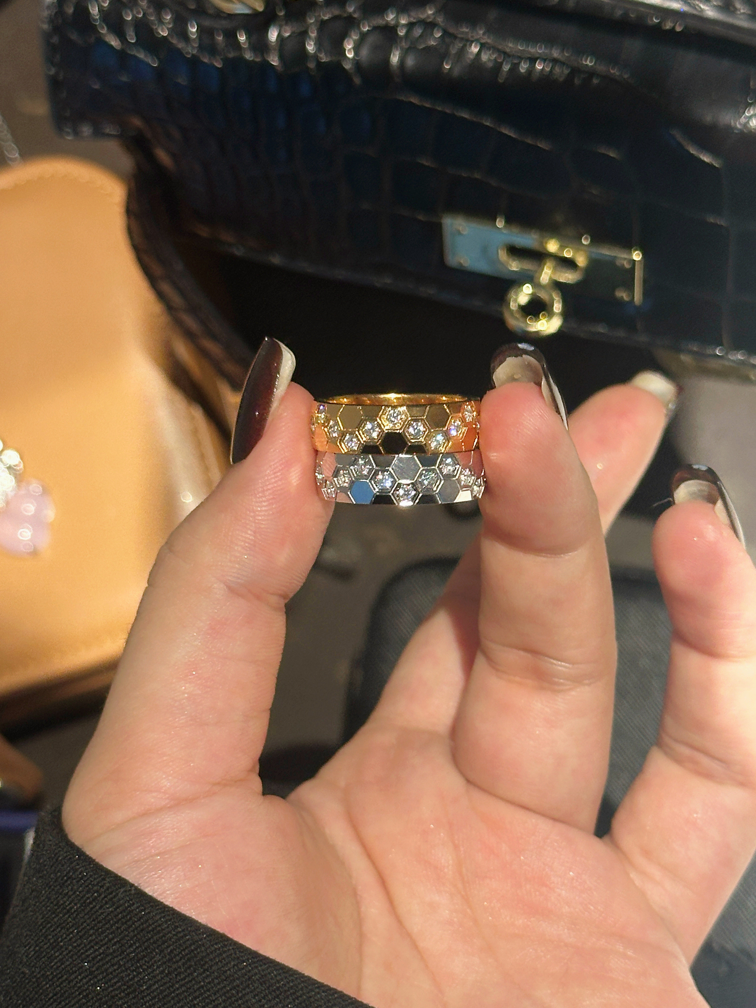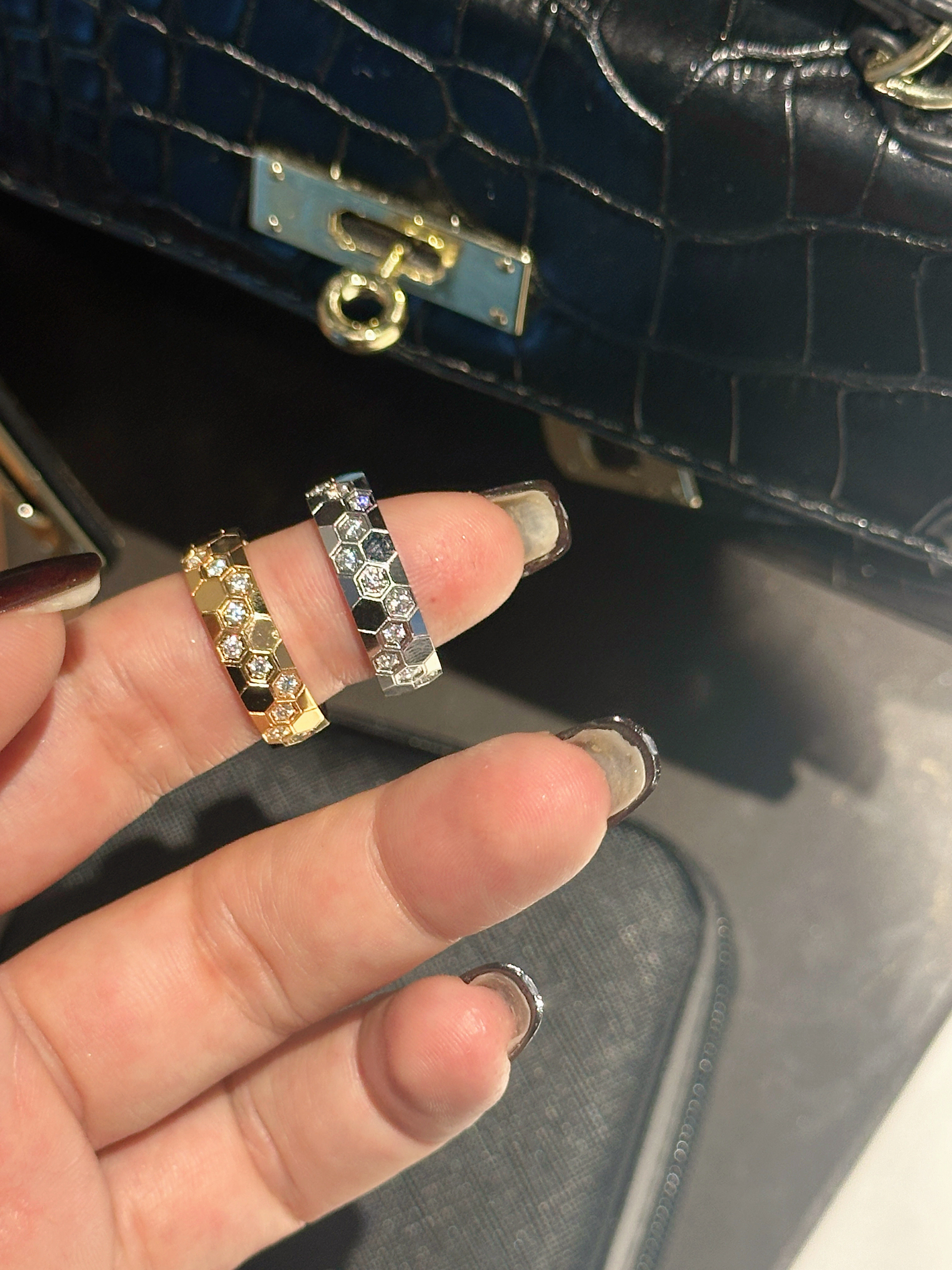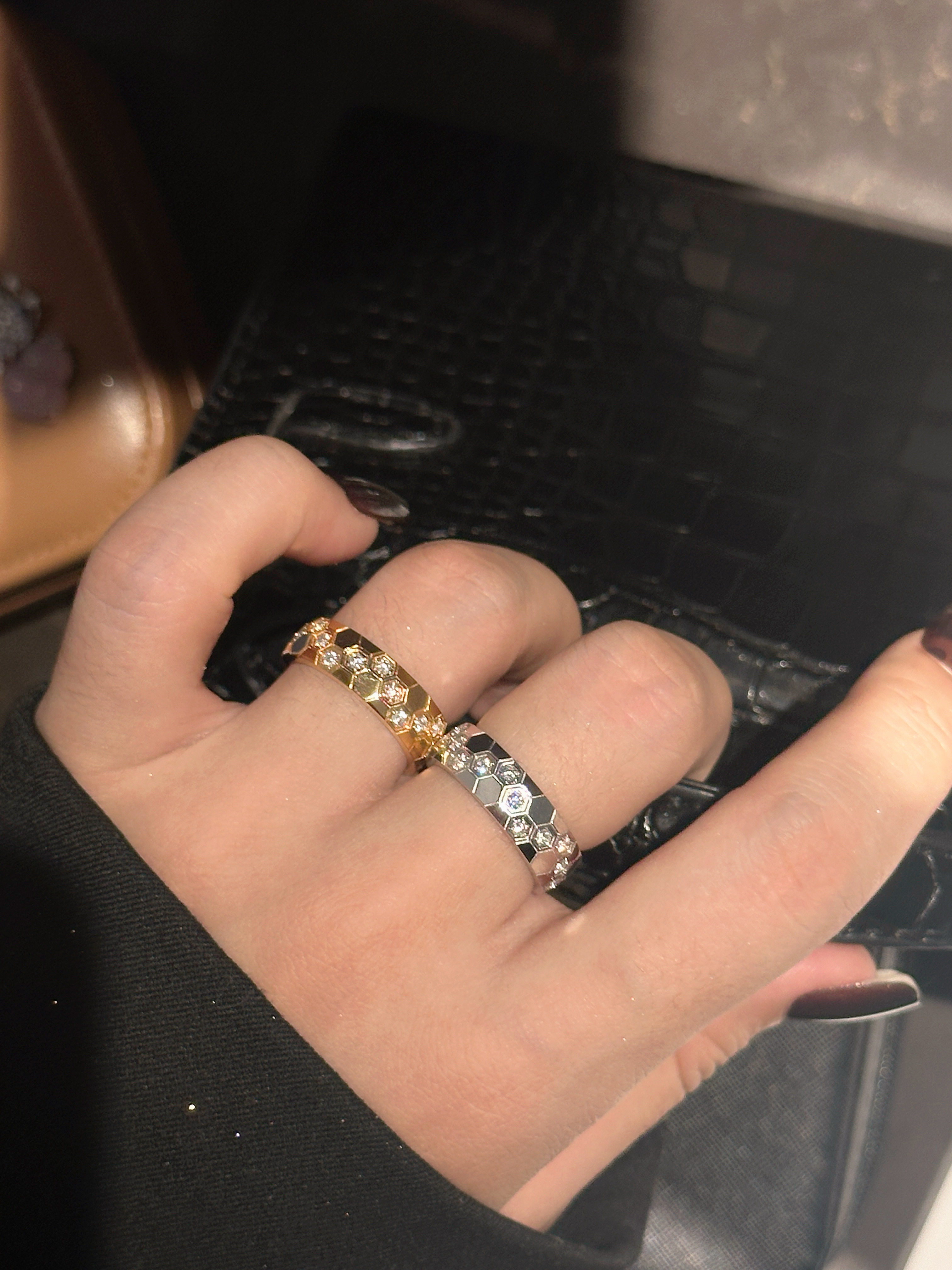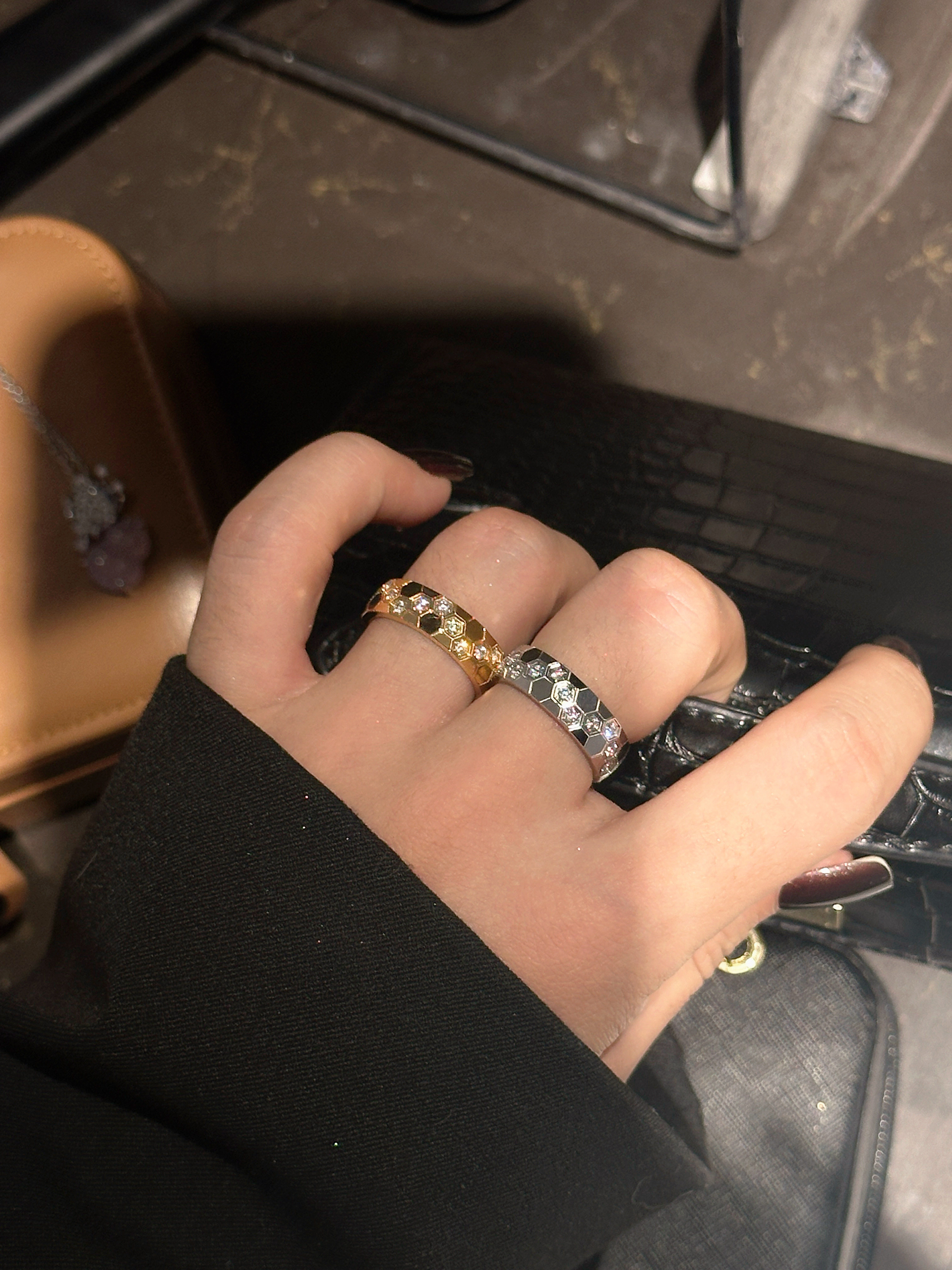 High-Weight Wide Half-Drilled Honeycomb Ring for Women, Light Luxury Niche Fashion Honeycomb Stacking Ring, S925 Sterling Silver Couple Rings