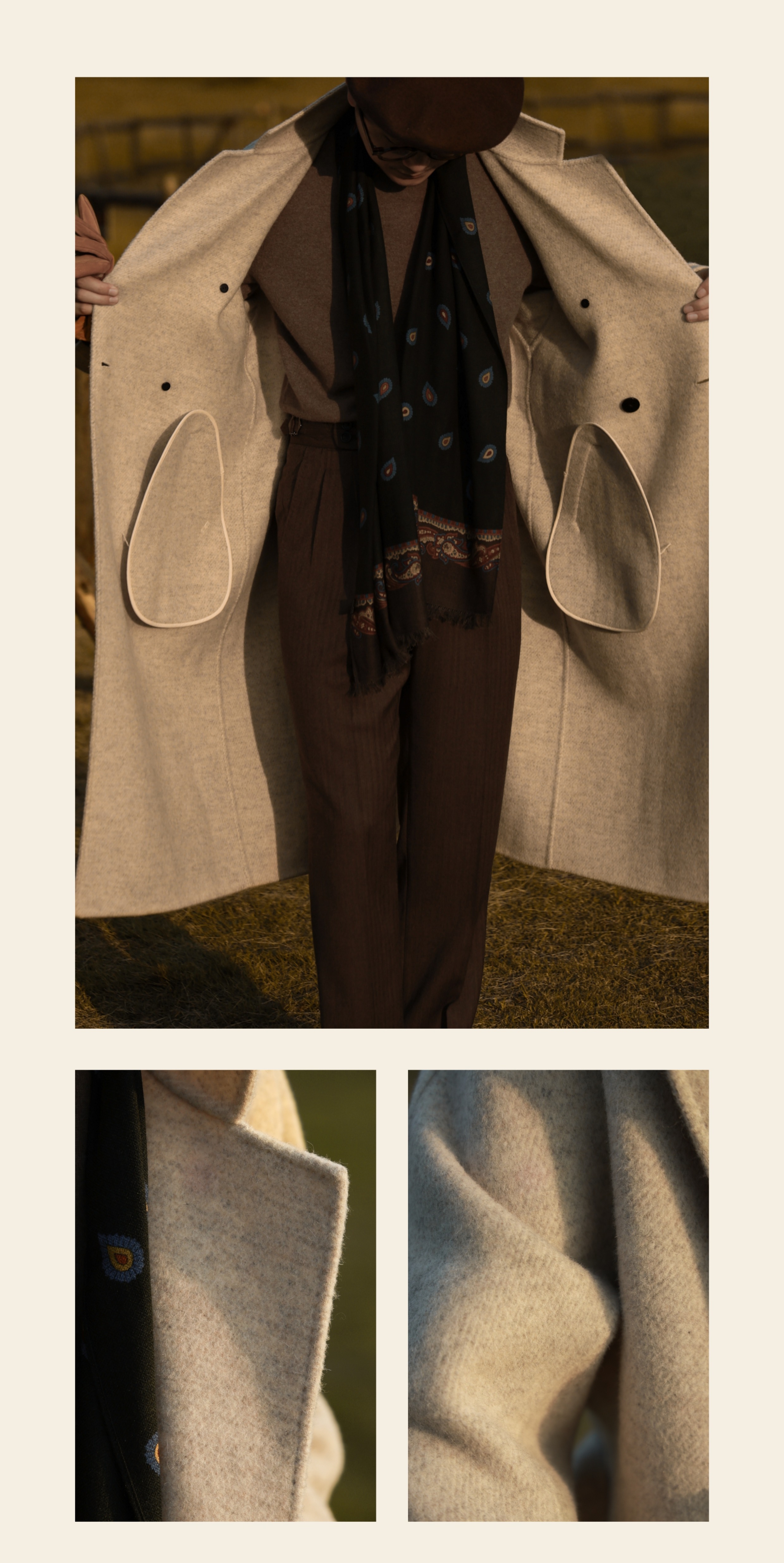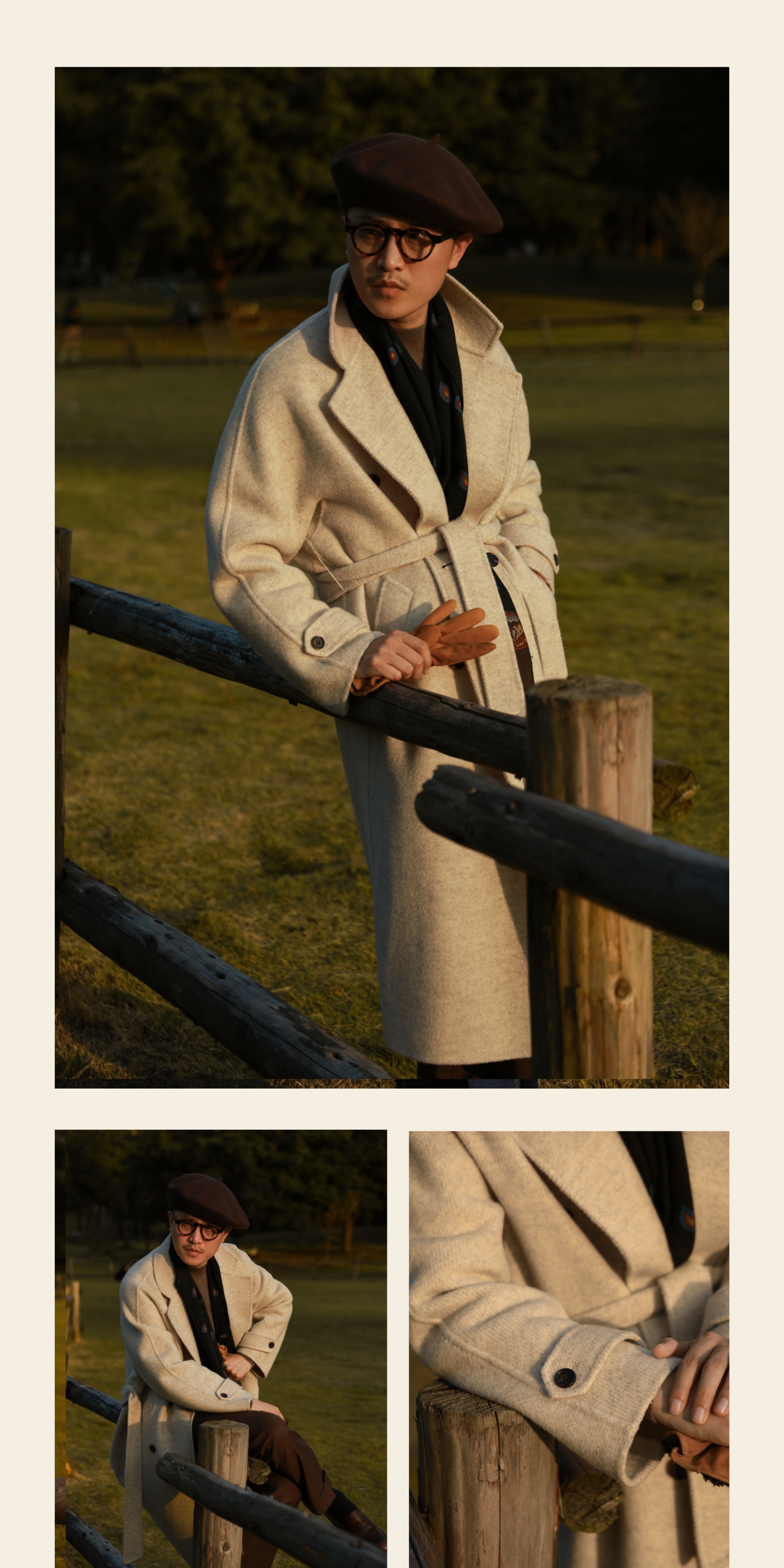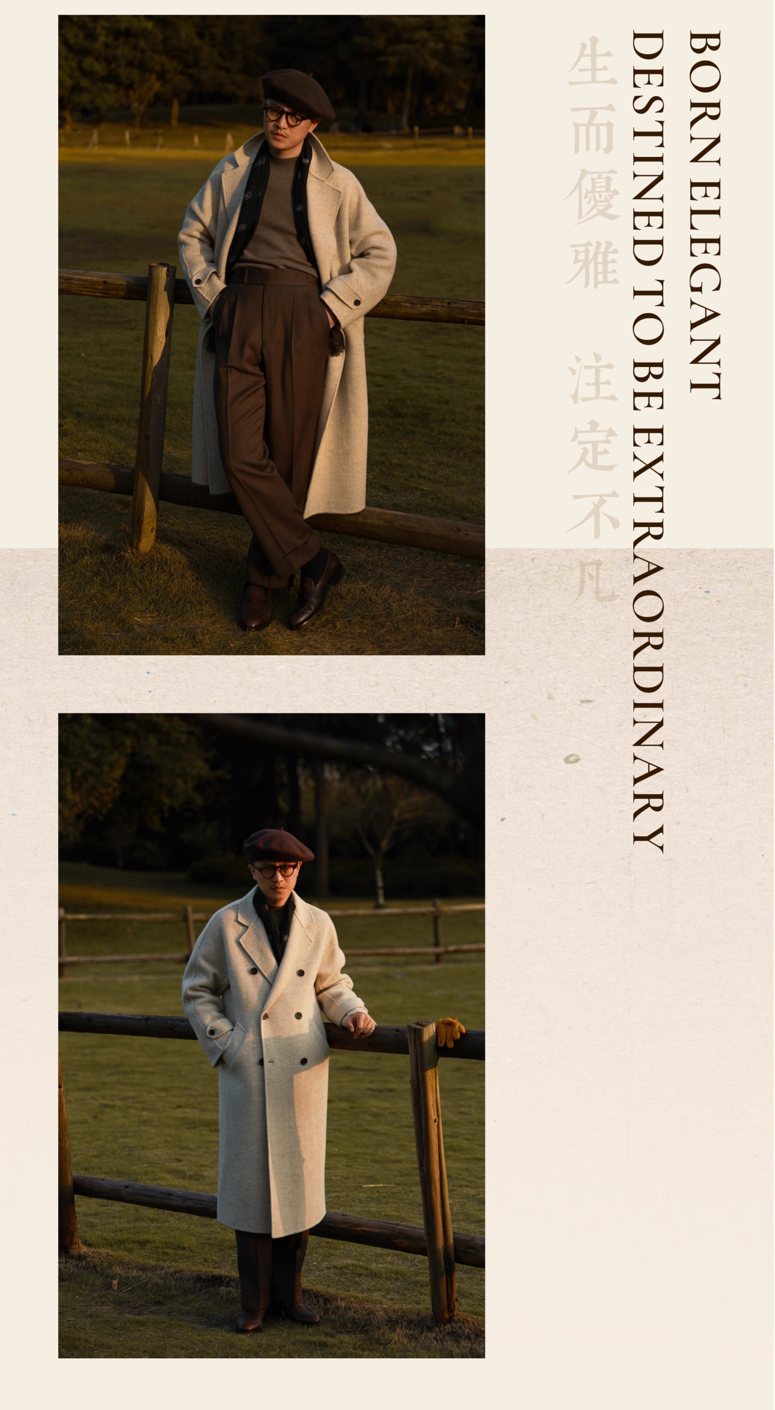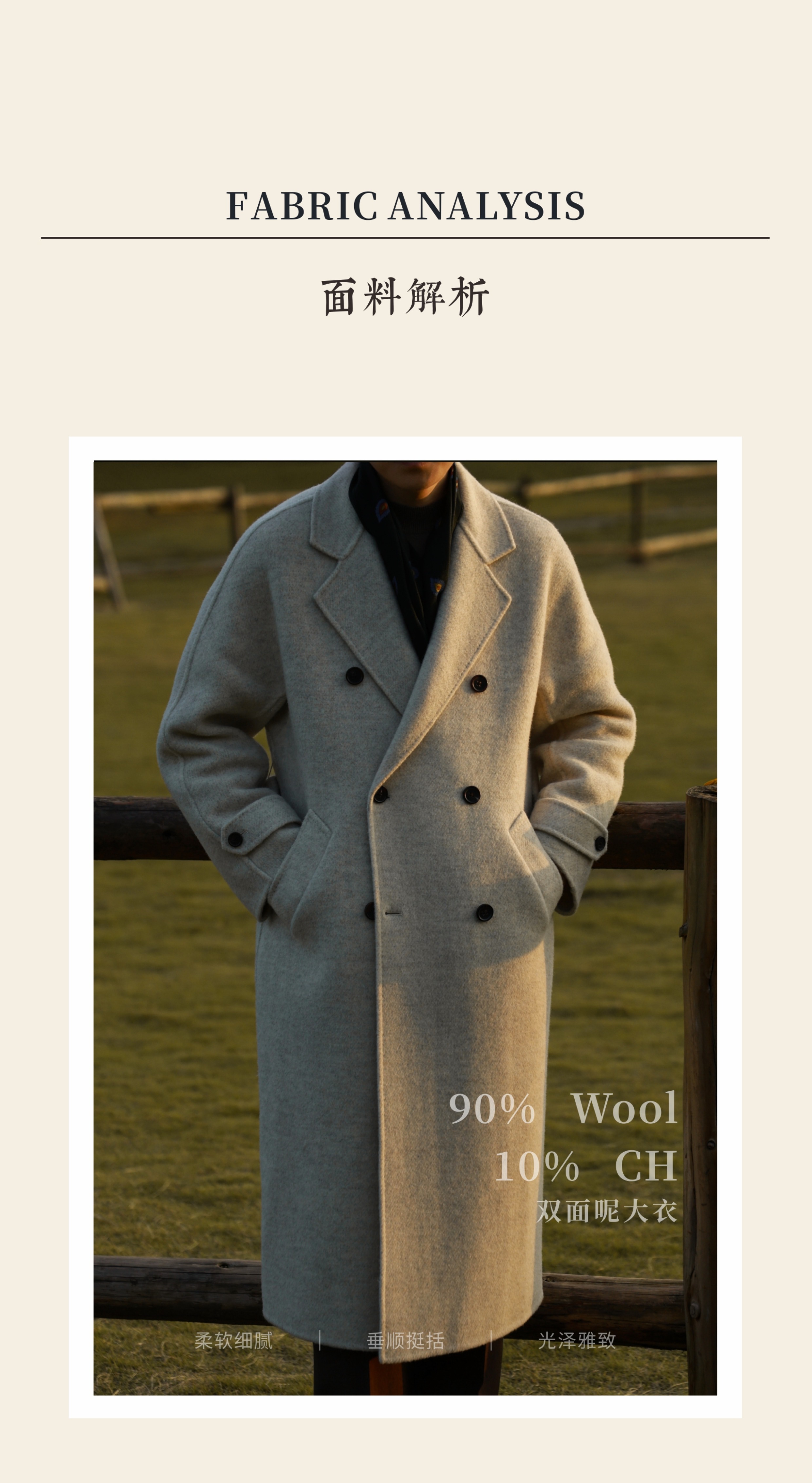 Ugentle Men's Winter Camel Wool'Misty White' Belted Double-Breasted Handmade Double-Sided Wool Coat