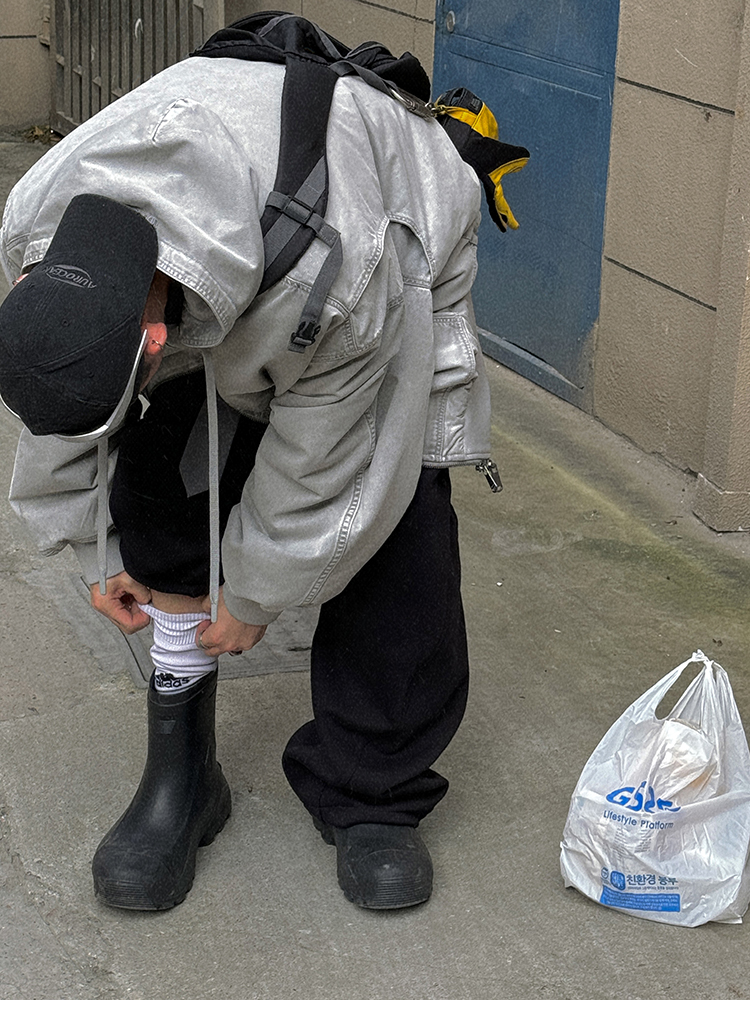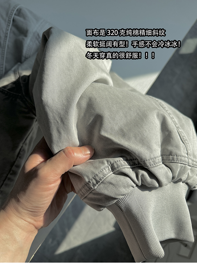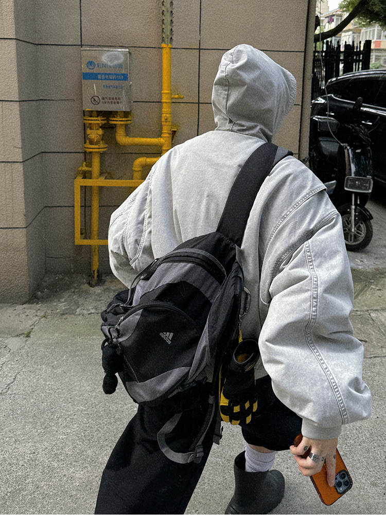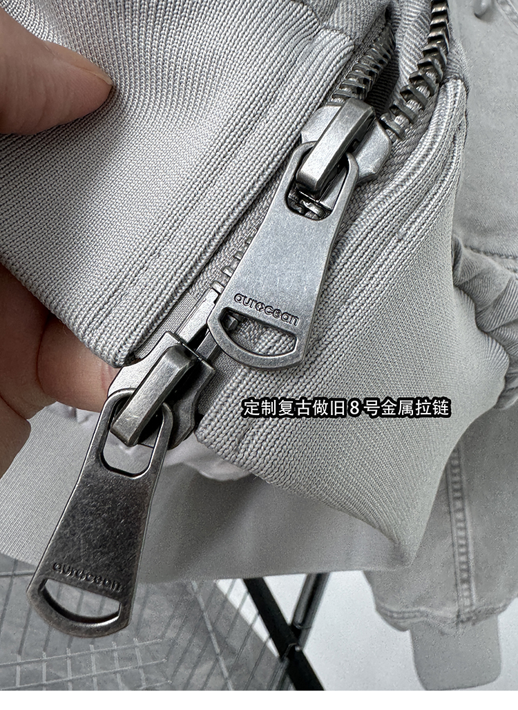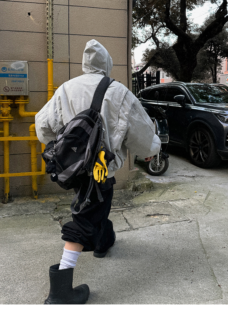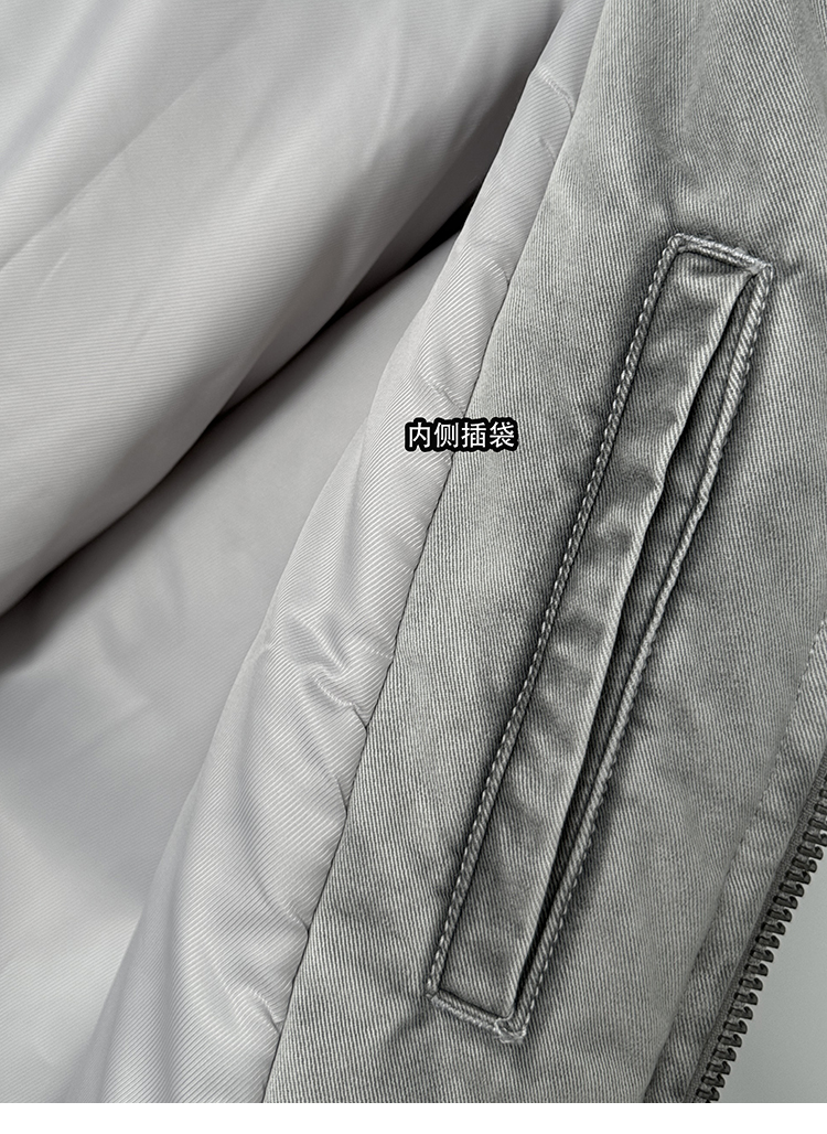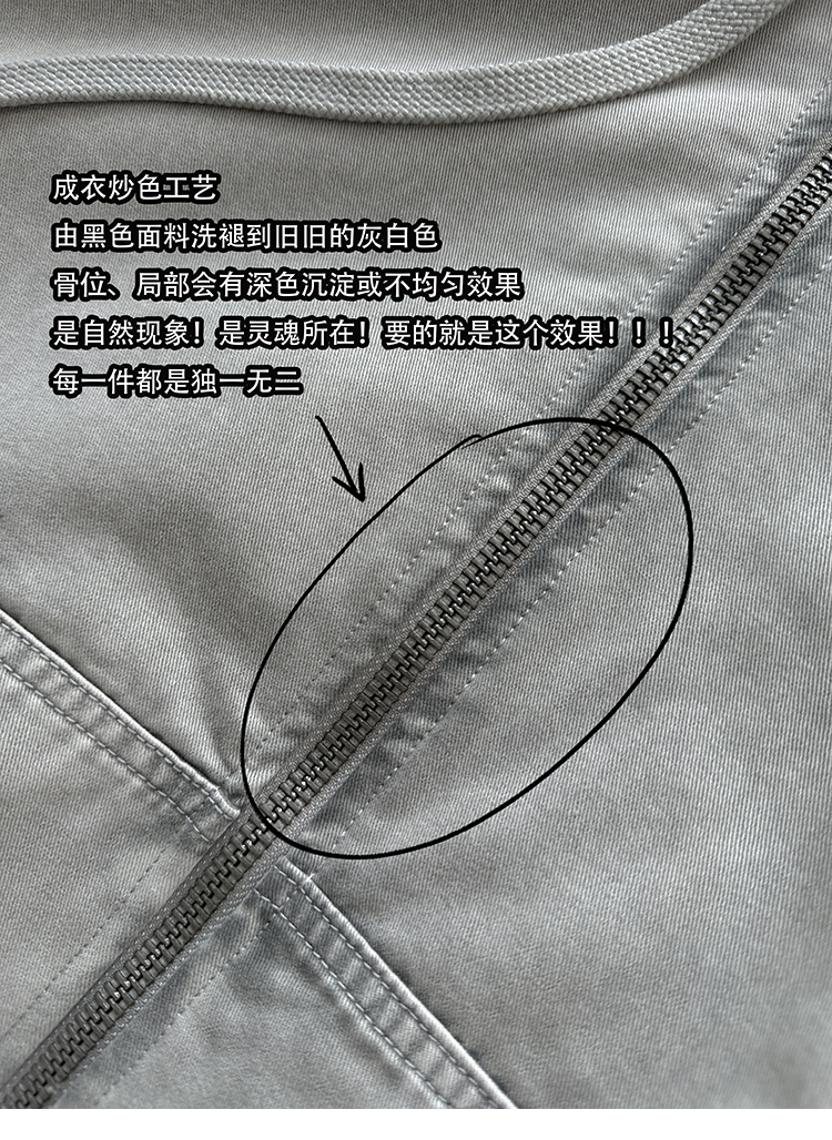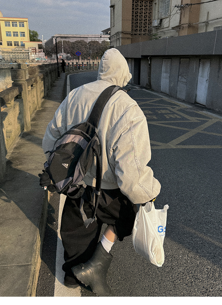 Aurocean Heavily Washed Salt Gray-White Wide Short Hooded Cotton Jacket, Washed Pure Cotton Vintage-Style Thickened Warm Cotton Coat