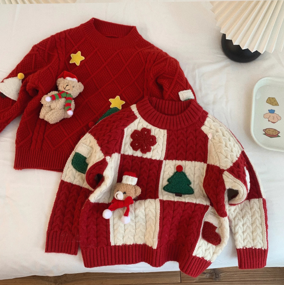 Trendy and Cute Sweaters for Girls, 2025 Winter New Style, Thick Knitted Sweaters for Boys, Warm Pullover Tops for Babies, Fashionable