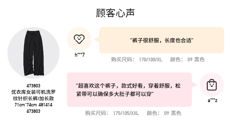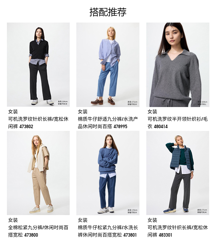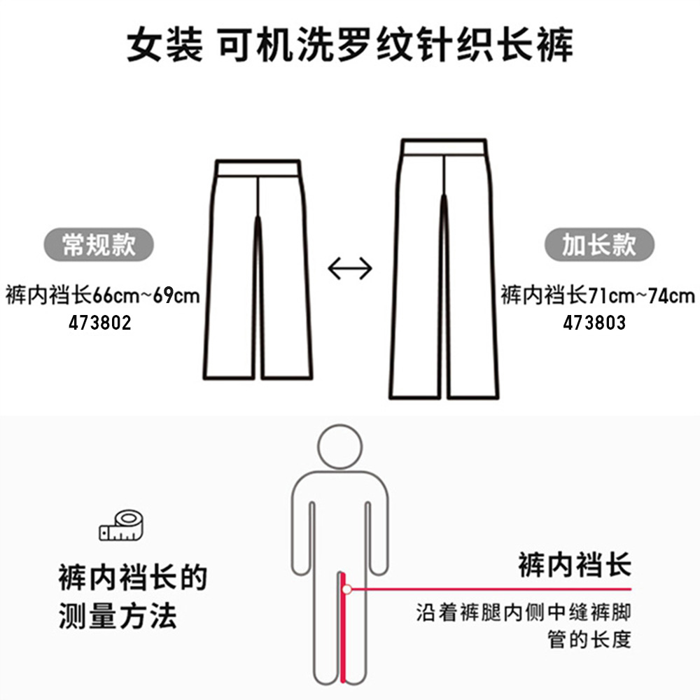 Uniqlo women's machine washable rib Knitting pants/lengthened 71cm ~ 74cm 481414 473803