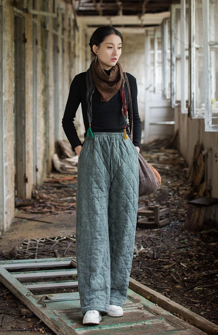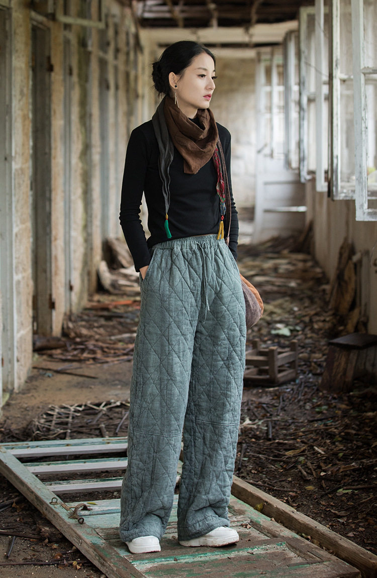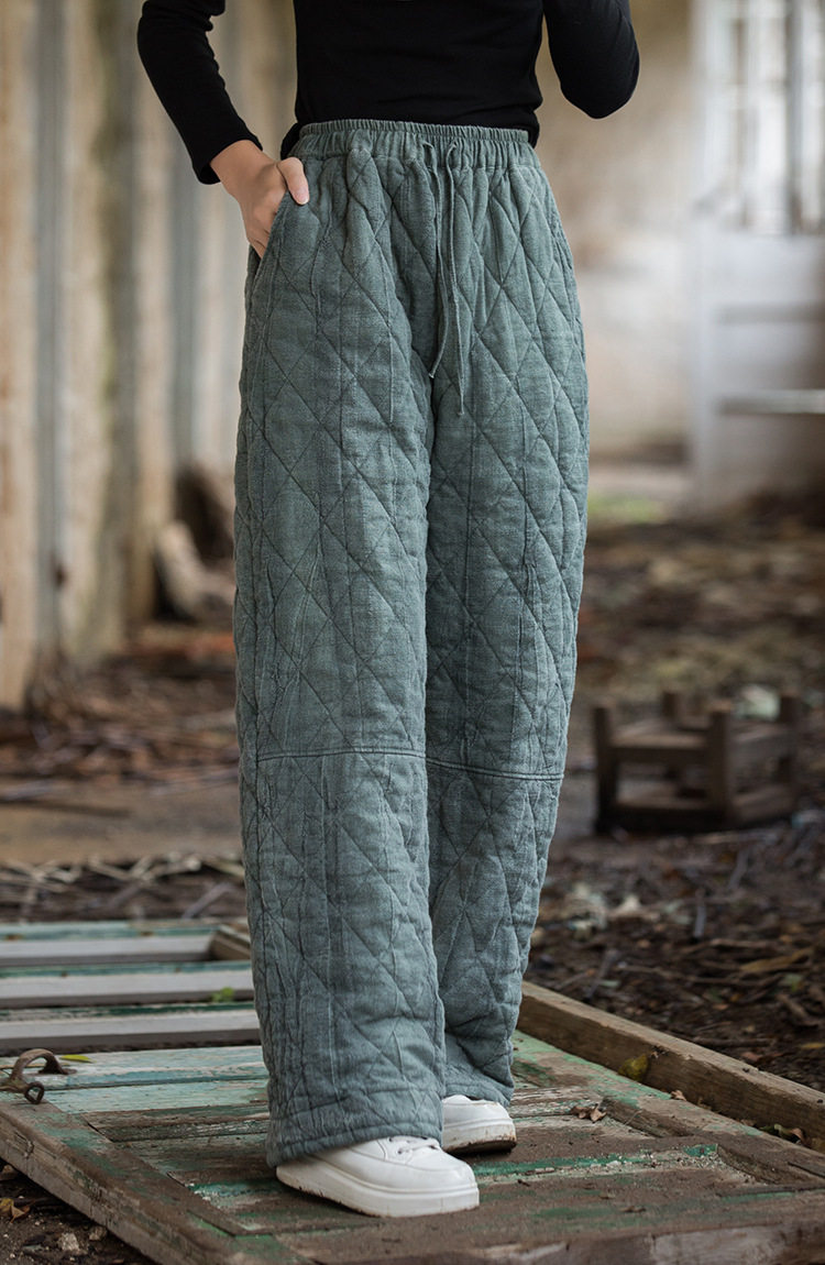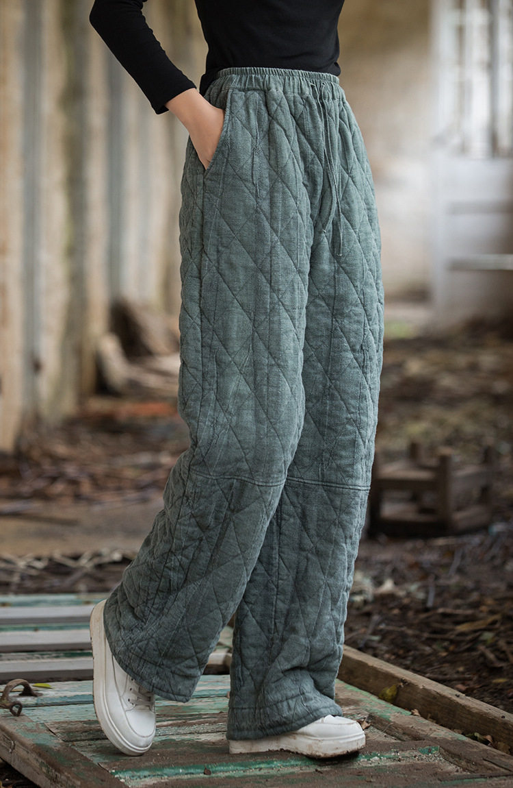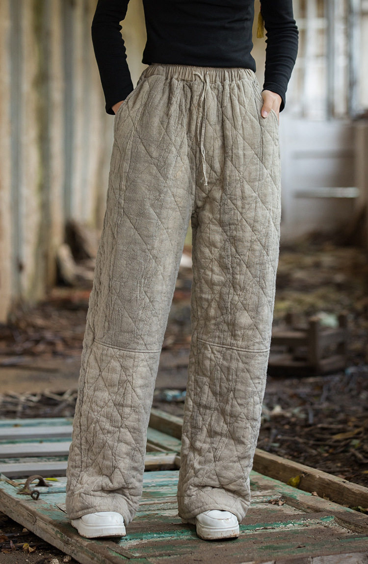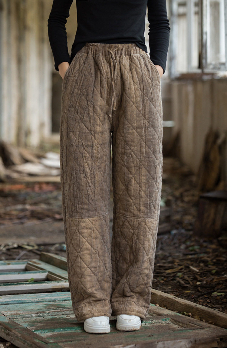 Winter Warm Cotton Pants for Women, High-End Ramie Tie-Dye Padded Pants, Unique Straight-Leg Artistic Thickened Long Pants