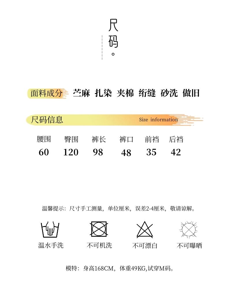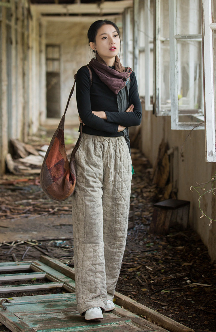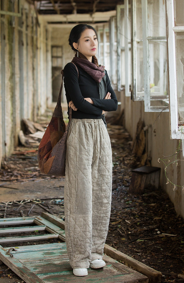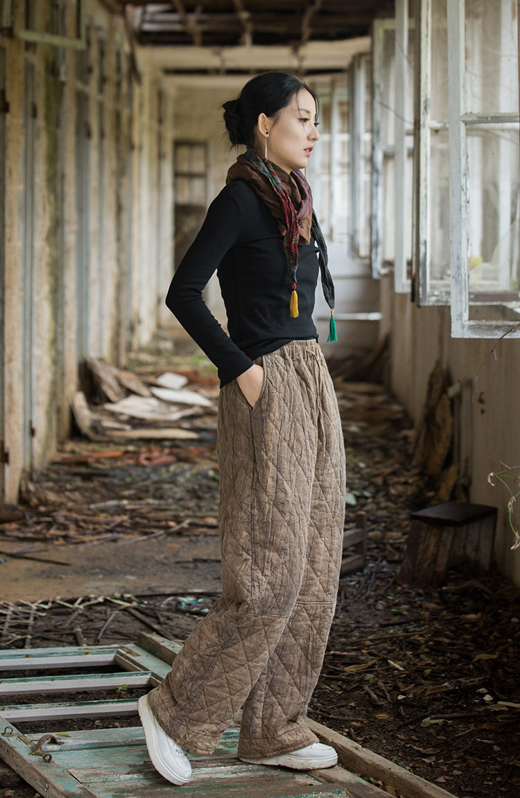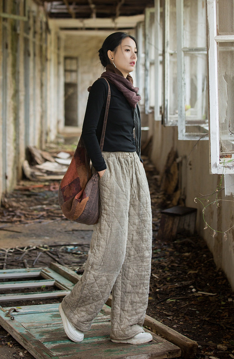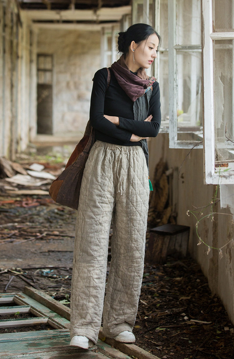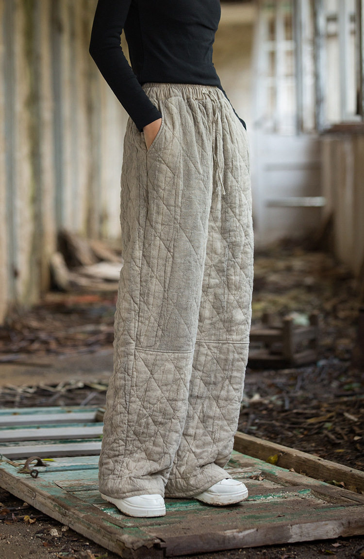 Winter Warm Cotton Pants for Women, High-End Ramie Tie-Dye Padded Pants, Unique Straight-Leg Artistic Thickened Long Pants