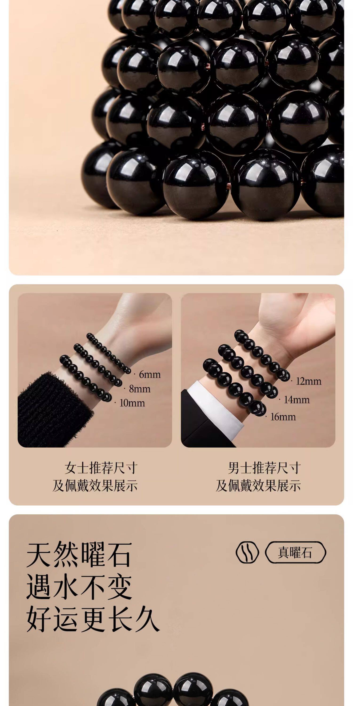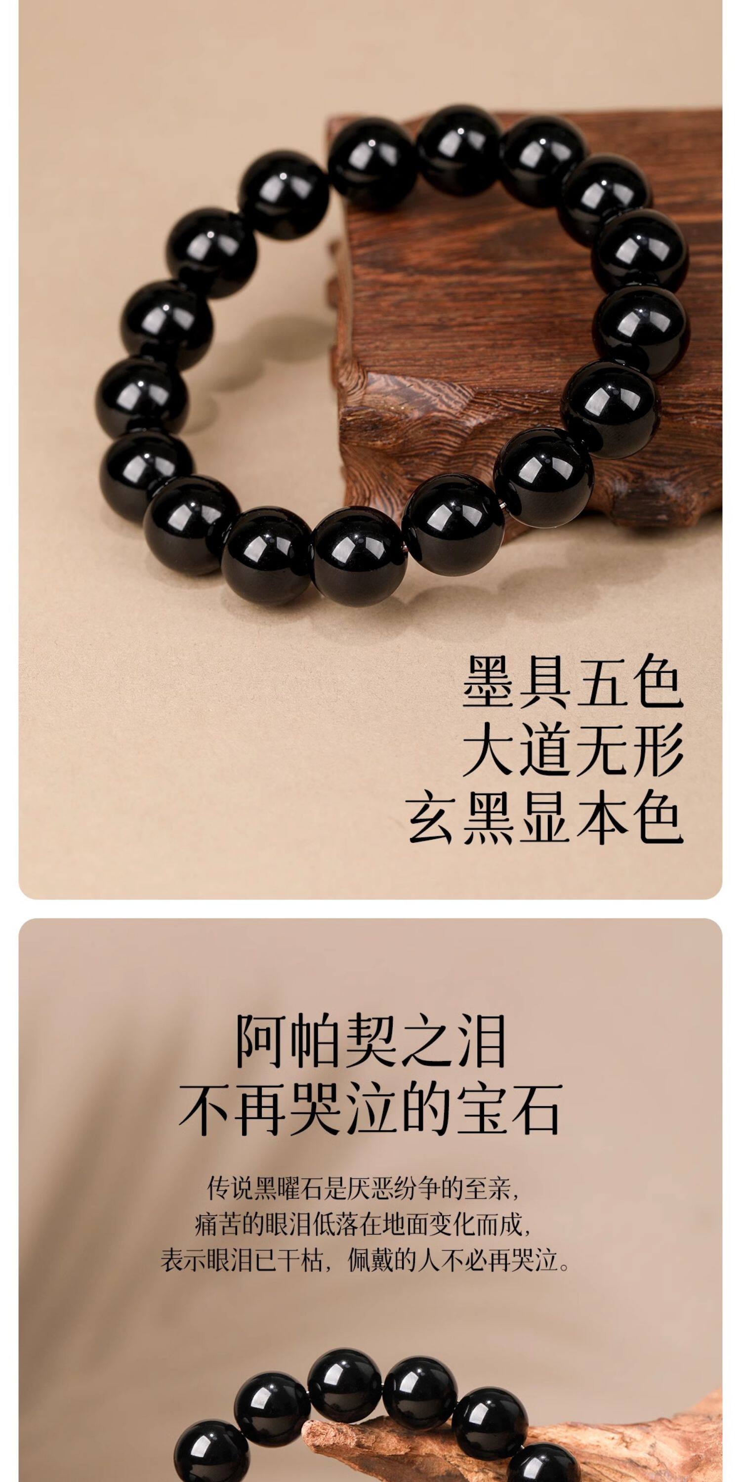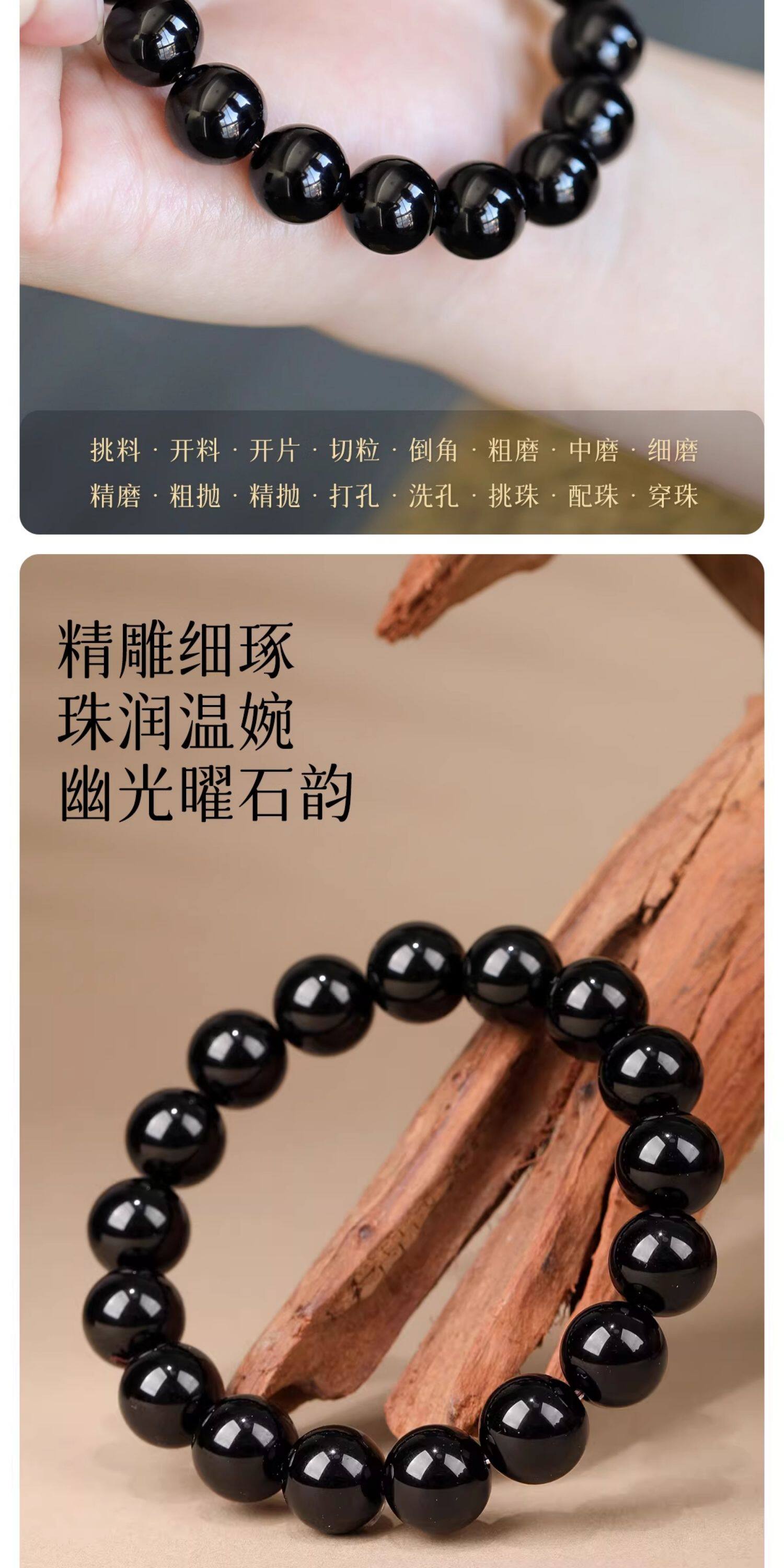 Natural Black Gold Obsidian Bracelet Natural Obsidian Black Beads Loose Beads Single Circle Bracelet for Men and Women
