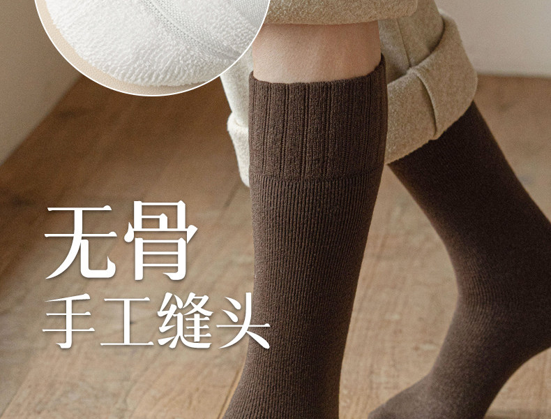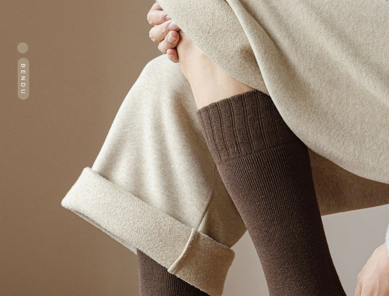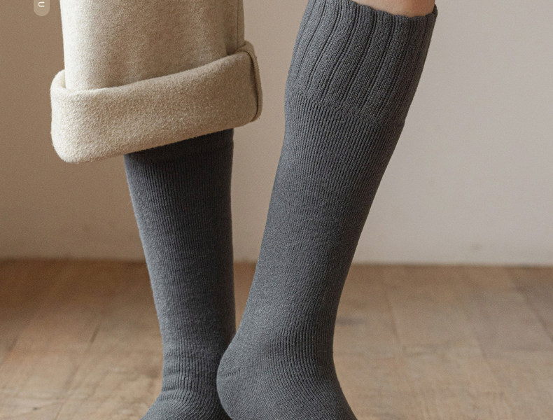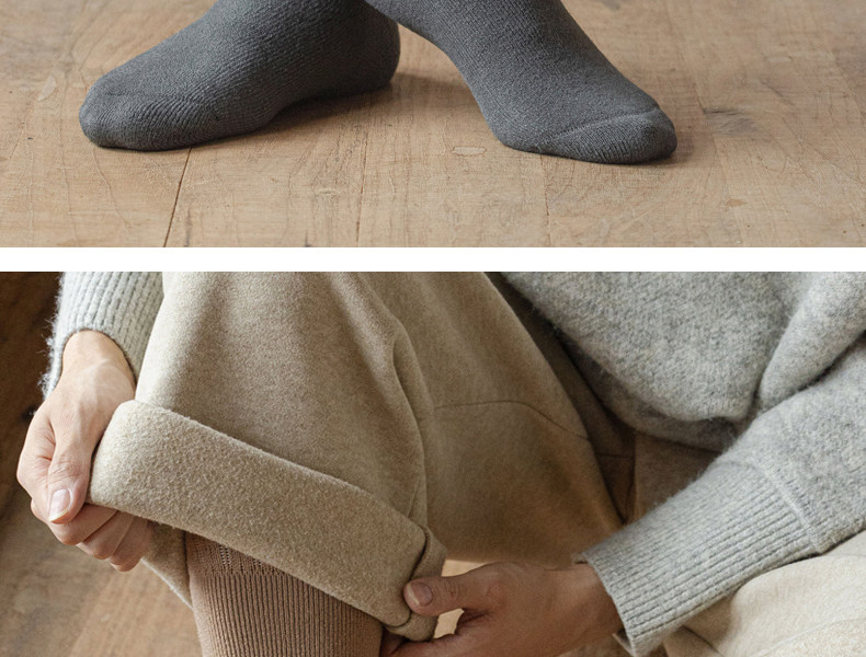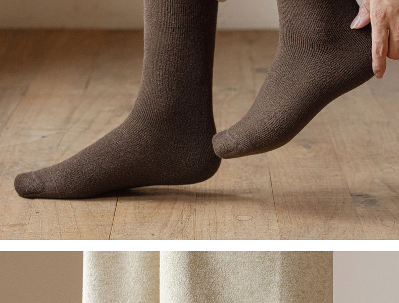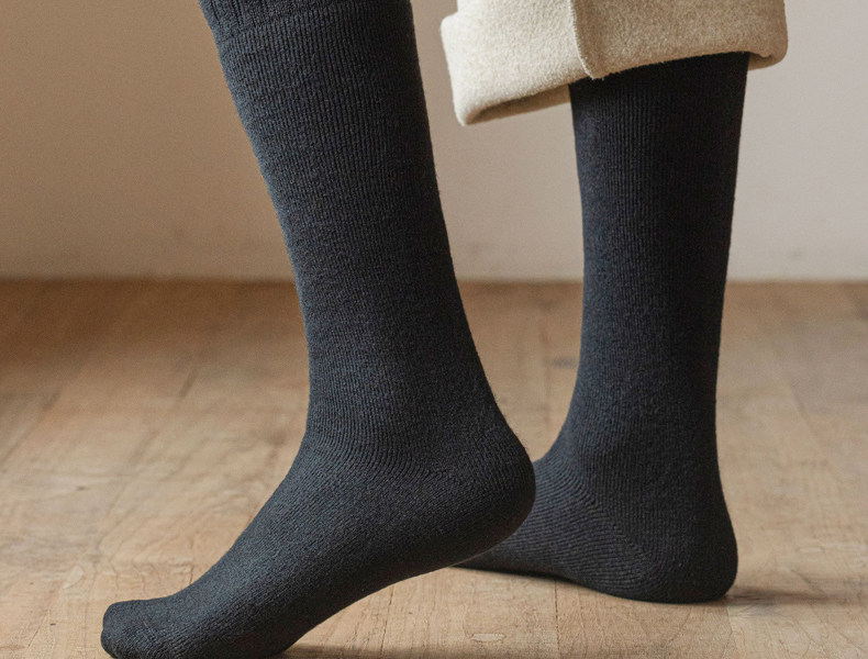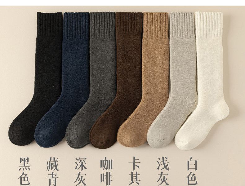 Thickened Long Socks for Men, Autumn and Winter Fleece-Lined Wool and Cashmere Warm Towel-Soled Full Cotton High Tube Calf Socks