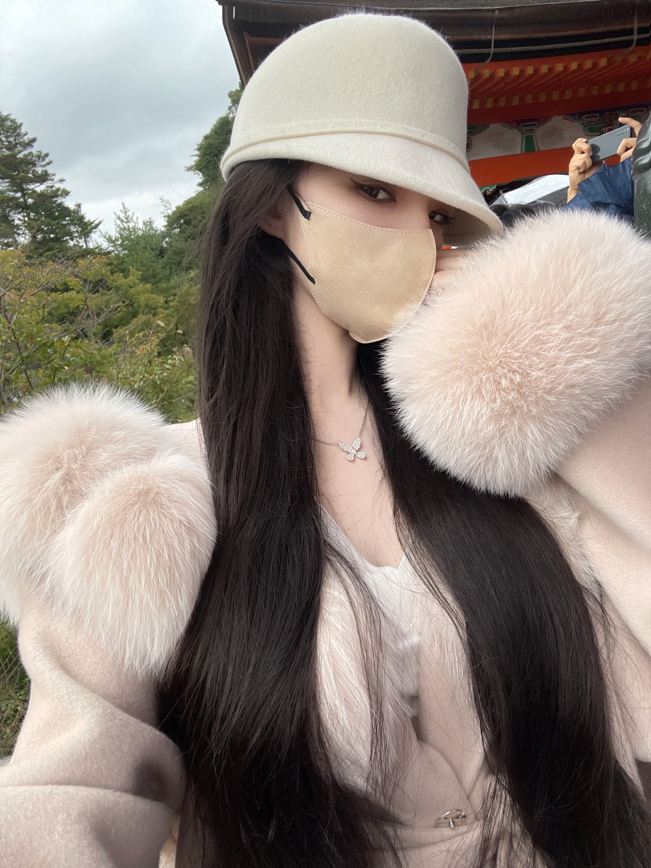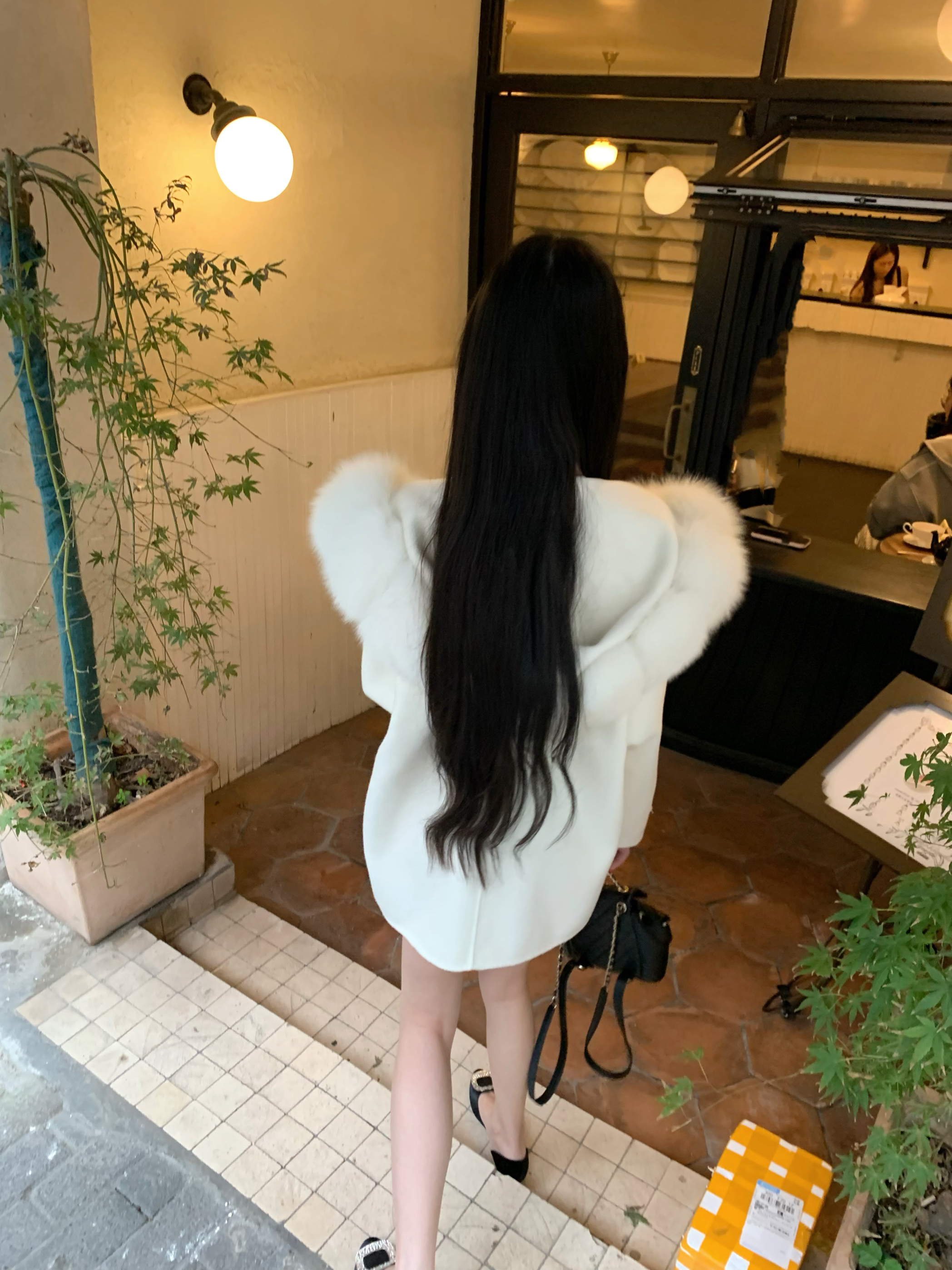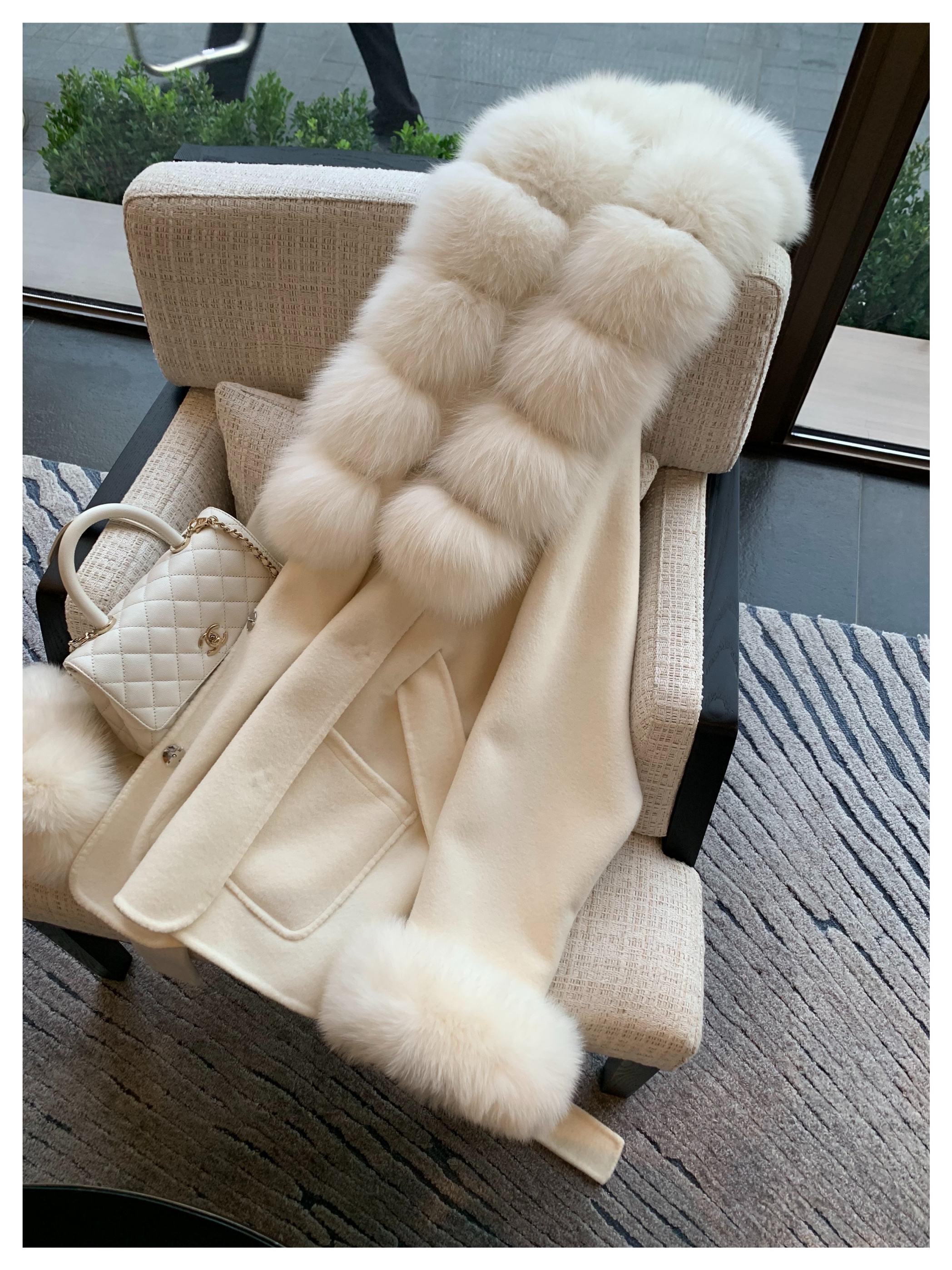 狐狸毛毛领覆盖了领口和帽檐整圈