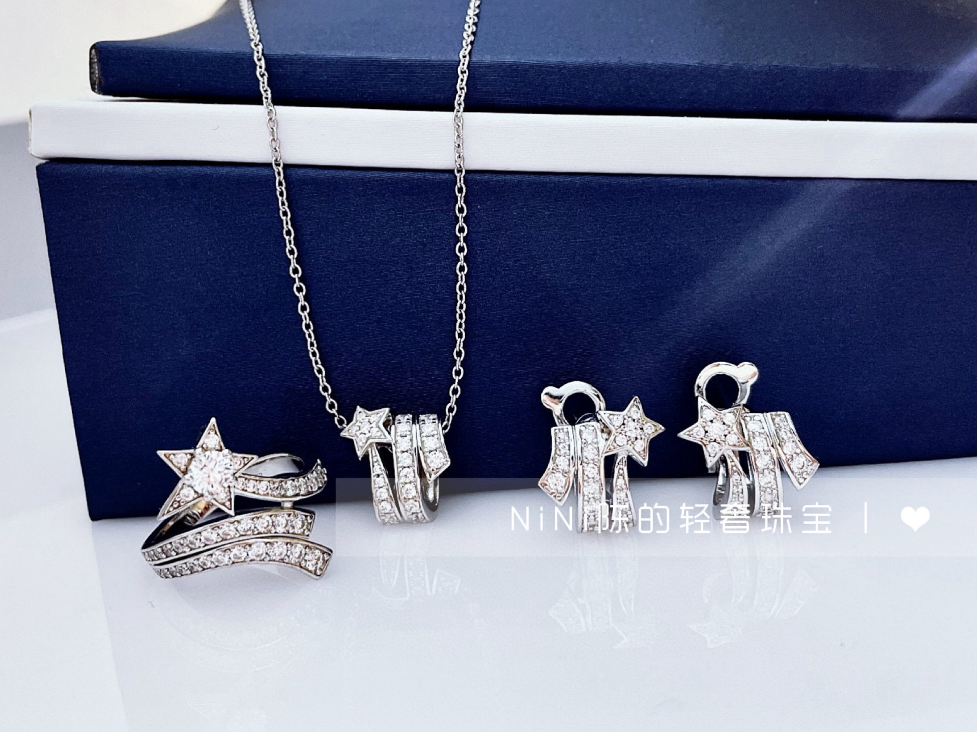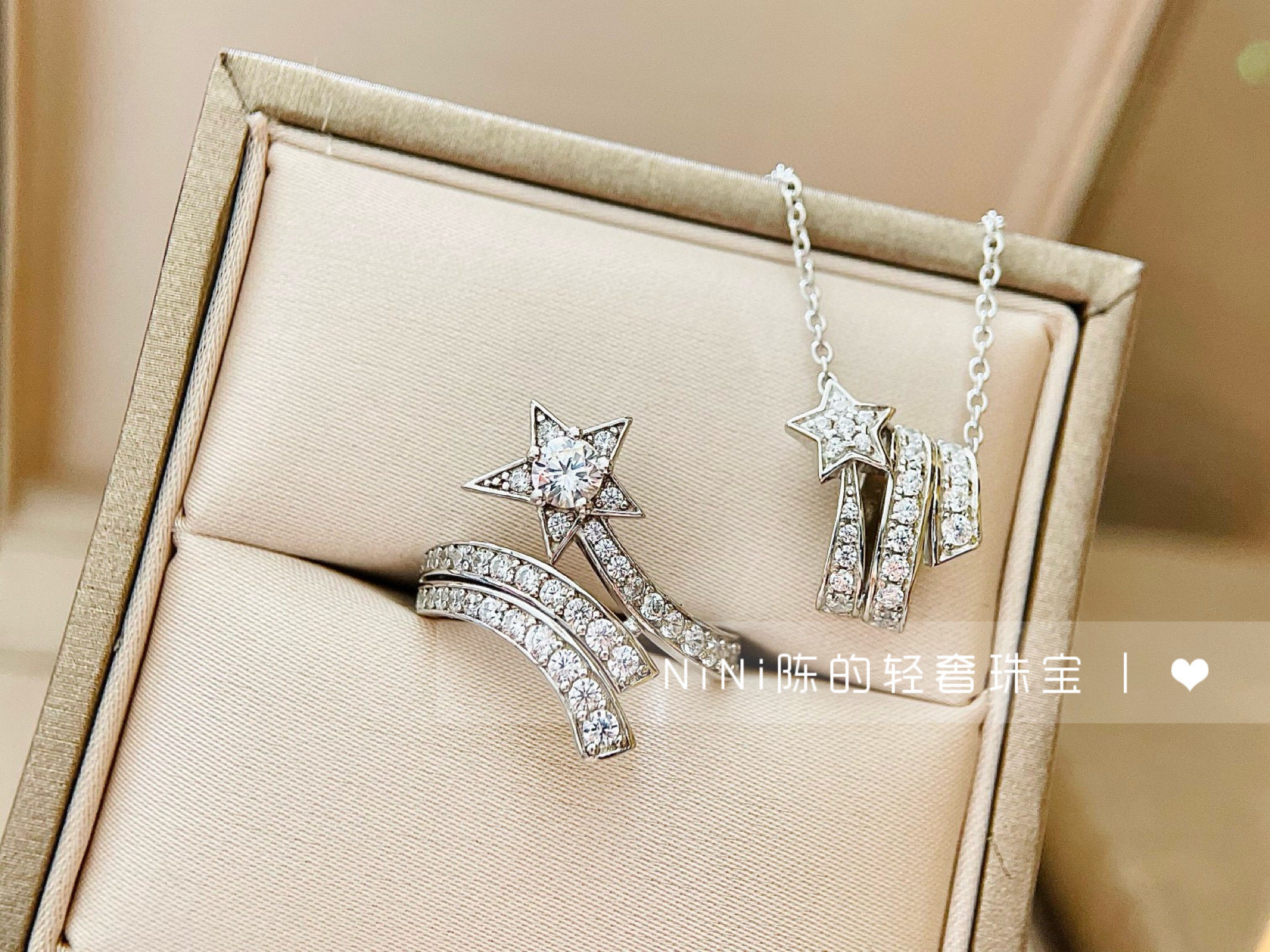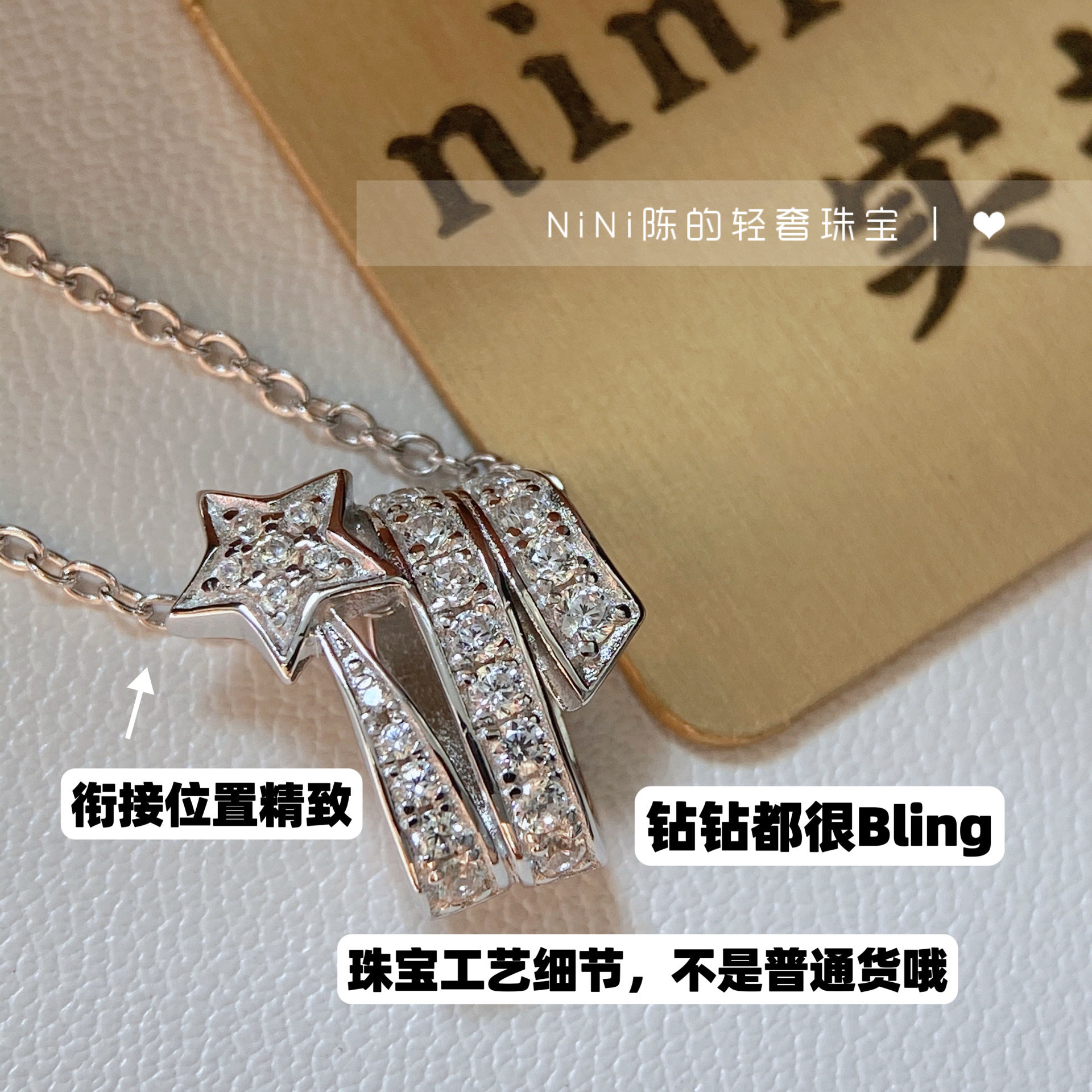 High-End Version of Yu Shuxin's Comet Necklace, New Style for Women, Chanel-Inspired Clavicle Chain, Silver Plated with 18K Gold, Earrings and Bracelet