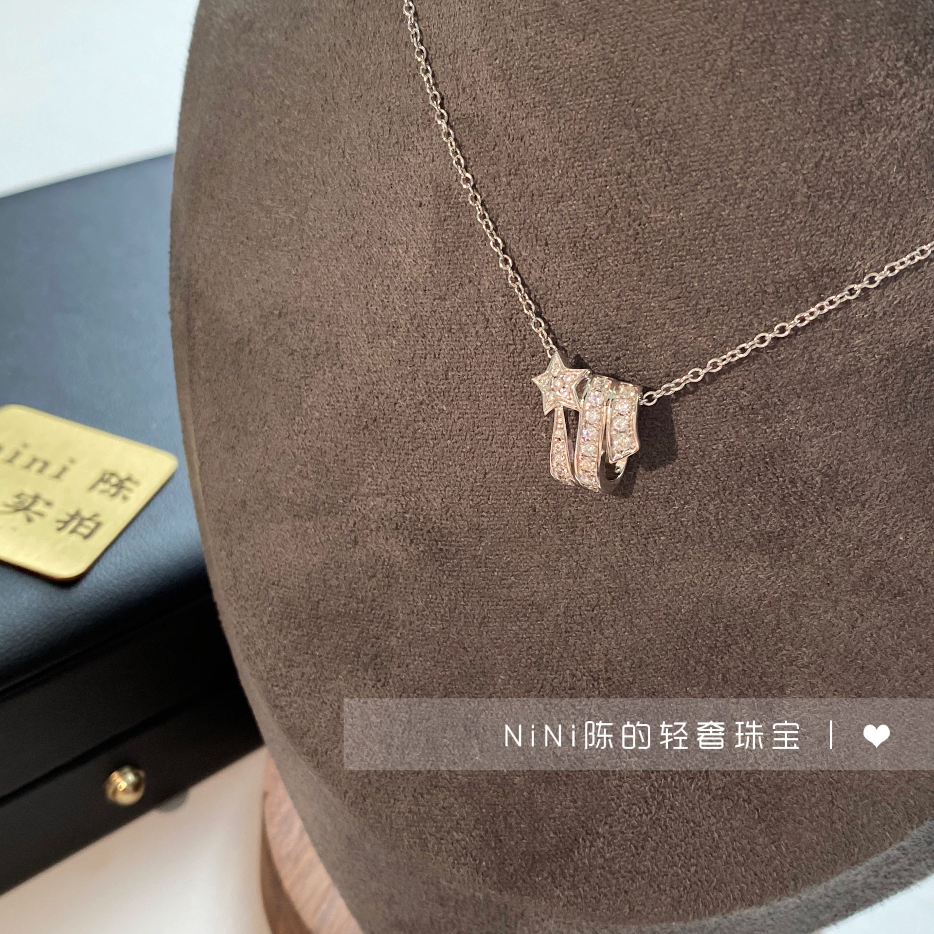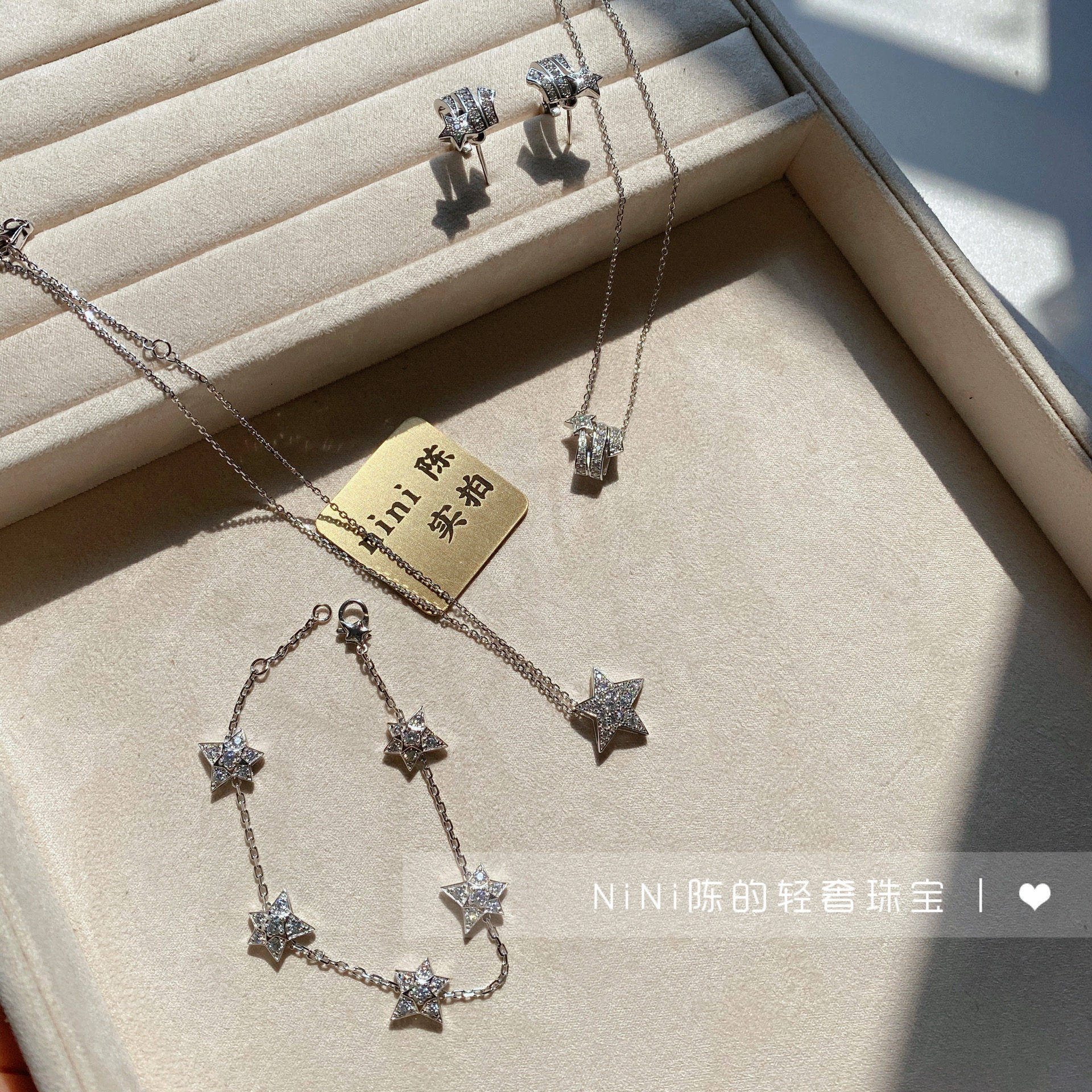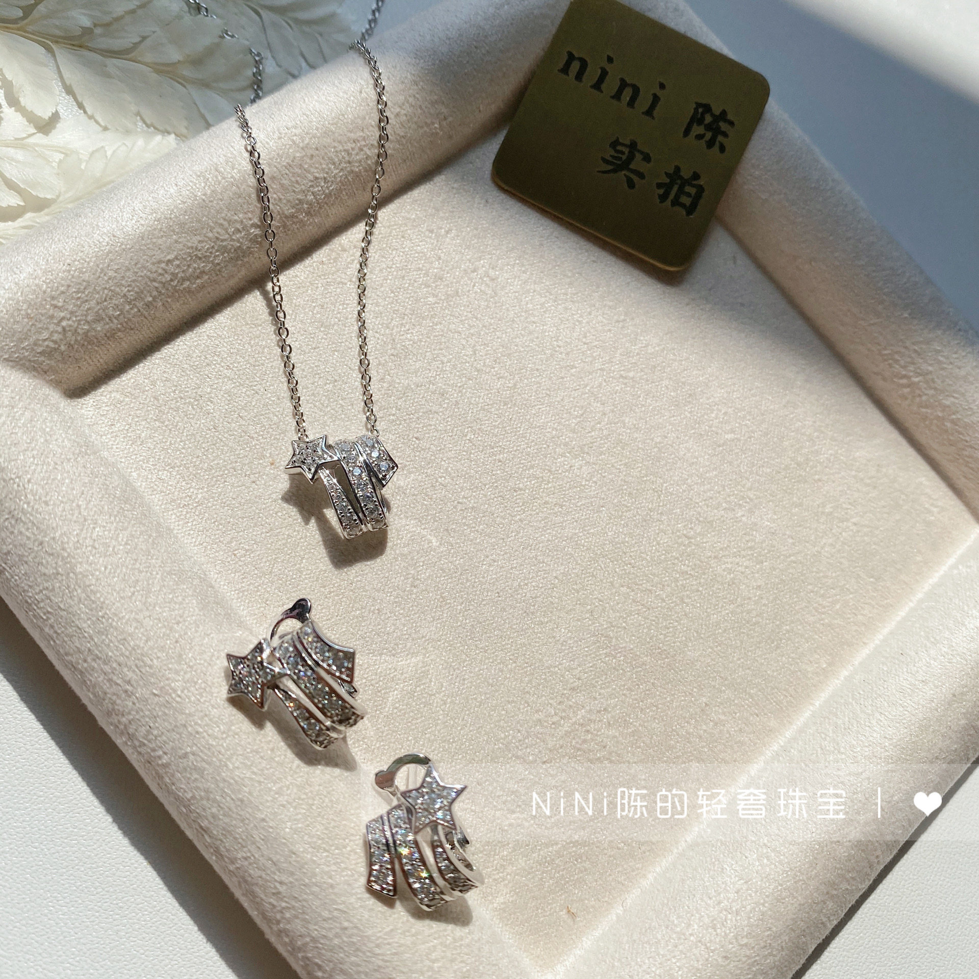 High-End Version of Yu Shuxin's Comet Necklace, New Style for Women, Chanel-Inspired Clavicle Chain, Silver Plated with 18K Gold, Earrings and Bracelet