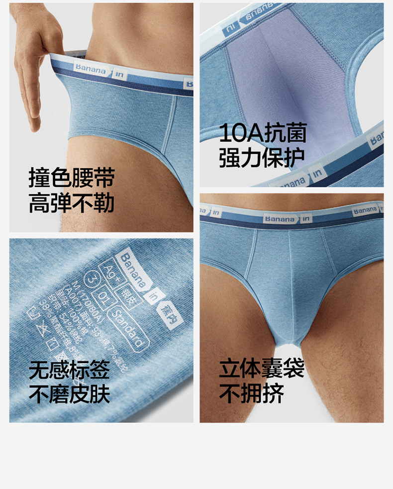 3 Pieces | Jiao Nei Yinpi 301S Men's Briefs, Pure Cotton Crotch, Antibacterial, Large Size, Breathable Boxer Briefs for Teenagers