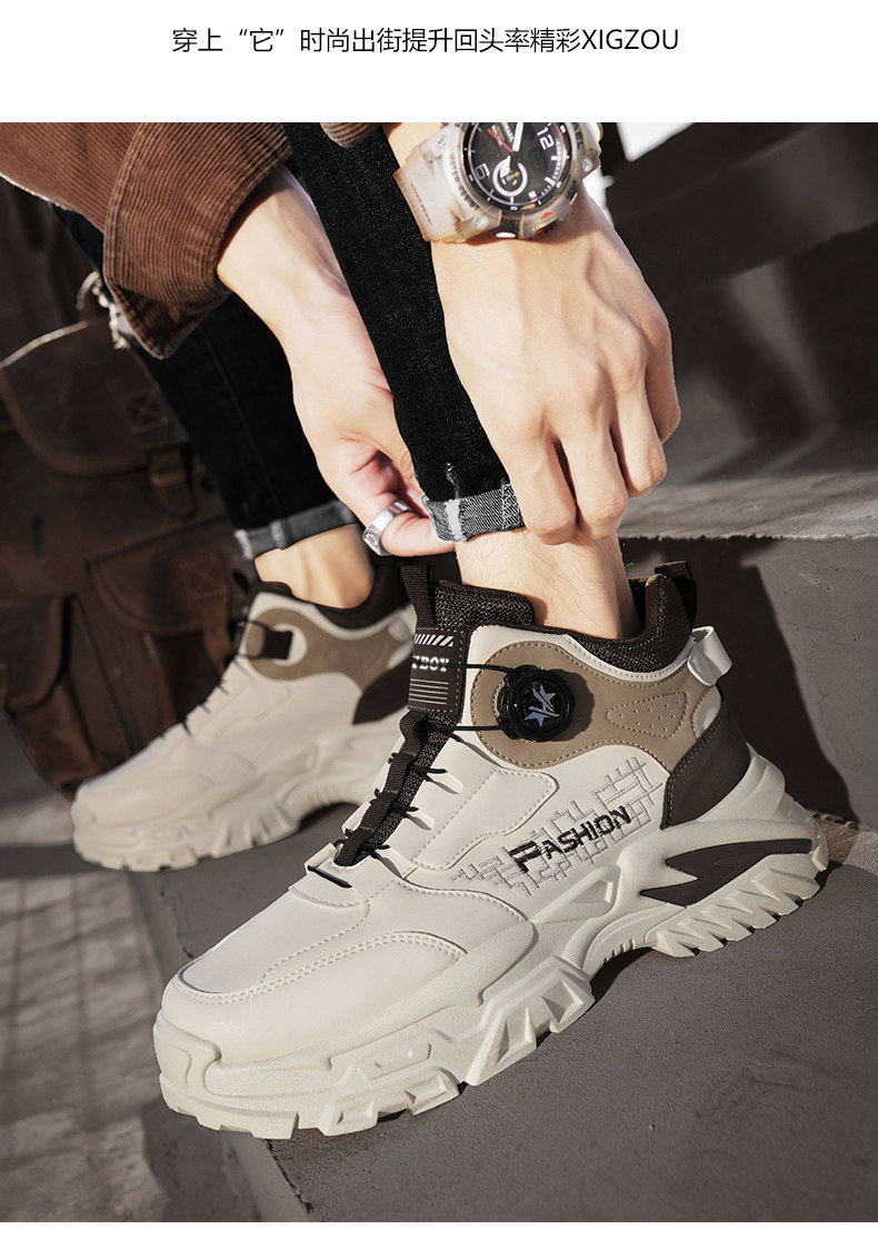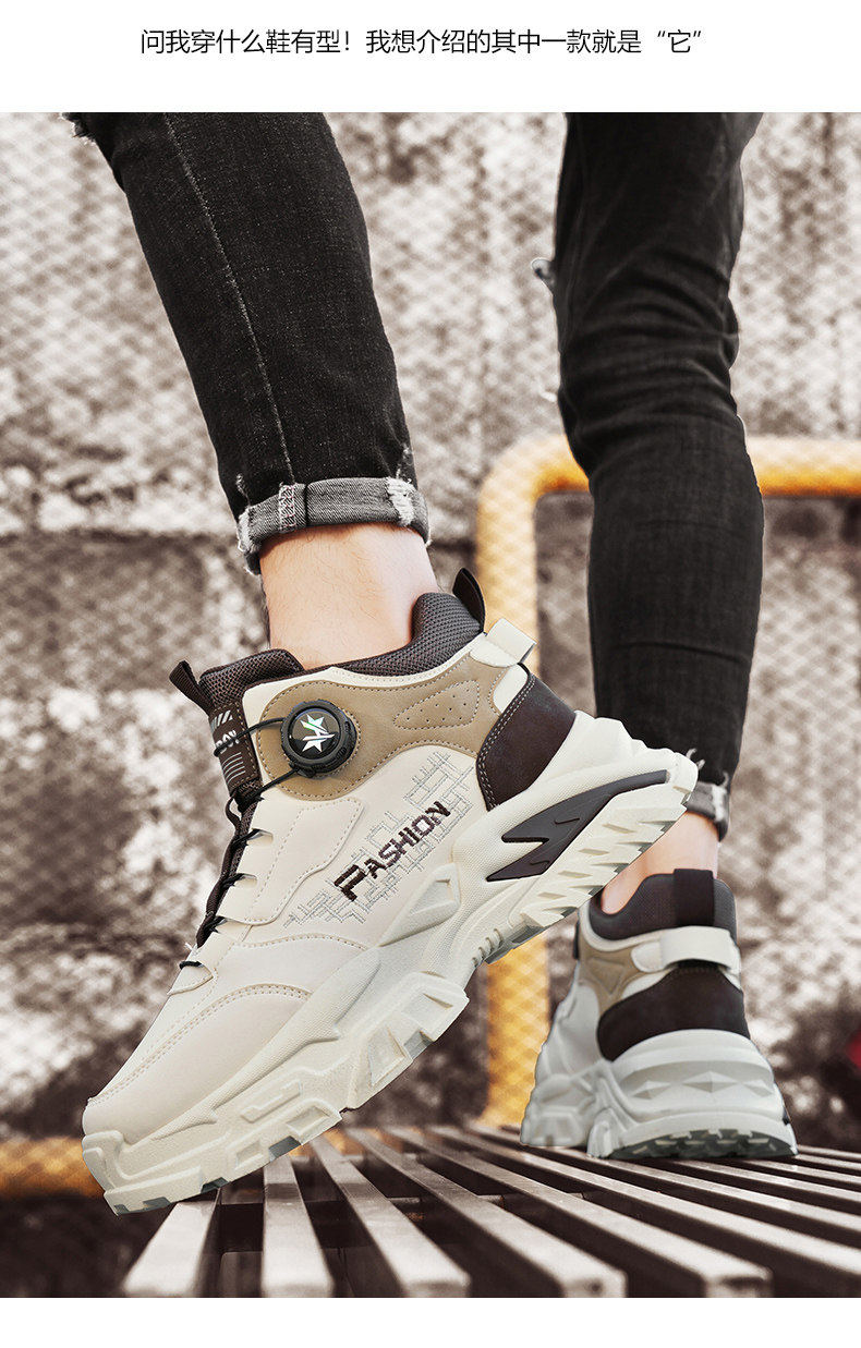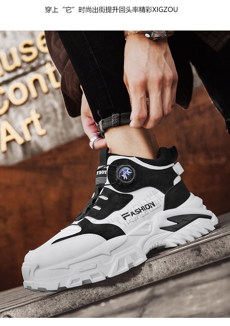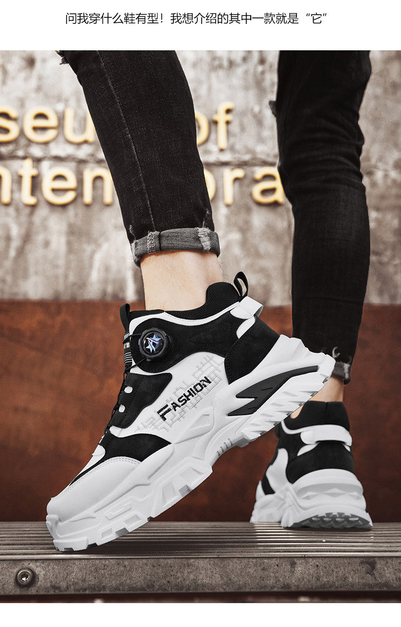 Playboy High-Top Men's Shoes, Winter Fleece-Lined, Rotary Buckle Dad Shoes, Thick-Soled Height-Increasing Trendy Casual Sneakers