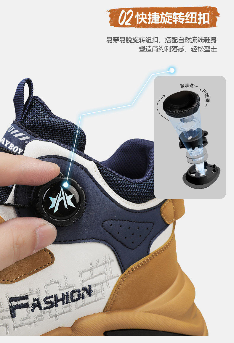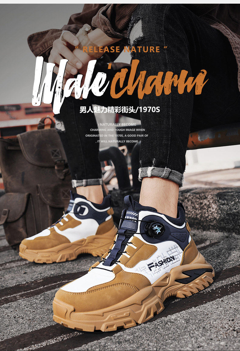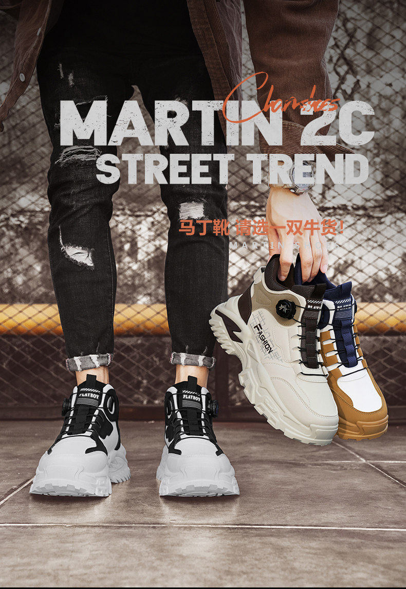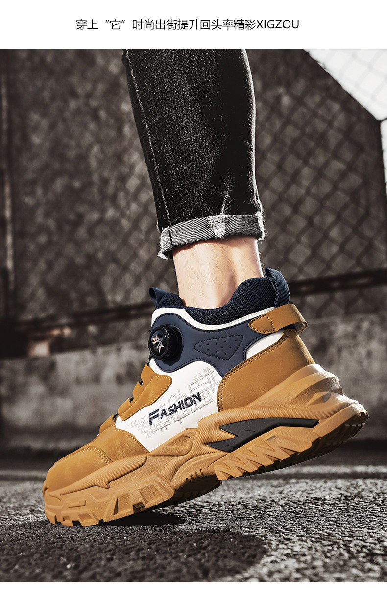 Playboy High-Top Men's Shoes, Winter Fleece-Lined, Rotary Buckle Dad Shoes, Thick-Soled Height-Increasing Trendy Casual Sneakers