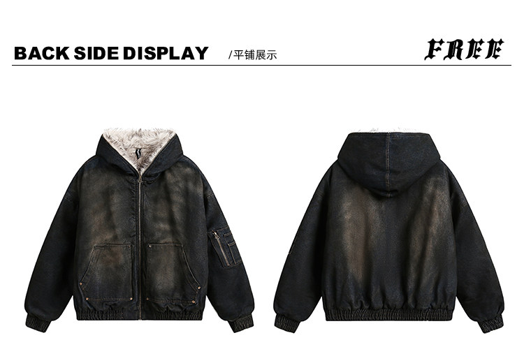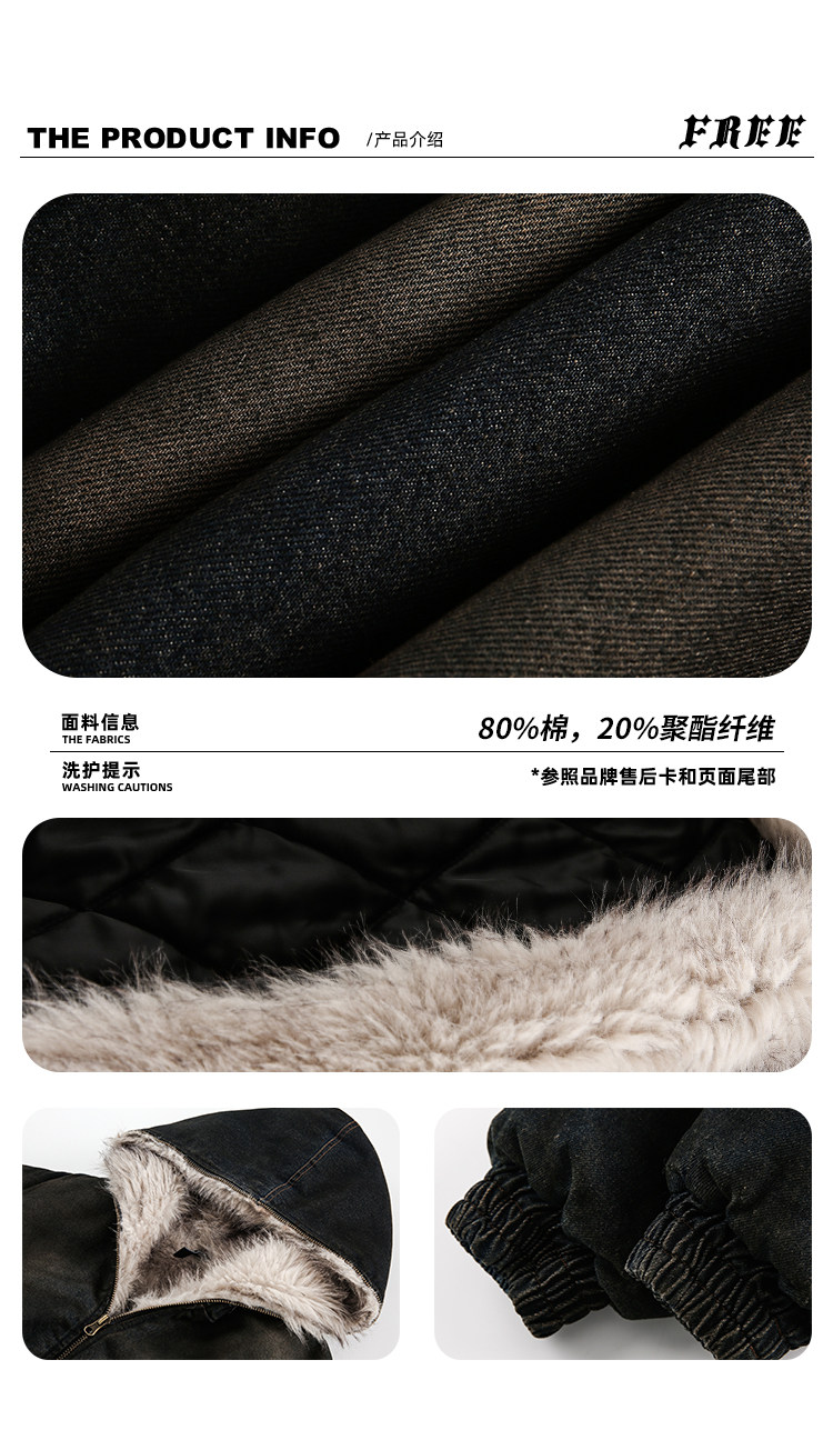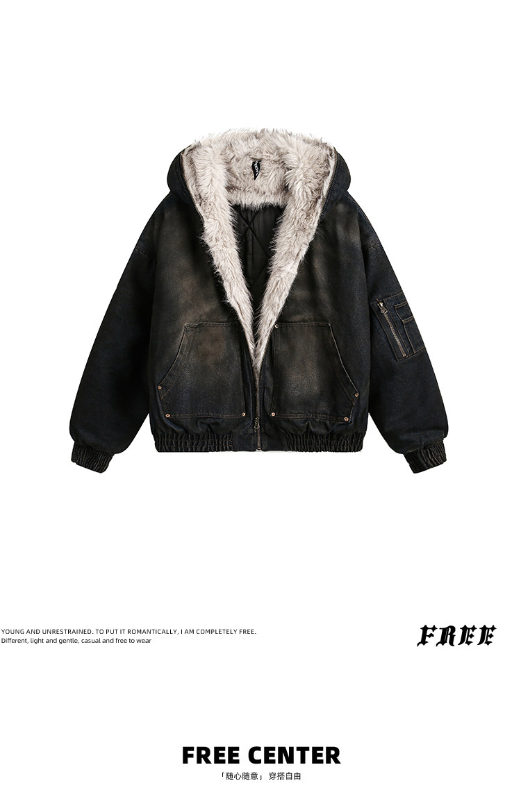 Free Center Vintage Heavy Washed Deconstructed Cotton Jacket for Men and Women, Winter American Style Loose Denim Jacket