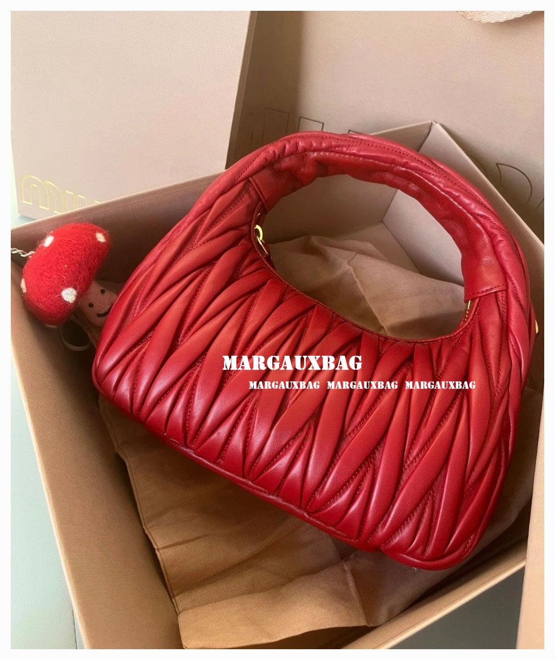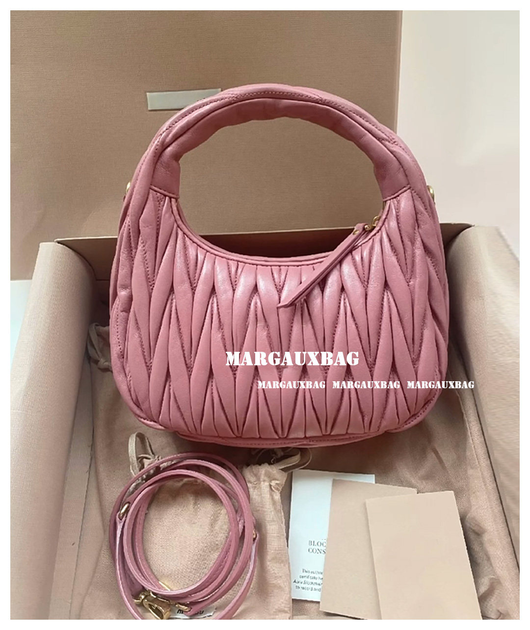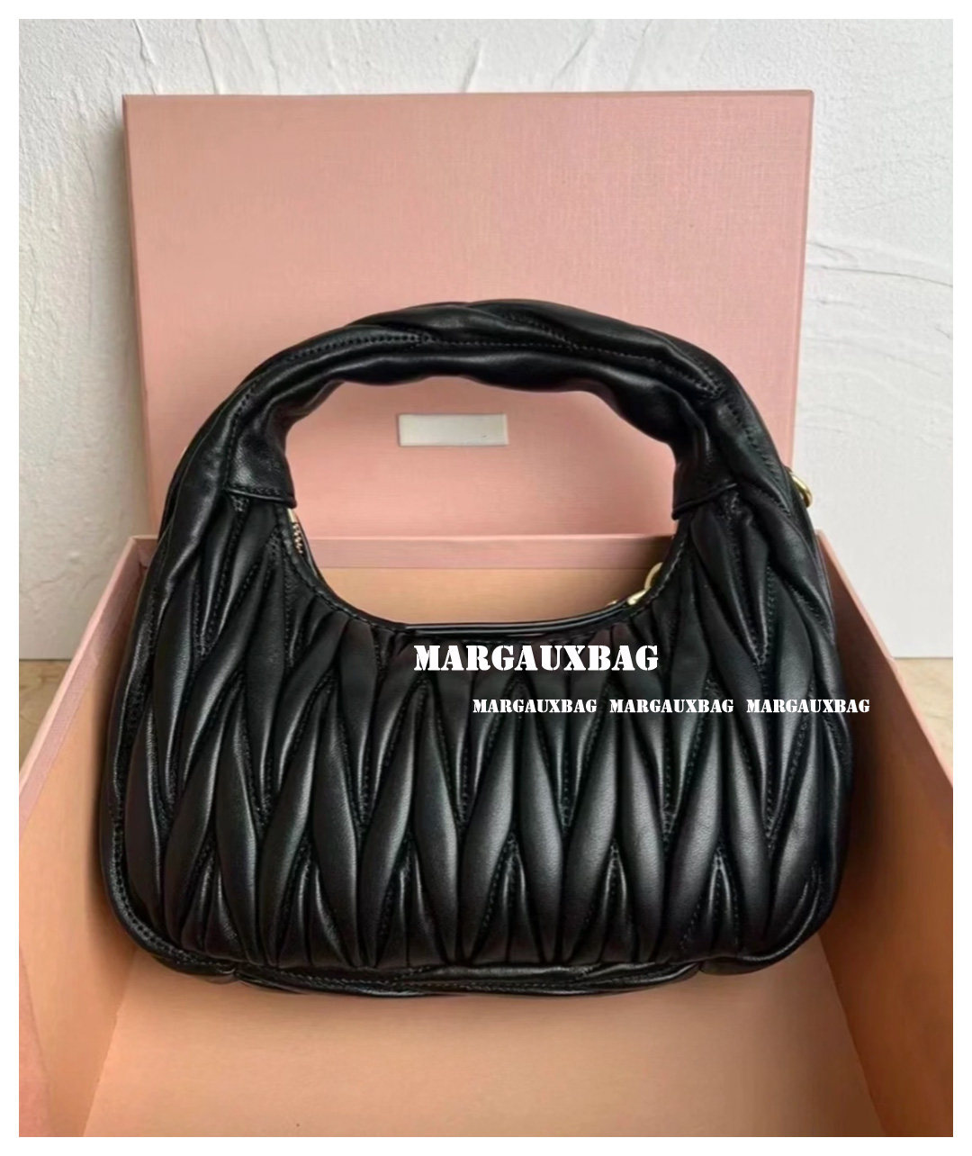 Miaojia Lambskin Pleated Hobo Handbag, Handbag, Crossbody Bag, Women's Bag, Small Wander Women's Bag