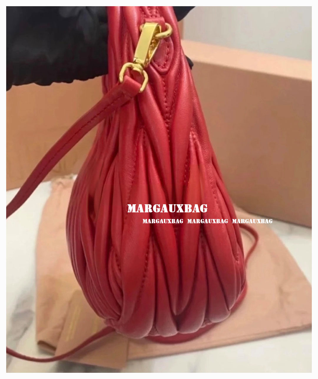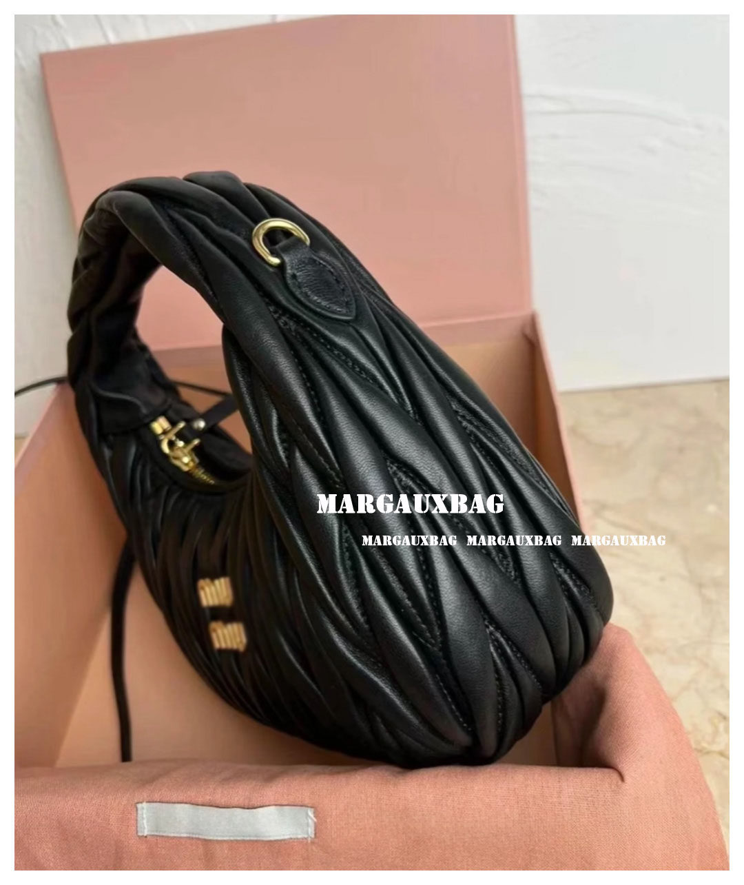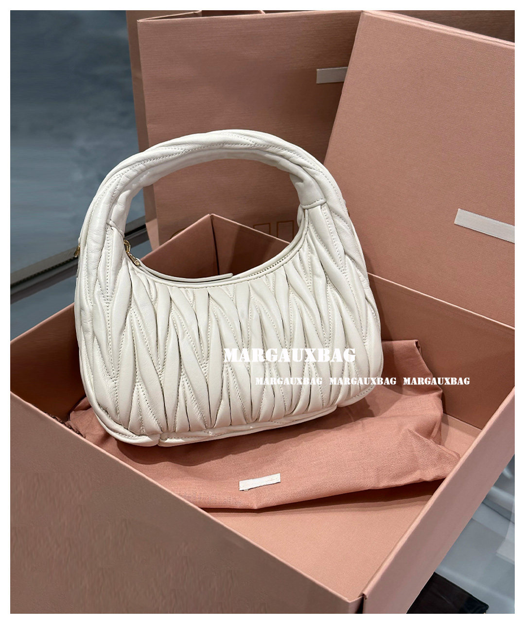 Miaojia Lambskin Pleated Hobo Handbag, Handbag, Crossbody Bag, Women's Bag, Small Wander Women's Bag