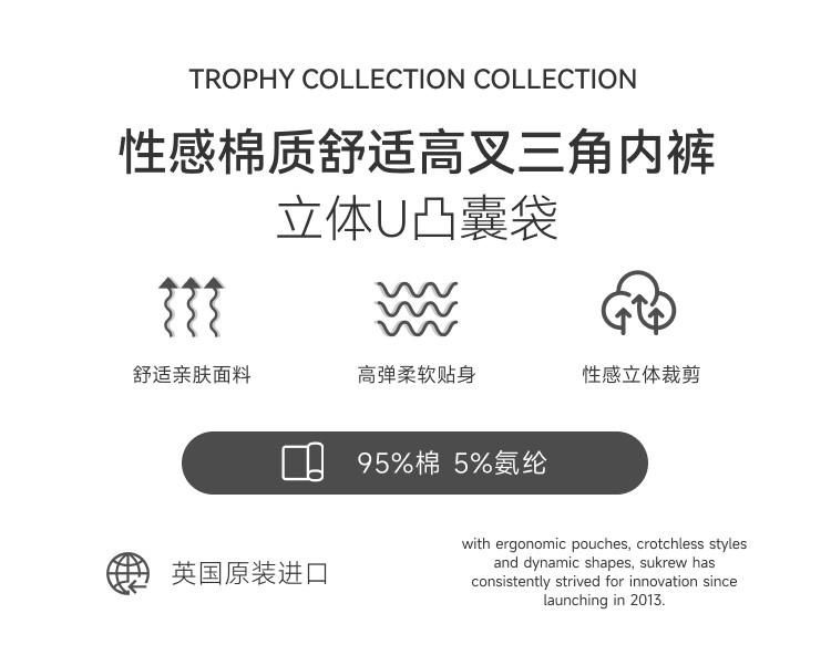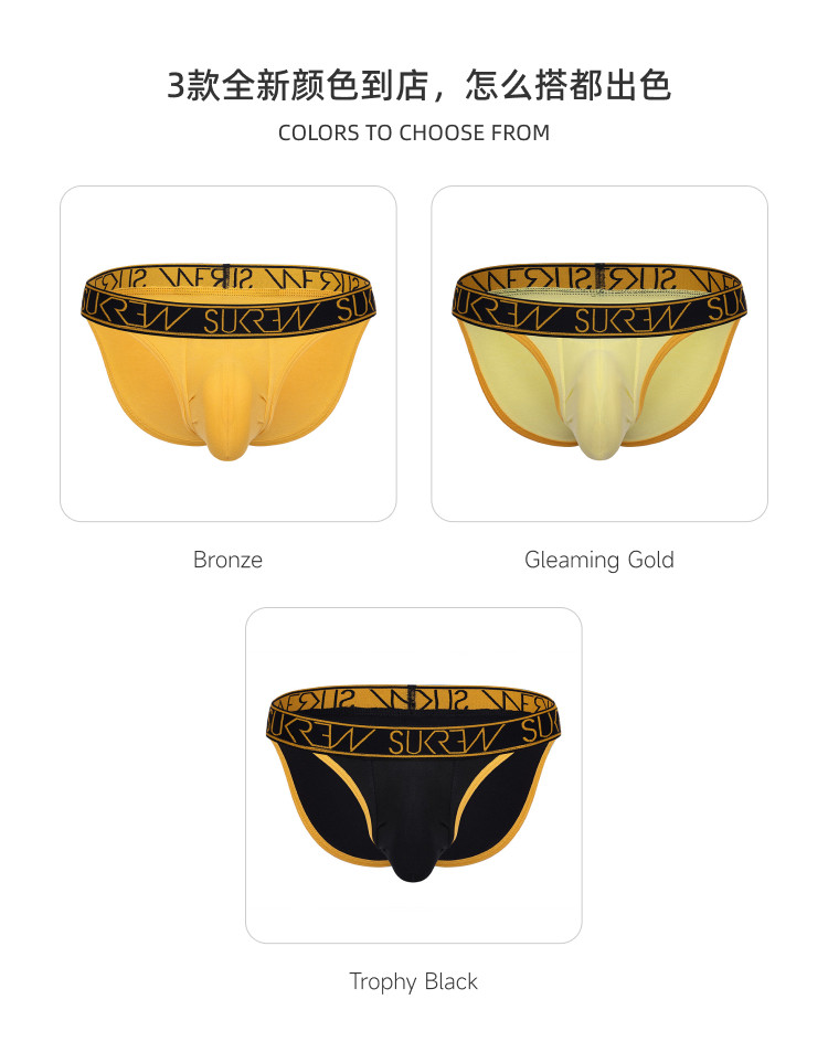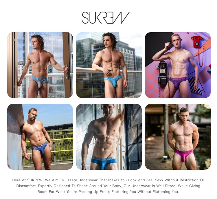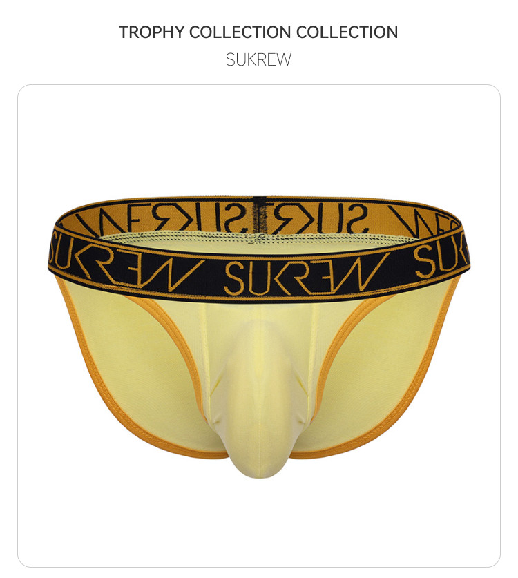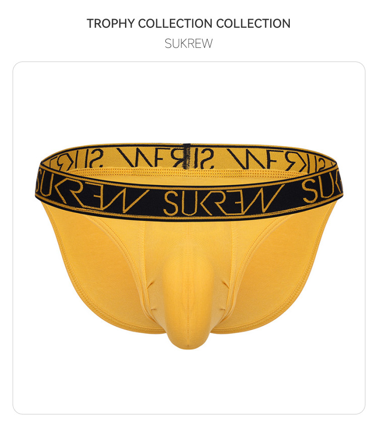Sukrew Sexy Men's Briefs with Three-Dimensional U-Convex Large Pouch, Cotton Breathable, High-Cut Sports Stg