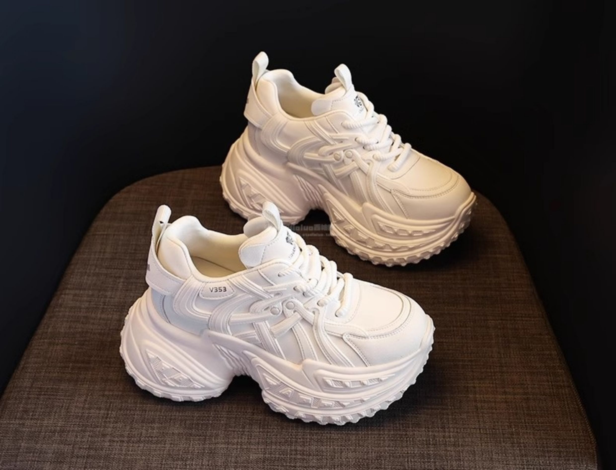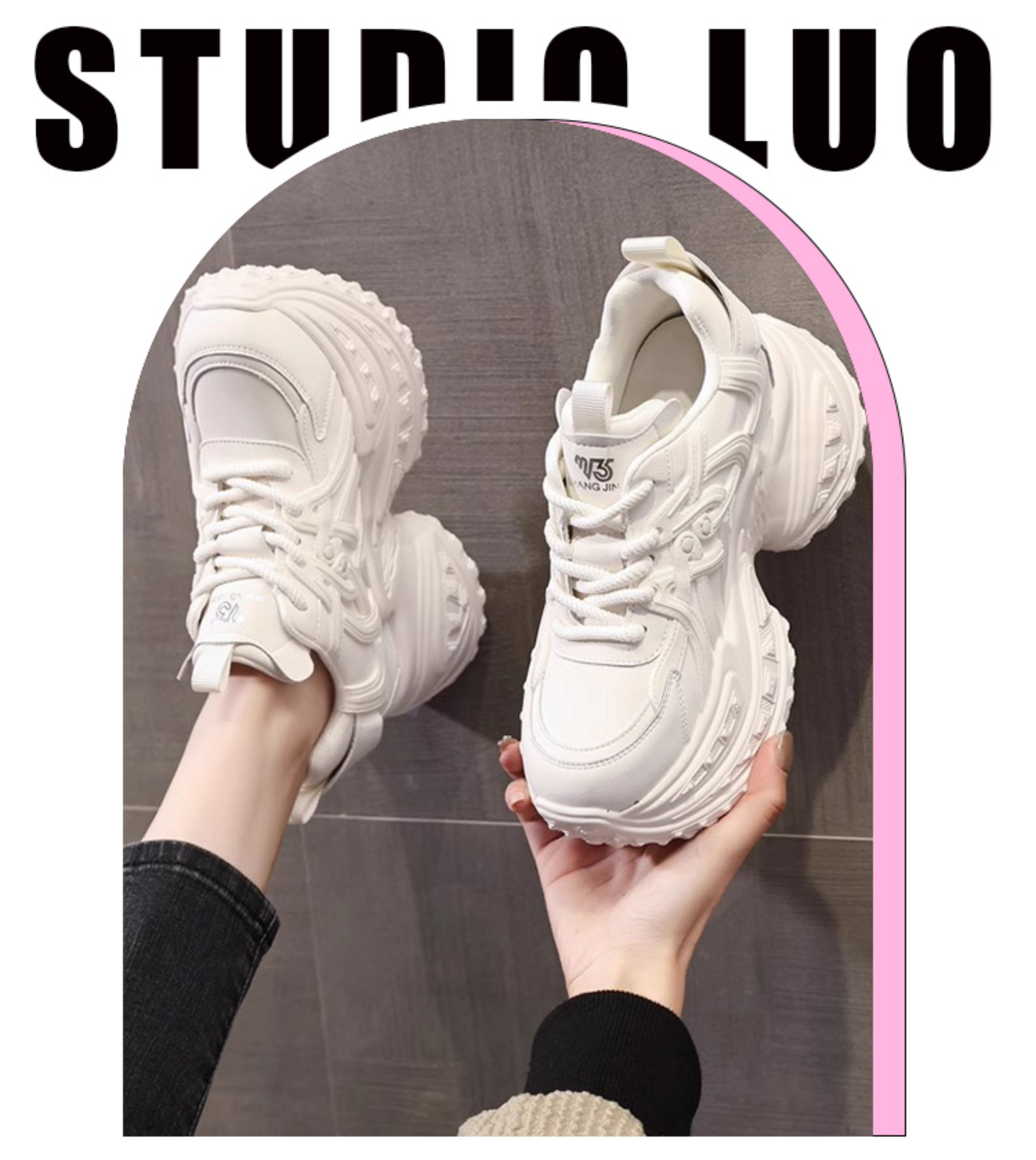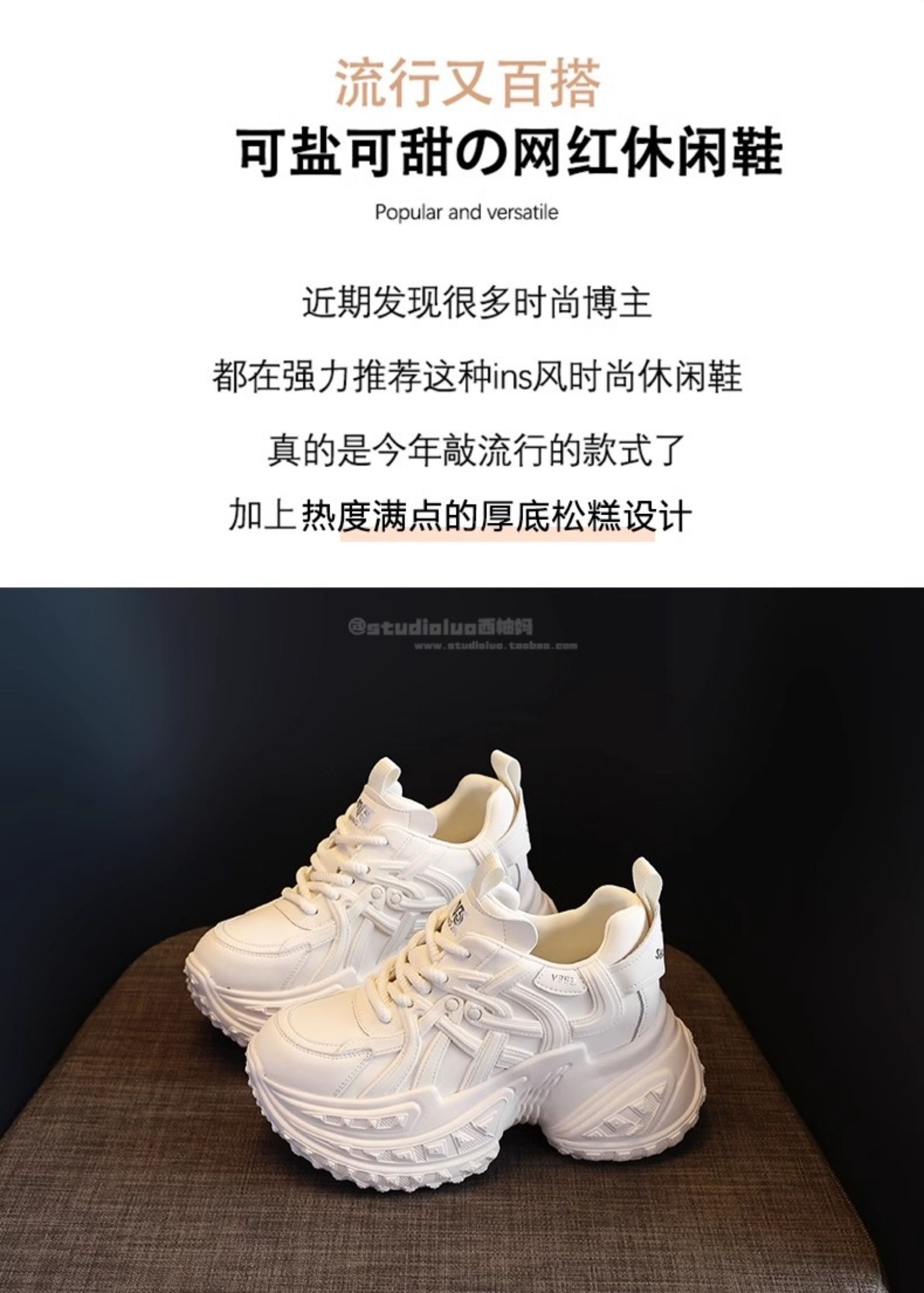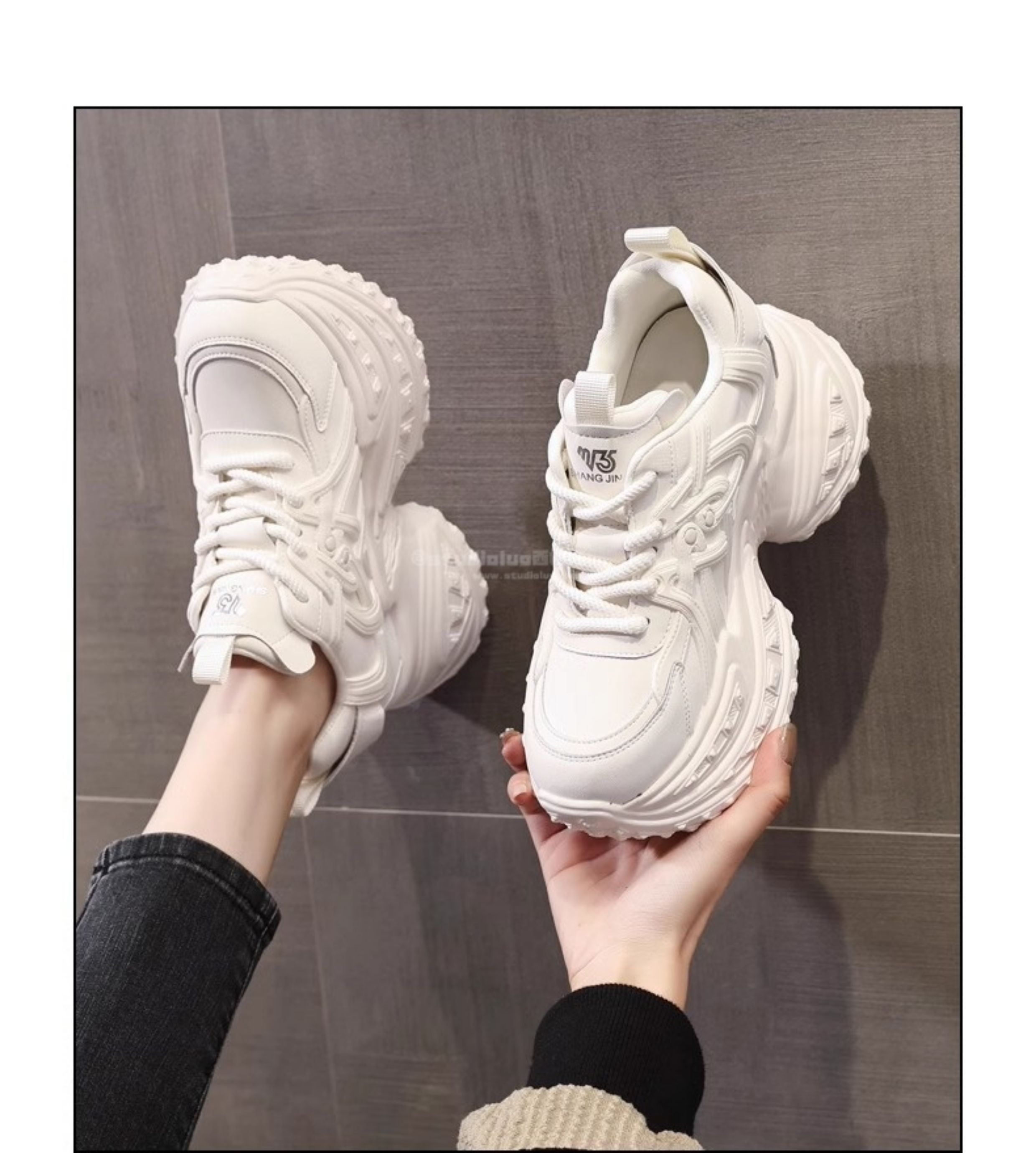 Hong Kong Style Height-Increasing Fashion Dad Sneakers for Women 2025 Spring and Autumn Versatile White Shoes Thick-Soled Casual Sports Shoes for Petite Individuals