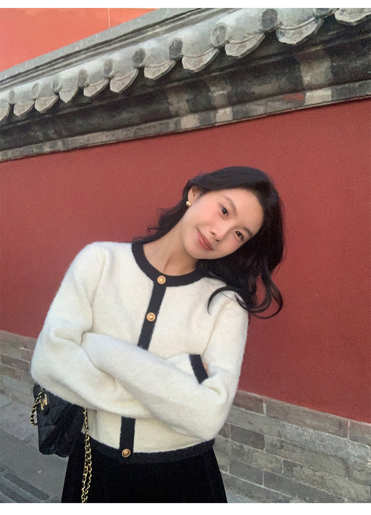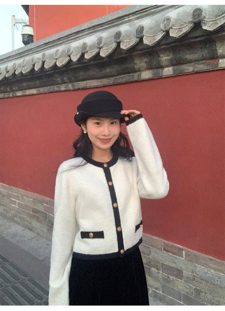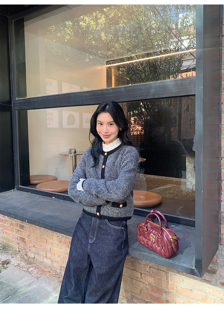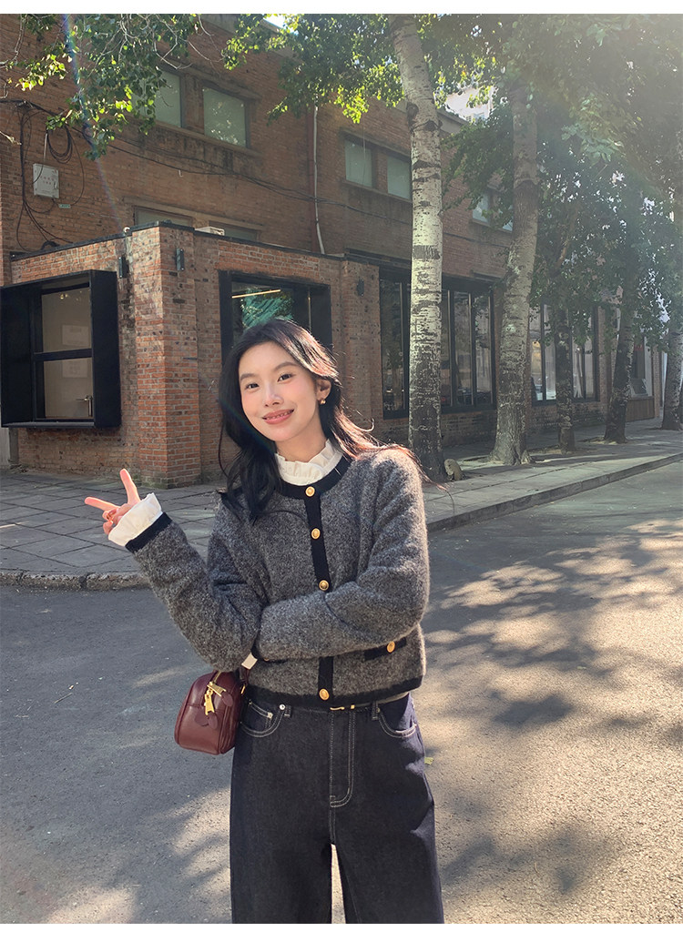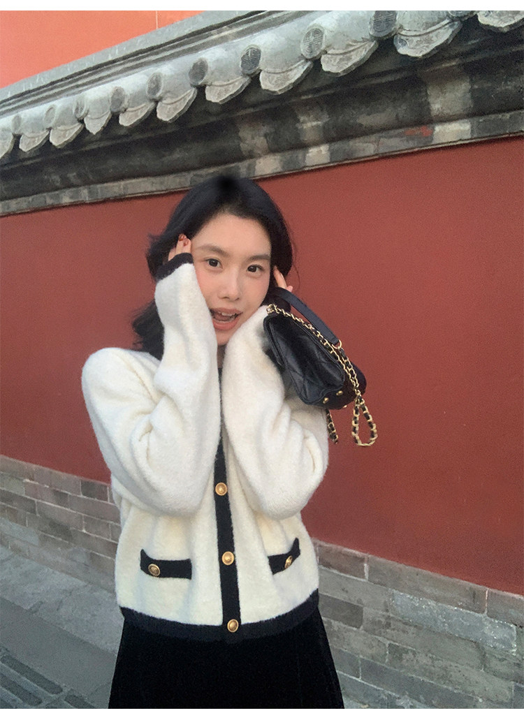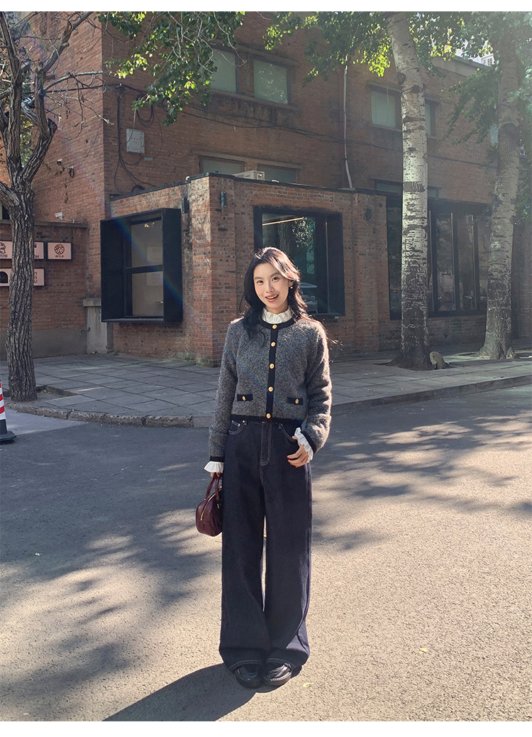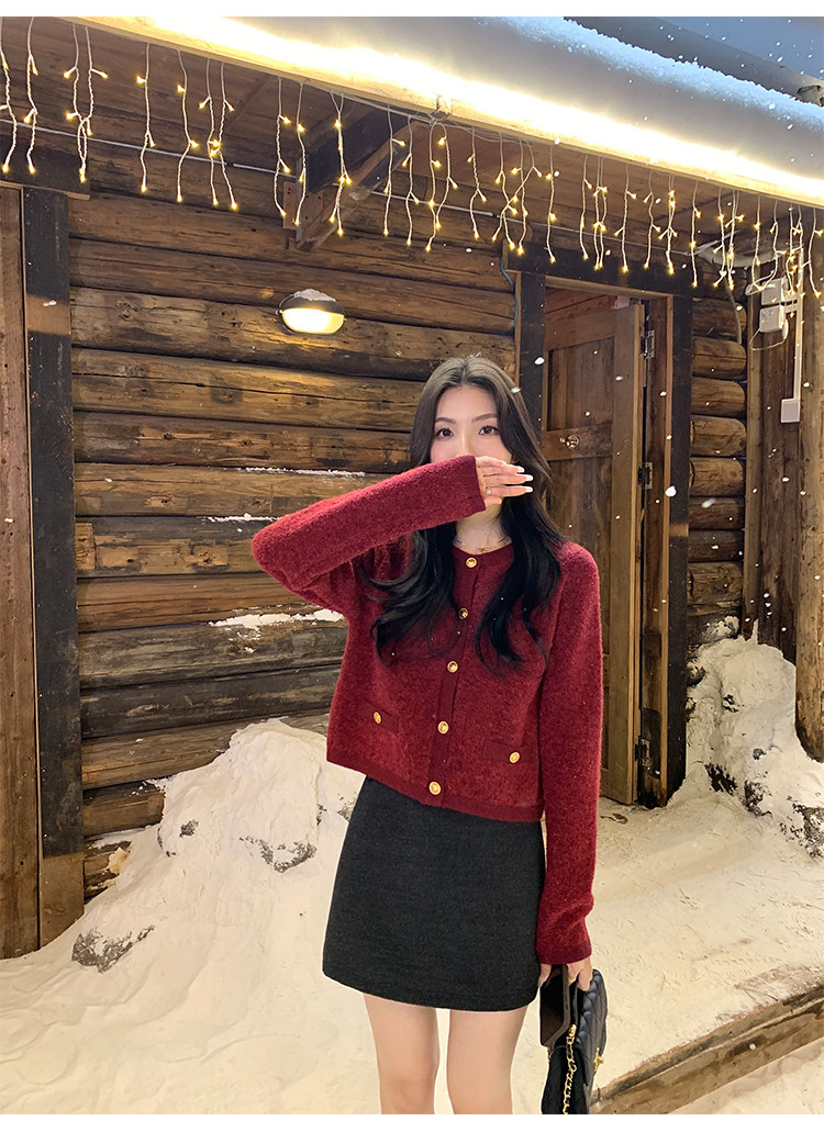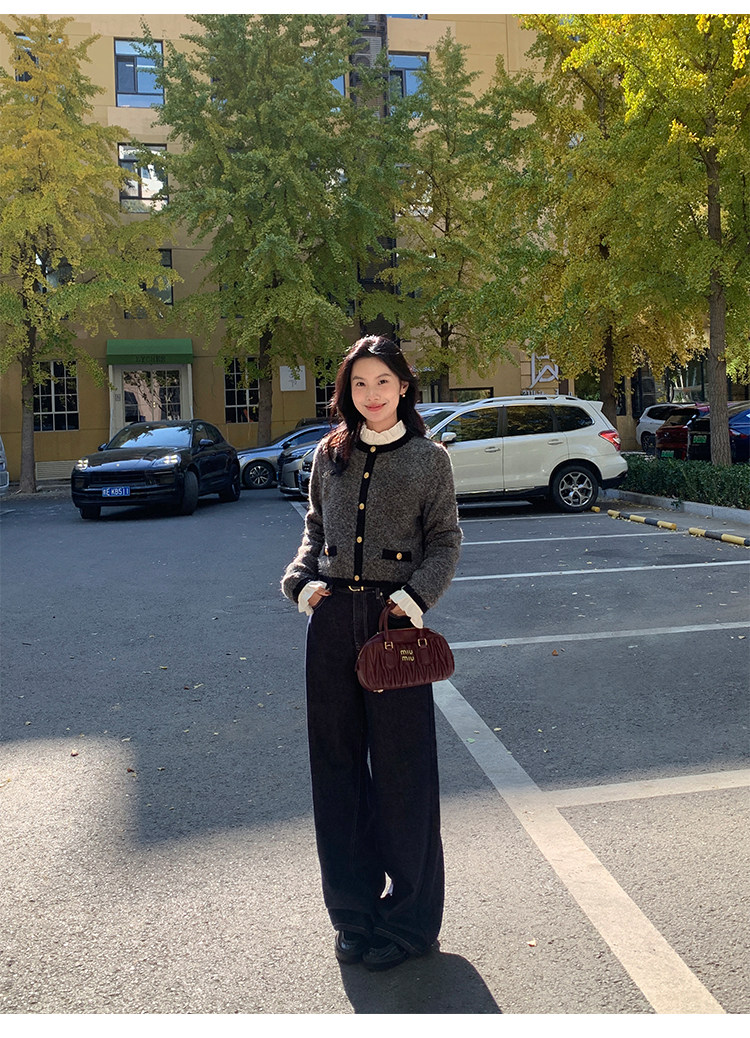 Mulvan Short Tweed-Style Sweater Jacket for Women, Autumn and Winter, Regular Shoulder, Slimming Design, Wool Knit Cardigan Top