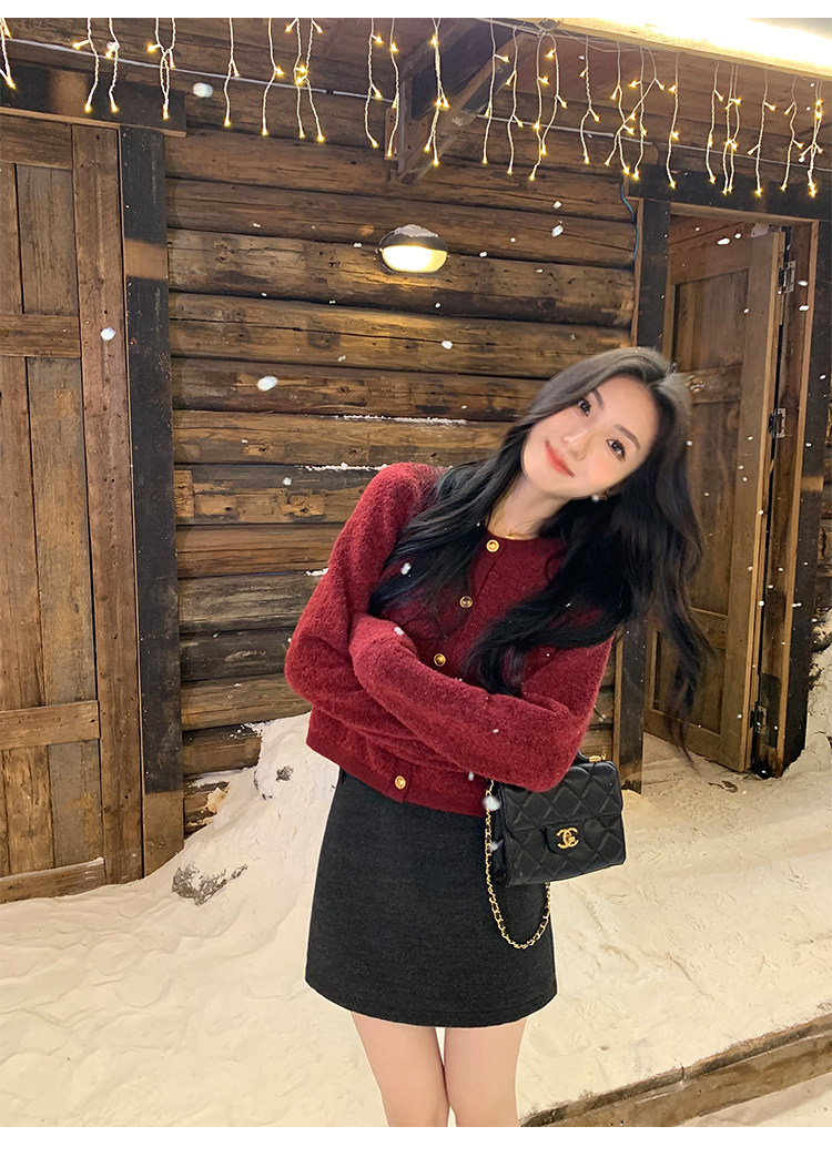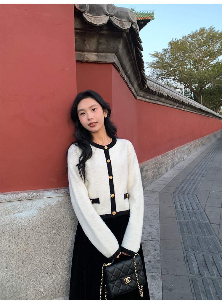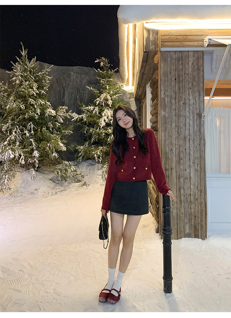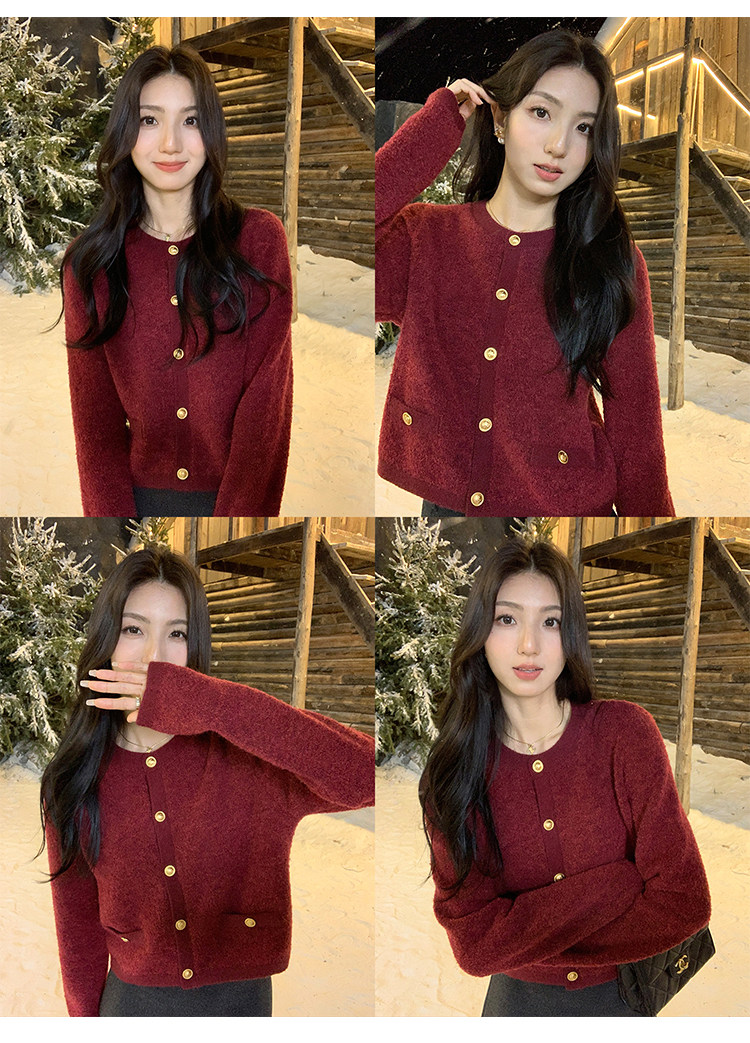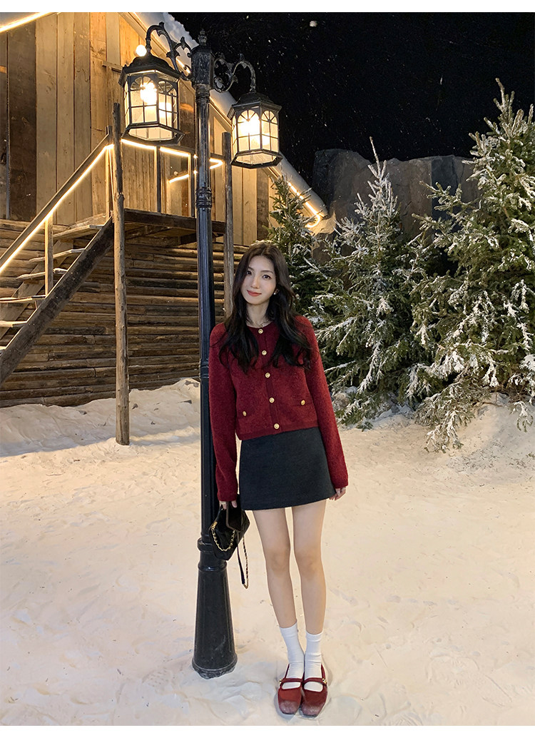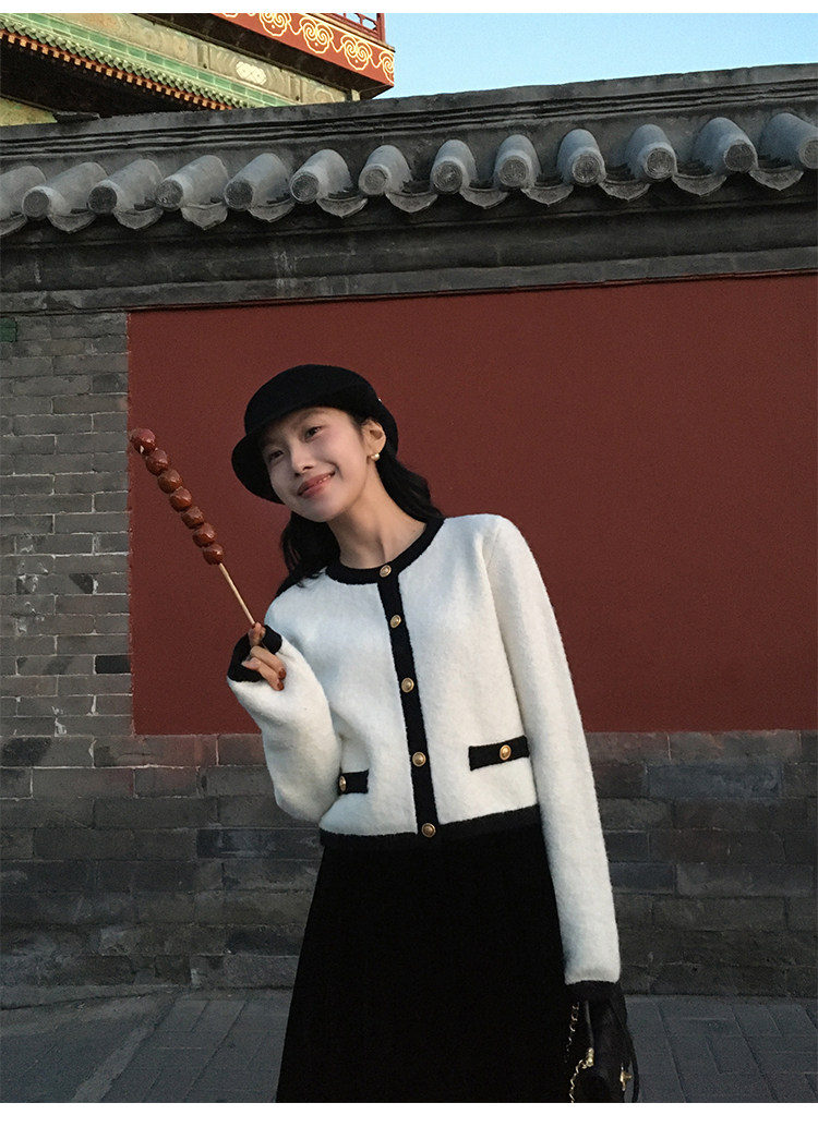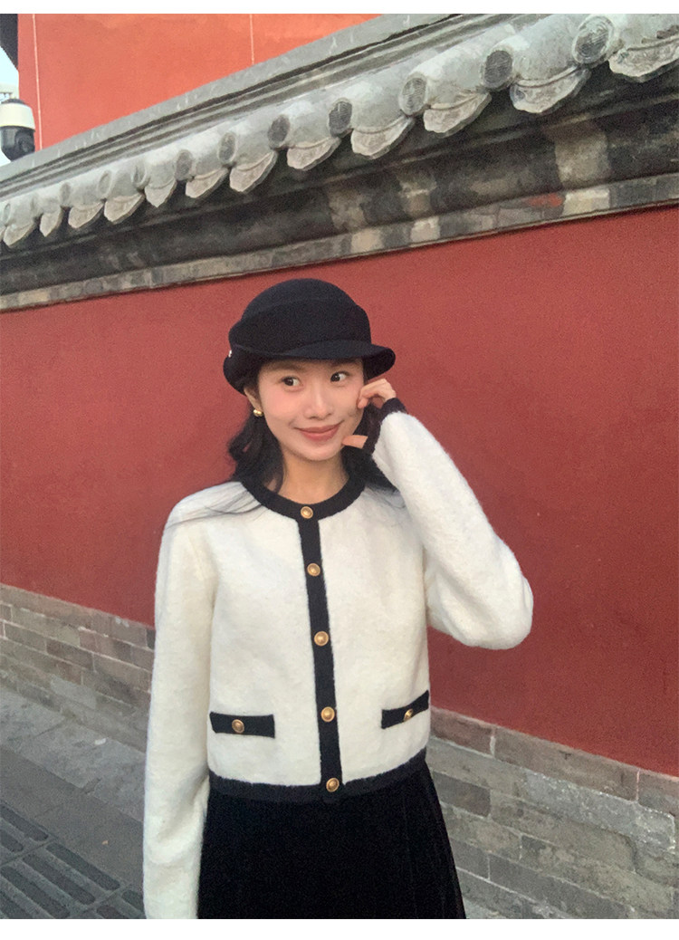 Mulvan Short Tweed-Style Sweater Jacket for Women, Autumn and Winter, Regular Shoulder, Slimming Design, Wool Knit Cardigan Top