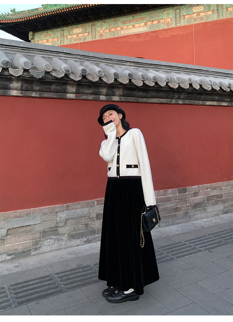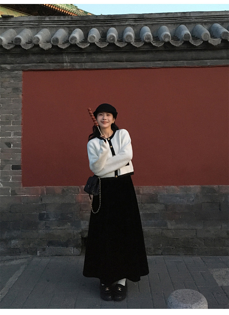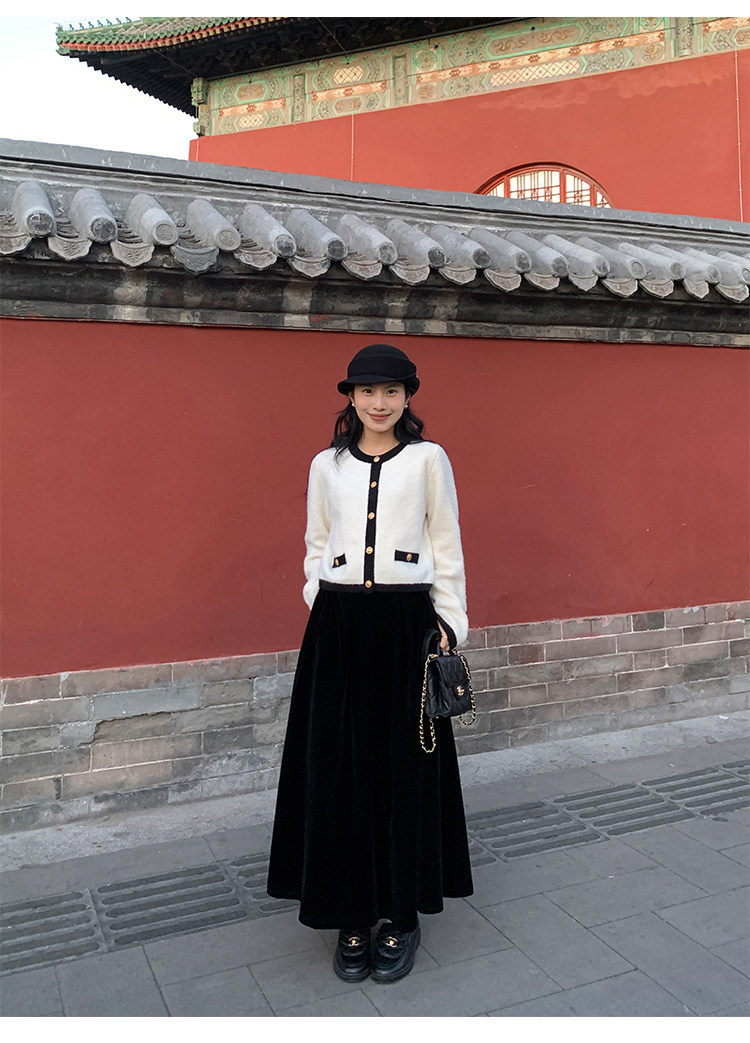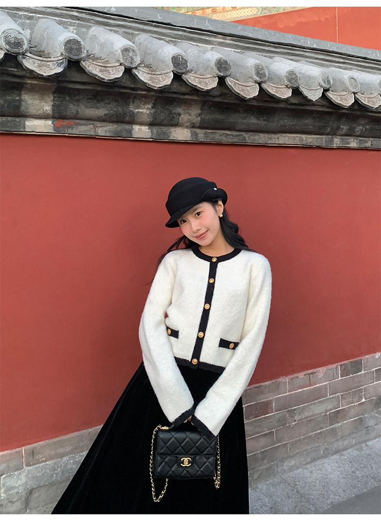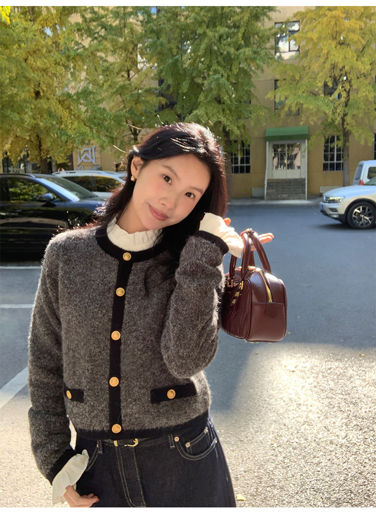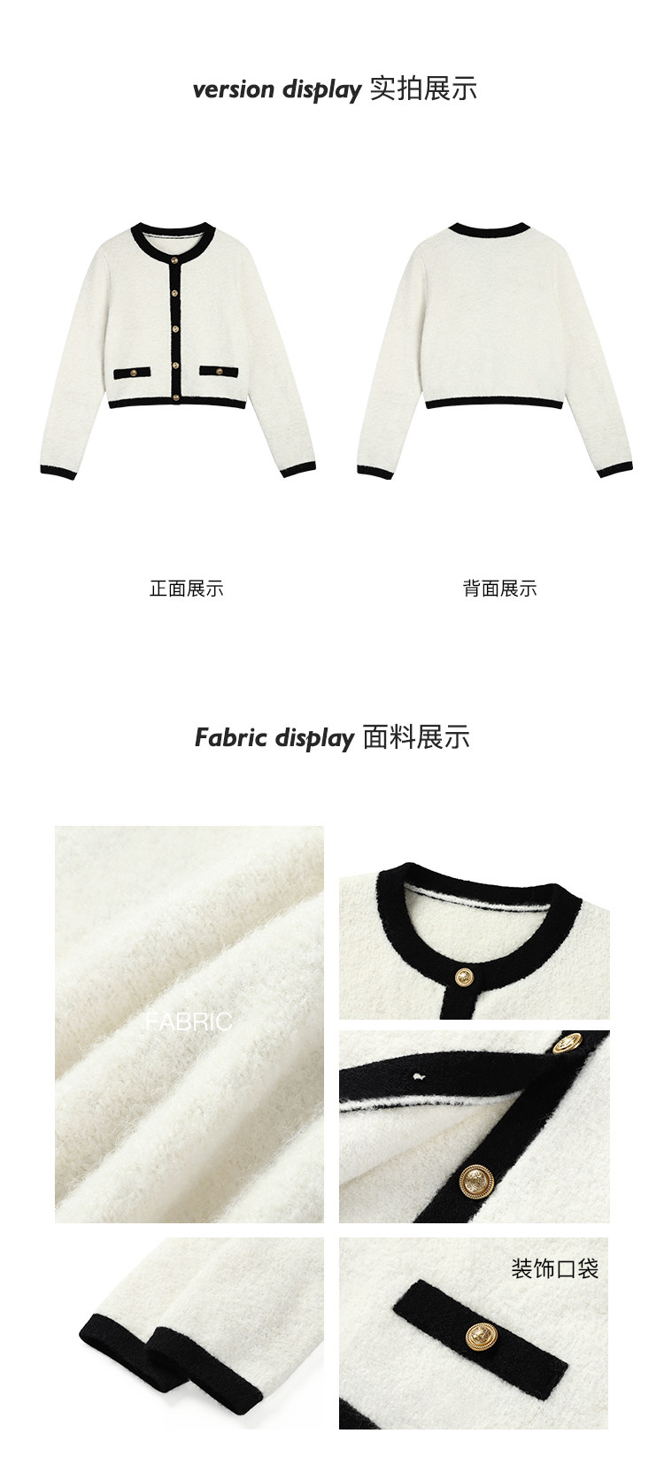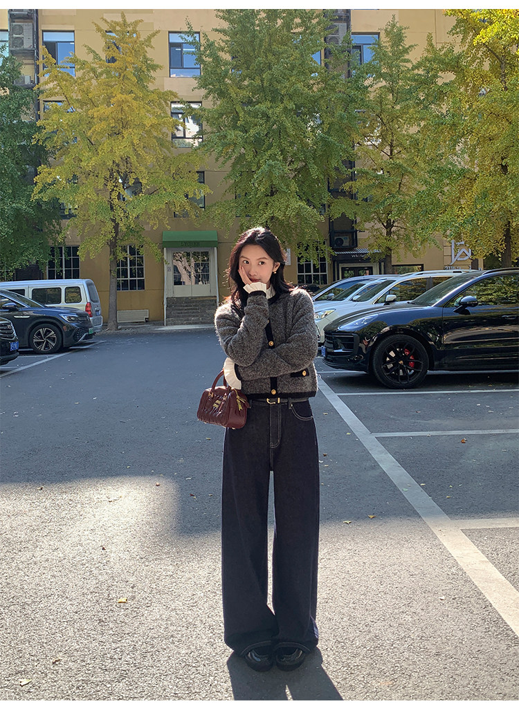 Mulvan Short Tweed-Style Sweater Jacket for Women, Autumn and Winter, Regular Shoulder, Slimming Design, Wool Knit Cardigan Top