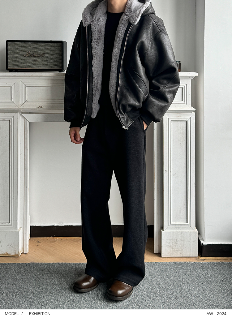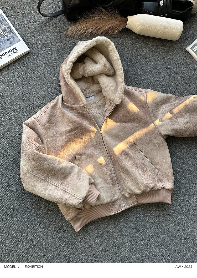 Deserto Frost Cracked Leather 1500g Imitation Mink Fur Coat with Hood for Winter, Pu Leather Jacket