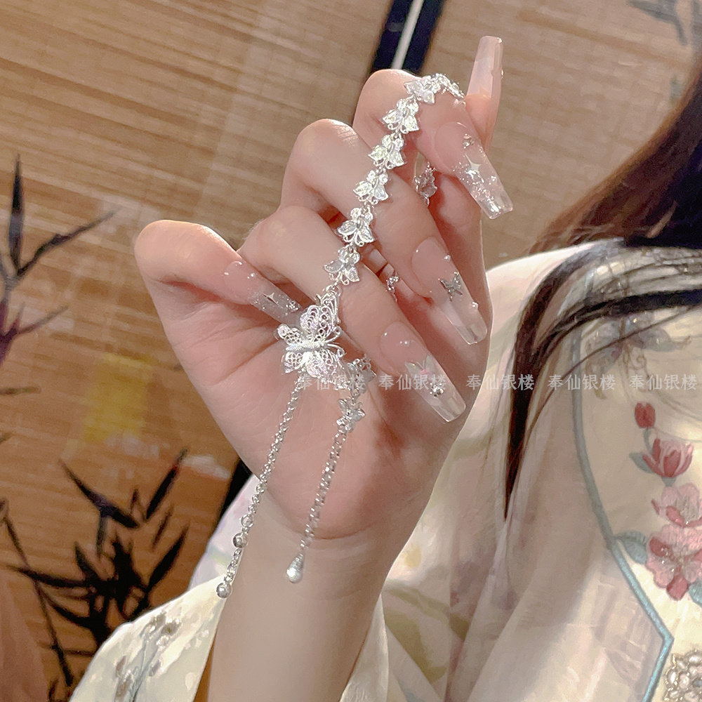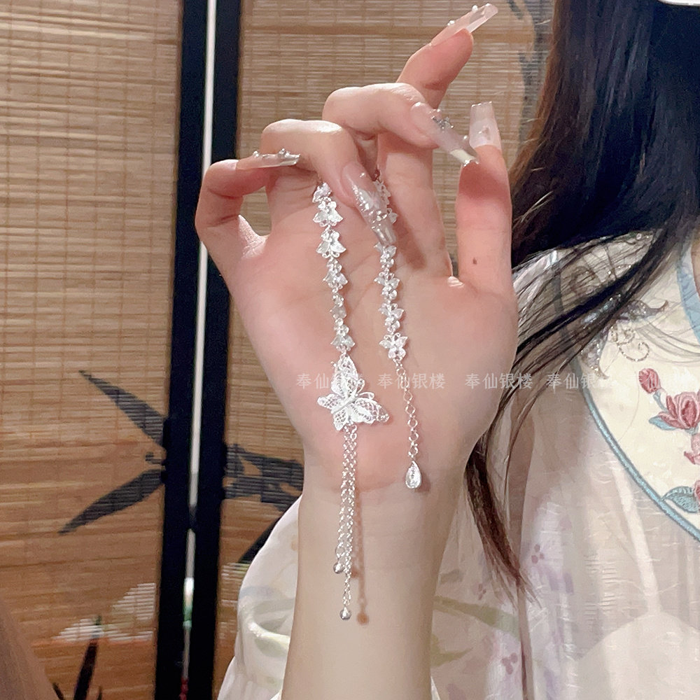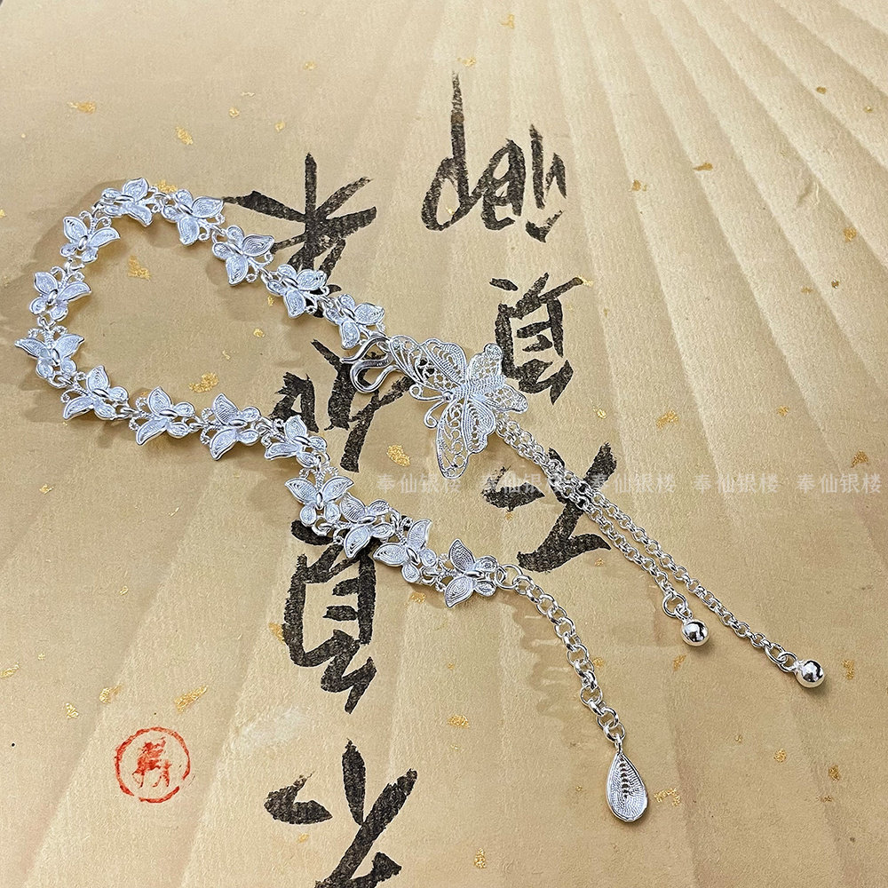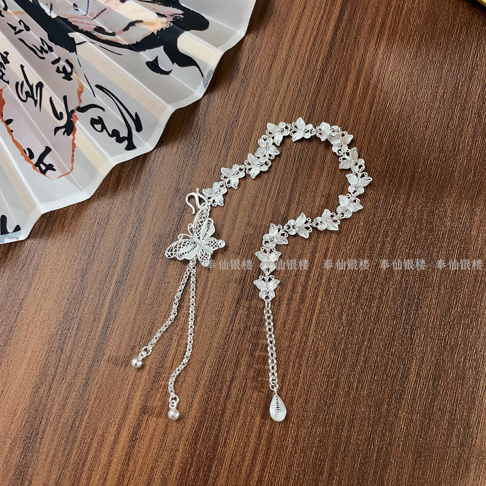 Silver Butterfly Bracelet for Women, Pure Silver, New Chinese Style, Antique Silver Jewelry, Gift for Girlfriend, Holiday Gift