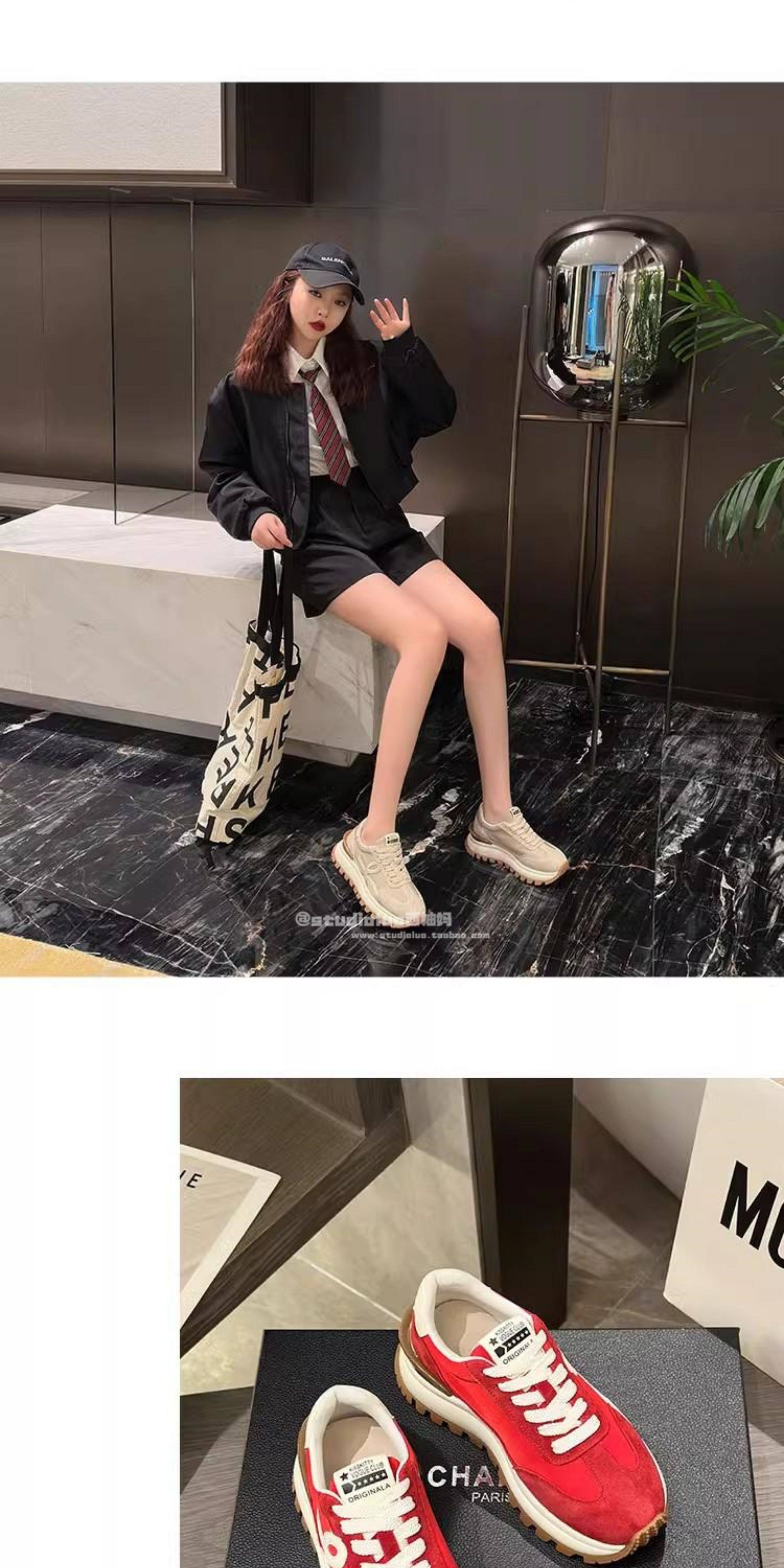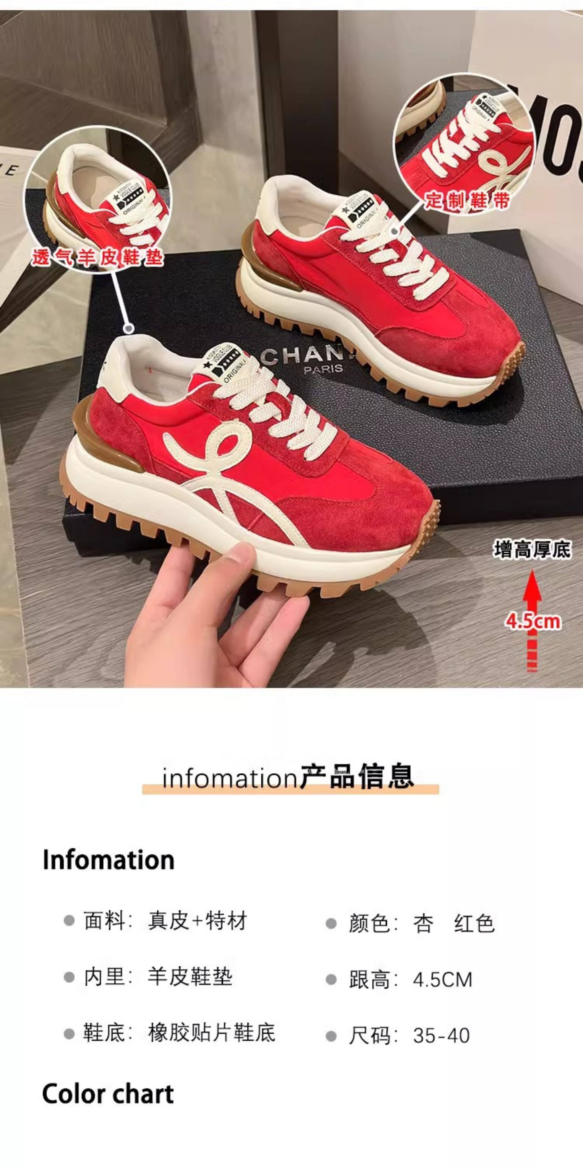 Hong Kong Waffle Agan Shoes for Women New Year Red 2025 Spring and Autumn New Style Airplane Toe Non-Slip Thick-Soled Fashion Casual Shoes