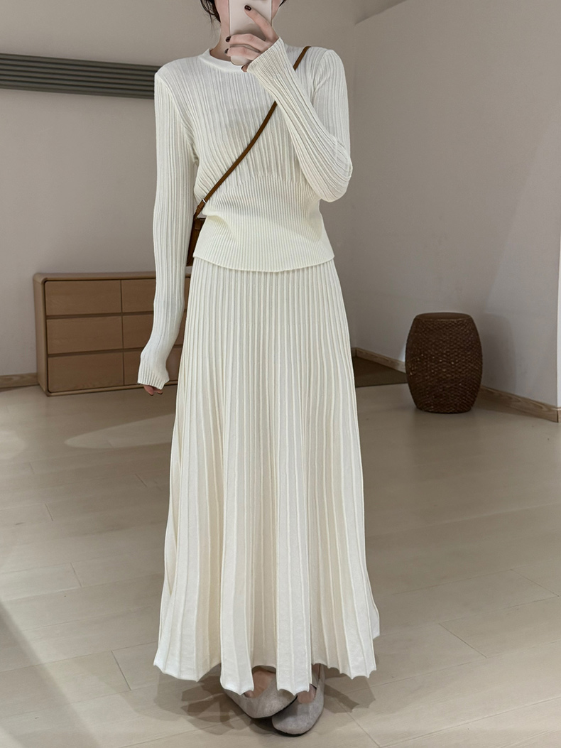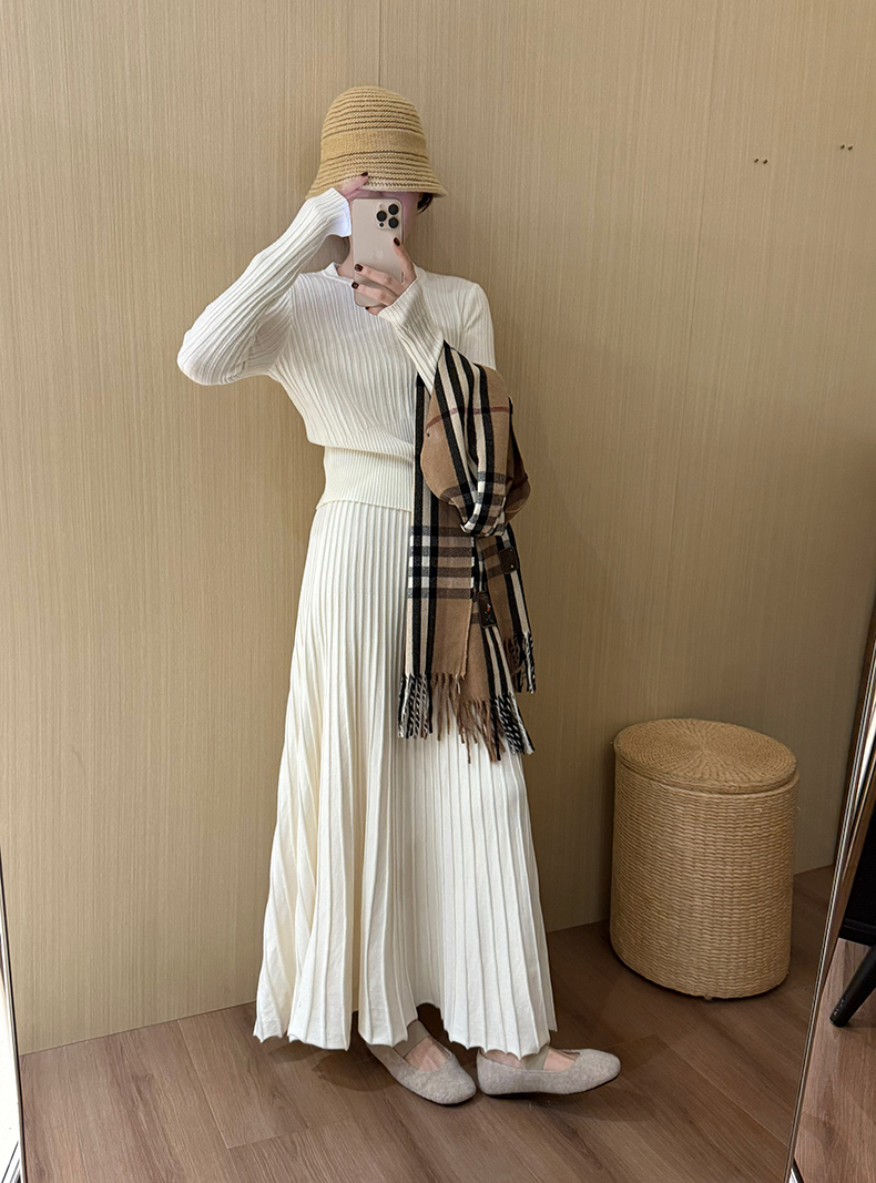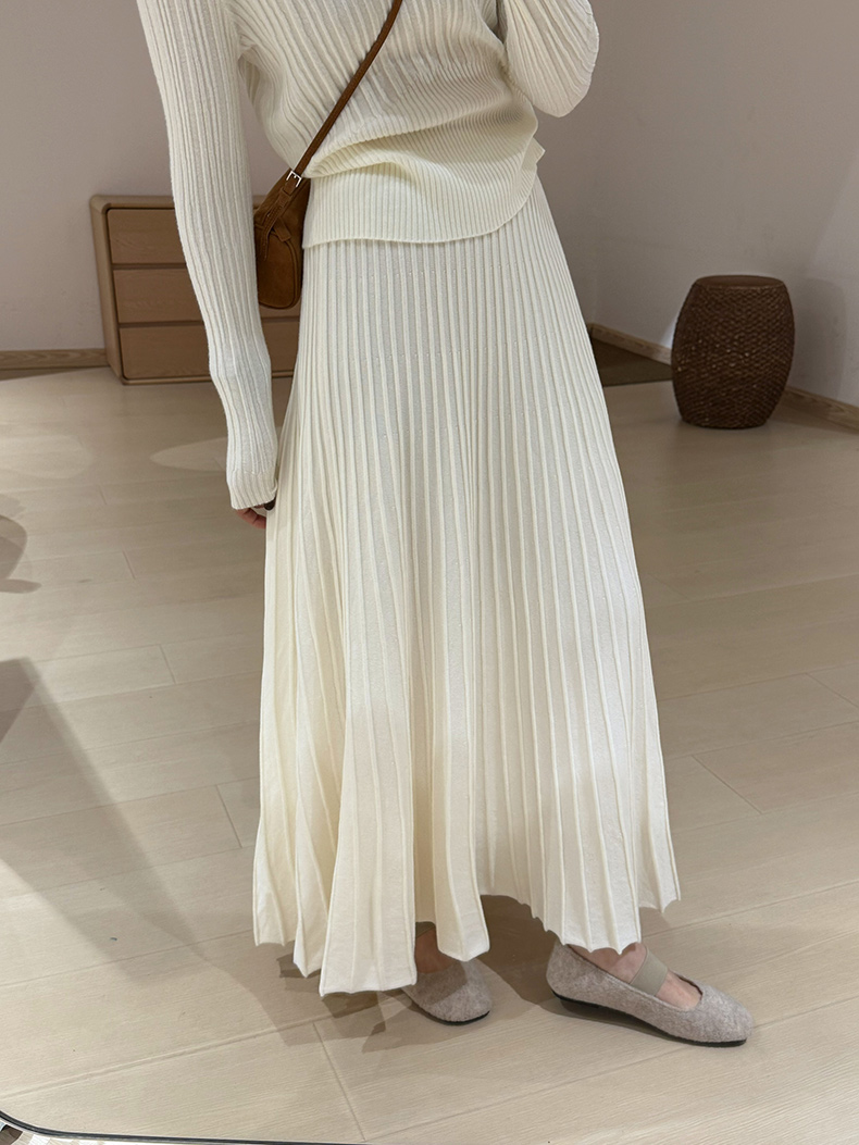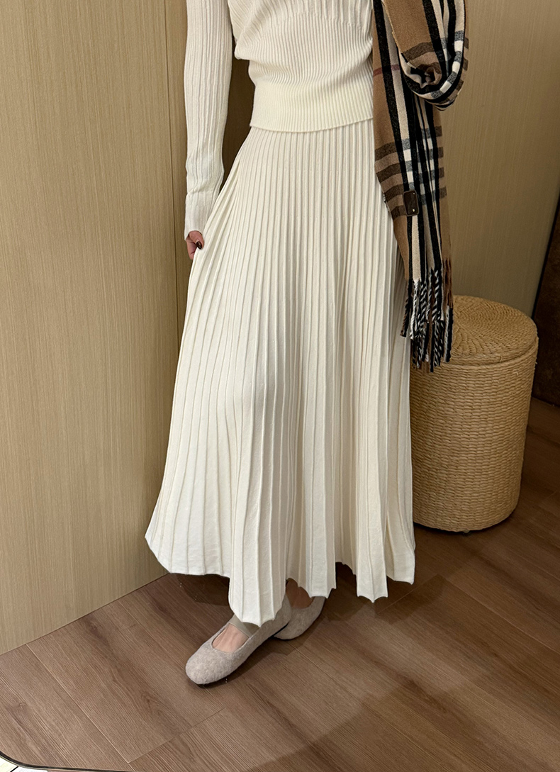 High-Waisted Slimming Cashmere Thickened Pleated Skirt 2025 Autumn New Korean Style Versatile Casual Ladylike Umbrella Skirt