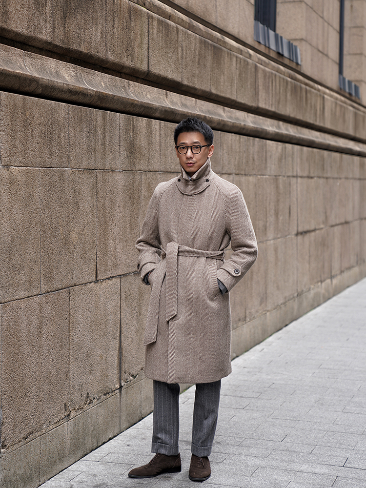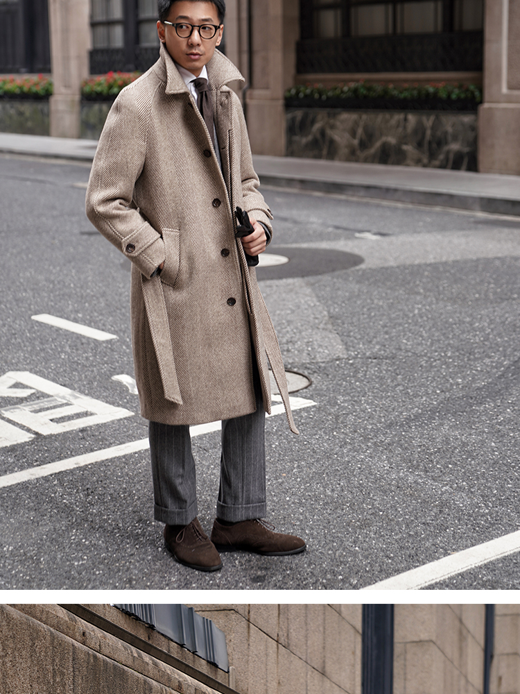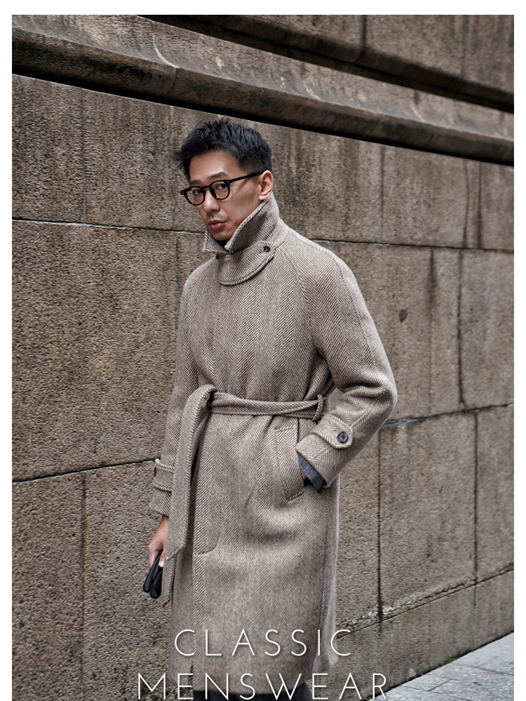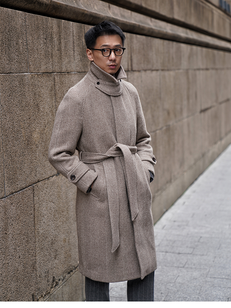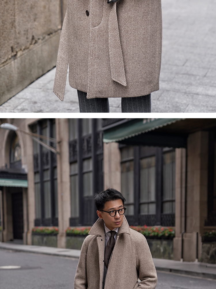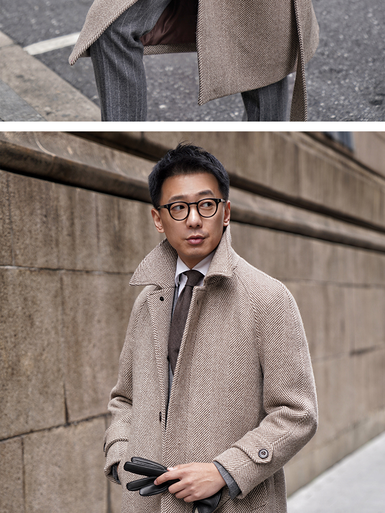 Cm Naples Queen Light Camel Herringbone Wool Alpaca Blend Balmacon Coat 251