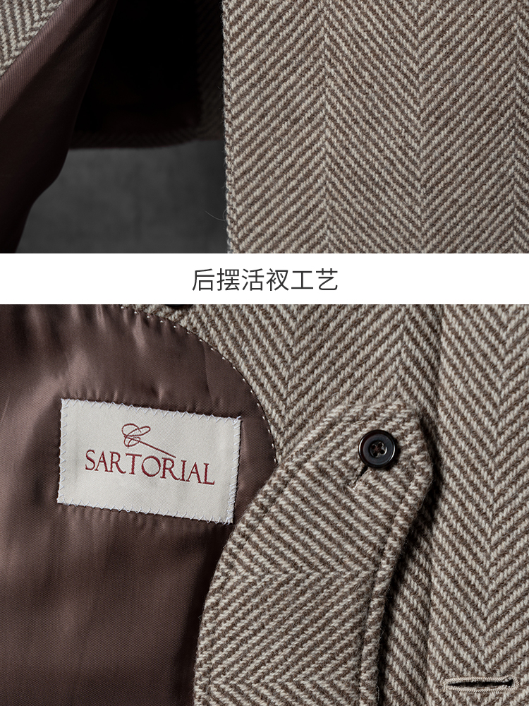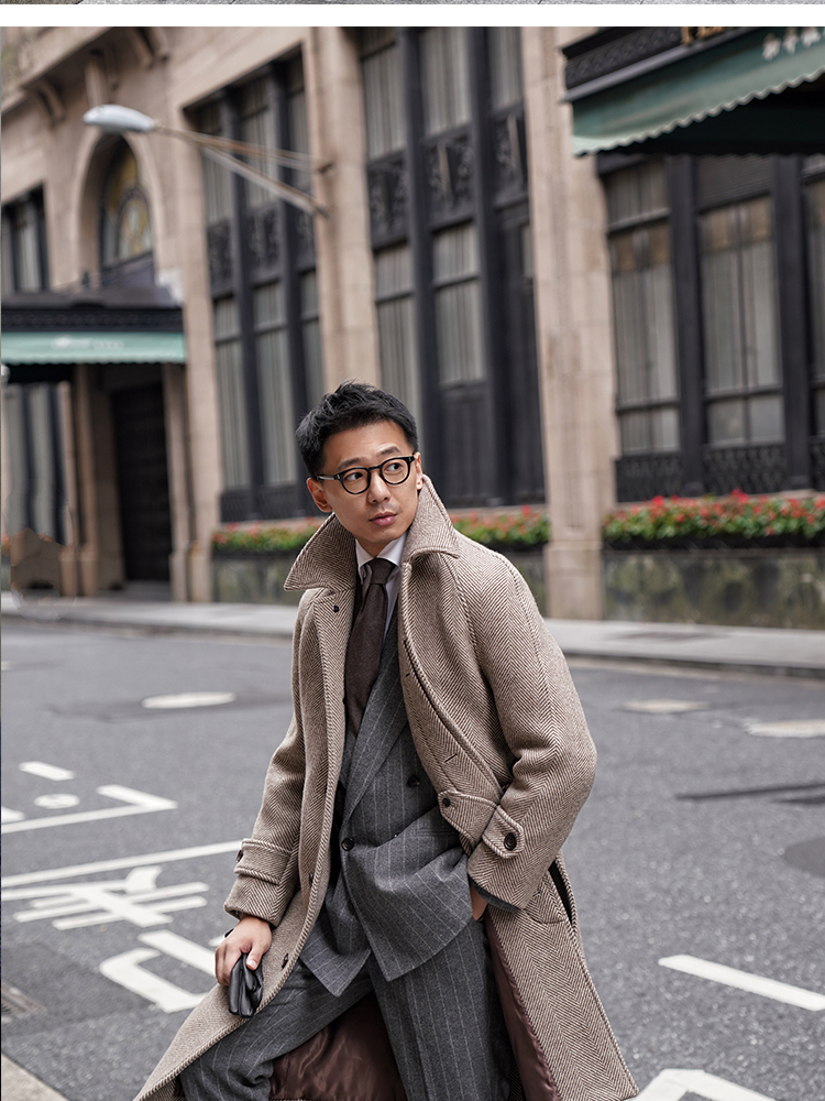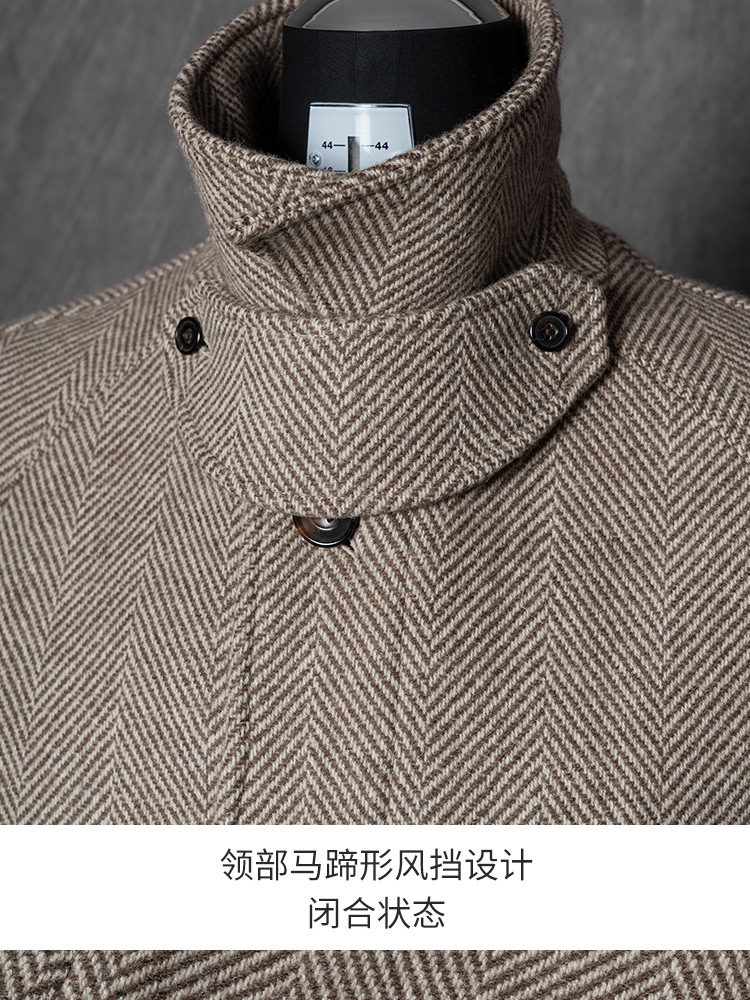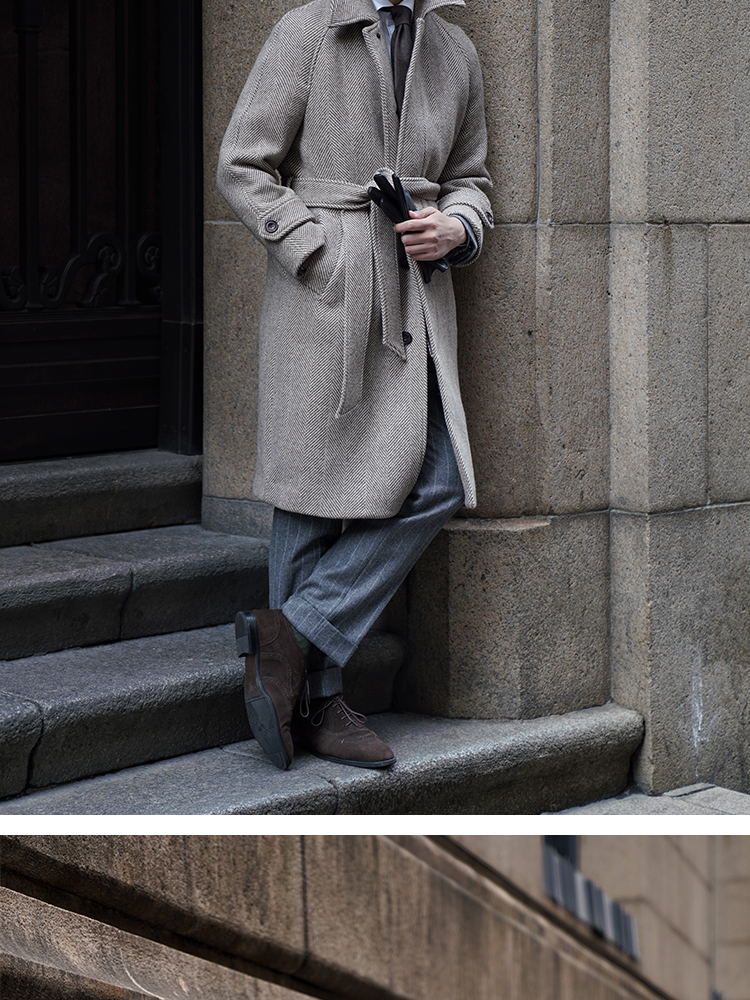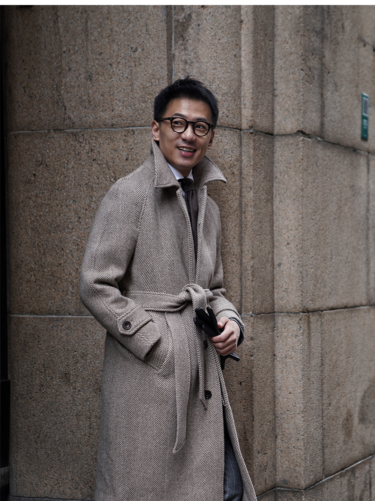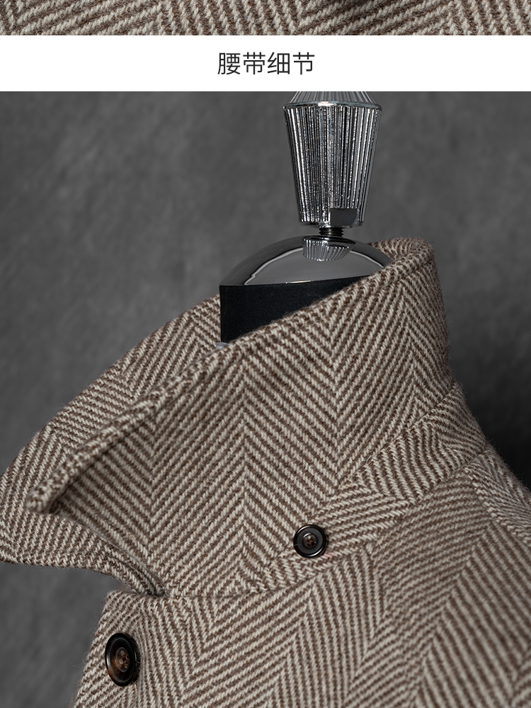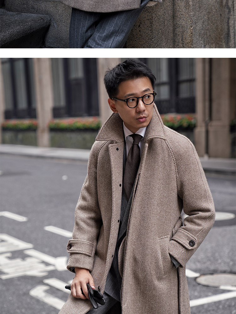 Cm Naples Queen Light Camel Herringbone Wool Alpaca Blend Balmacon Coat 251