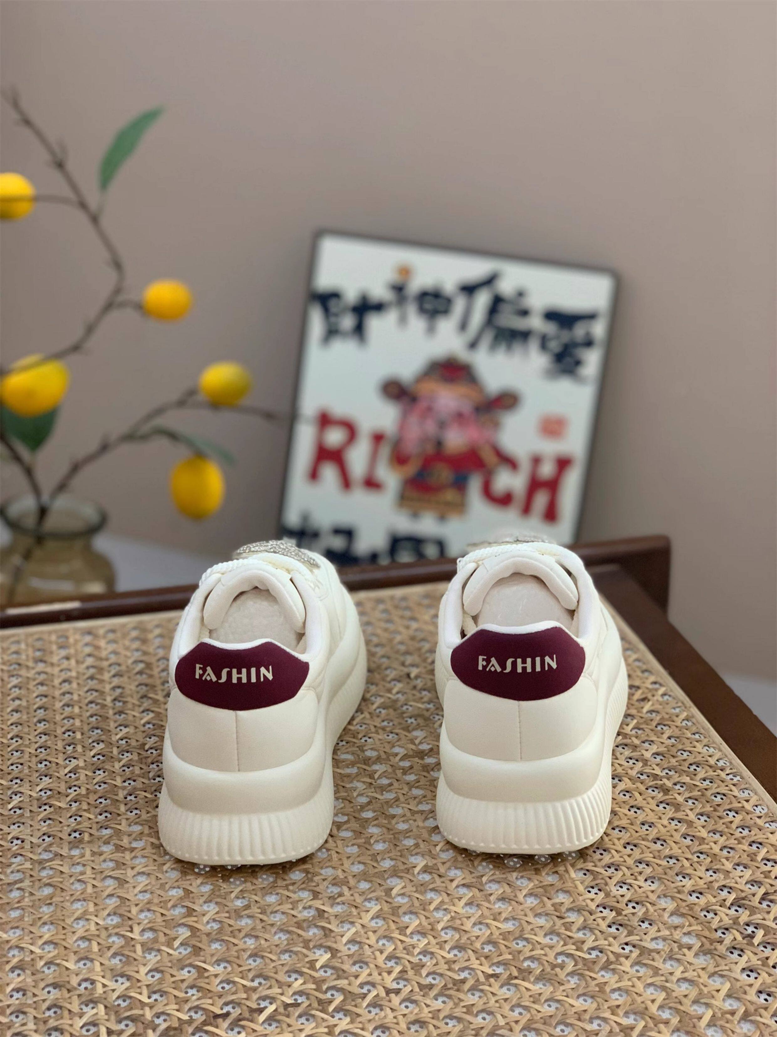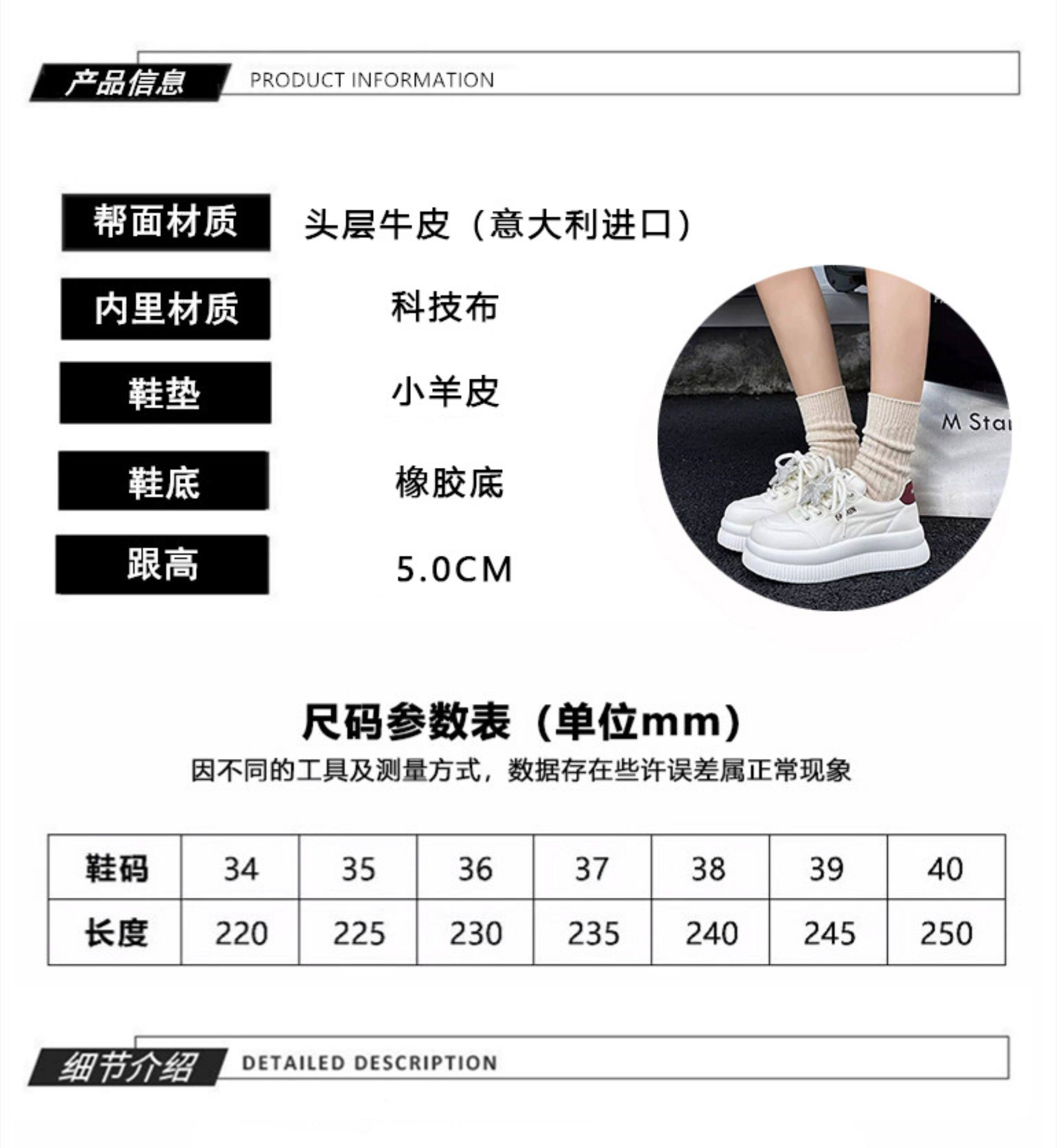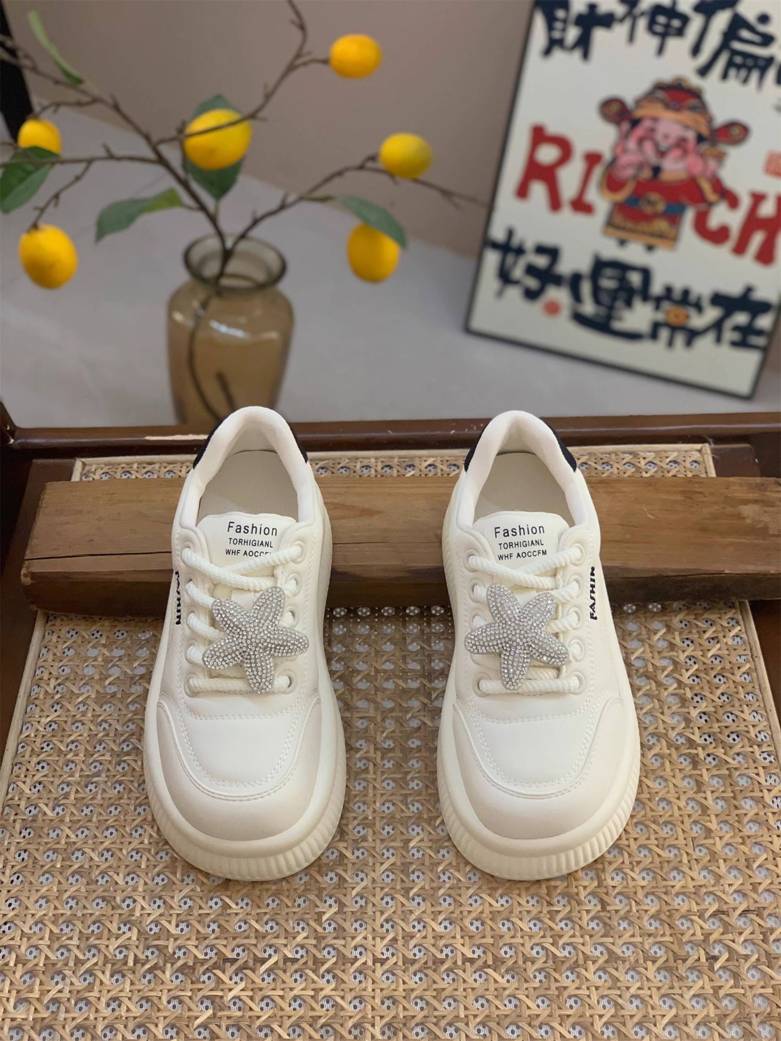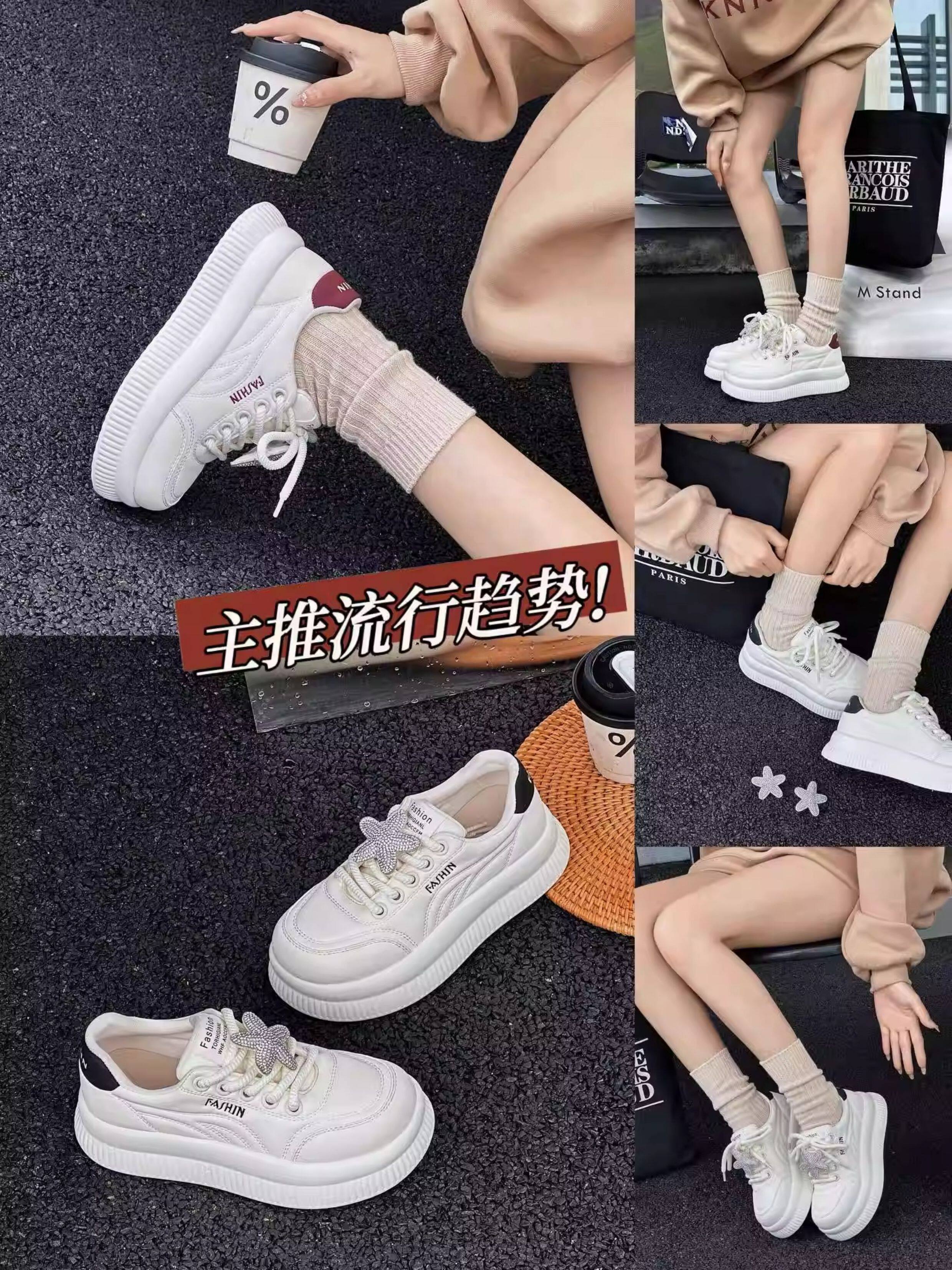 Hong Kong Genuine Leather Thick-Soled Height-Increasing White Sneakers for Women, 2026 Spring New Style, Star-Pattern Platform Shoes, Versatile Lace-Up Loafers