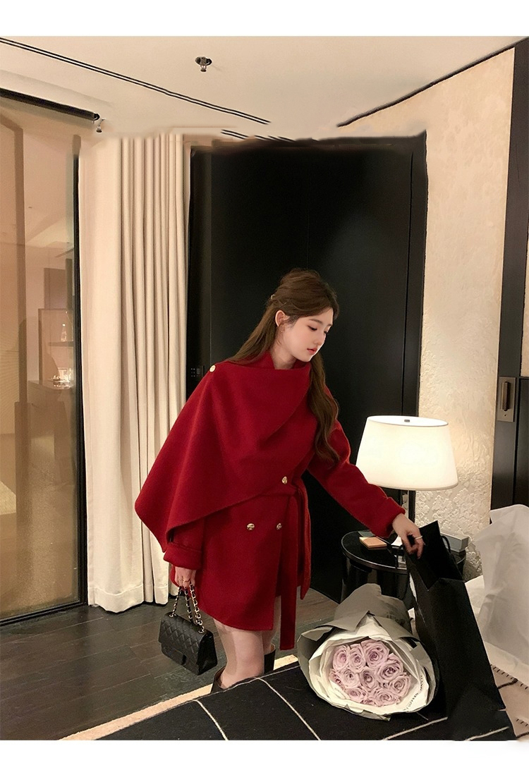 Winter Outfit with a High-End Feel: Large Shawl, Scarf, Cape, Woolen Coat, Gentle Korean Style, Elegant Woolen Jacket