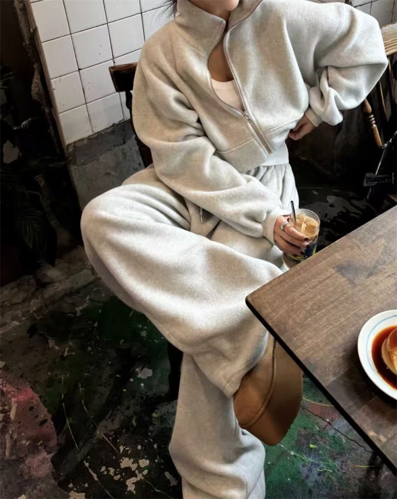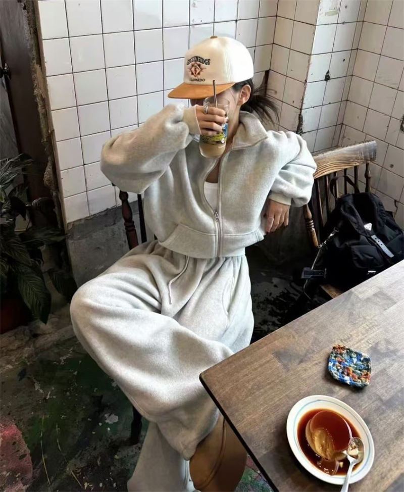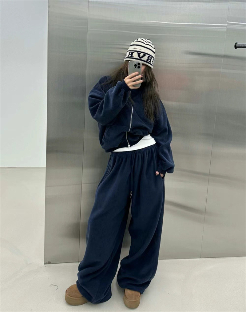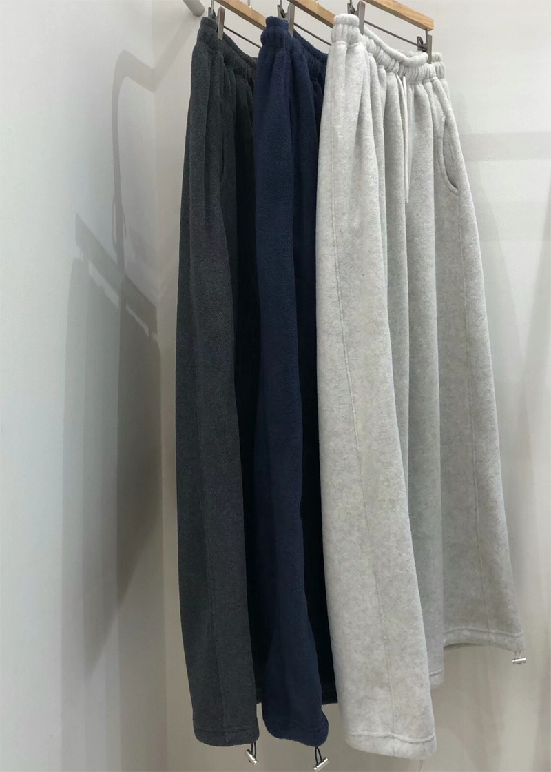 Korean Order 2025 Winter ins Fleece-Lined Thick Loose Wide-Leg Pants Extra-Long Milk Gray Furry Sweatpants Baggy Pants