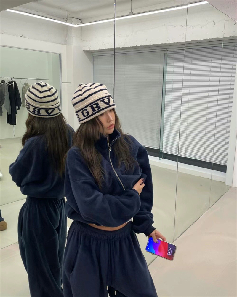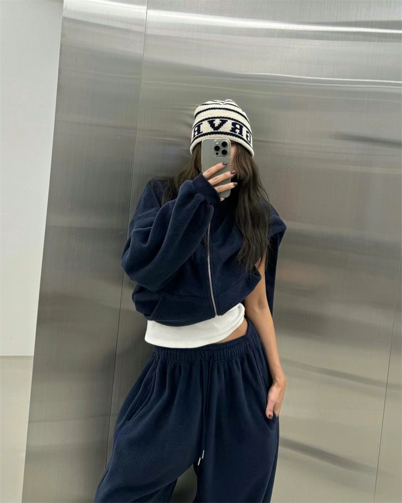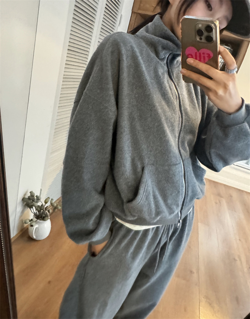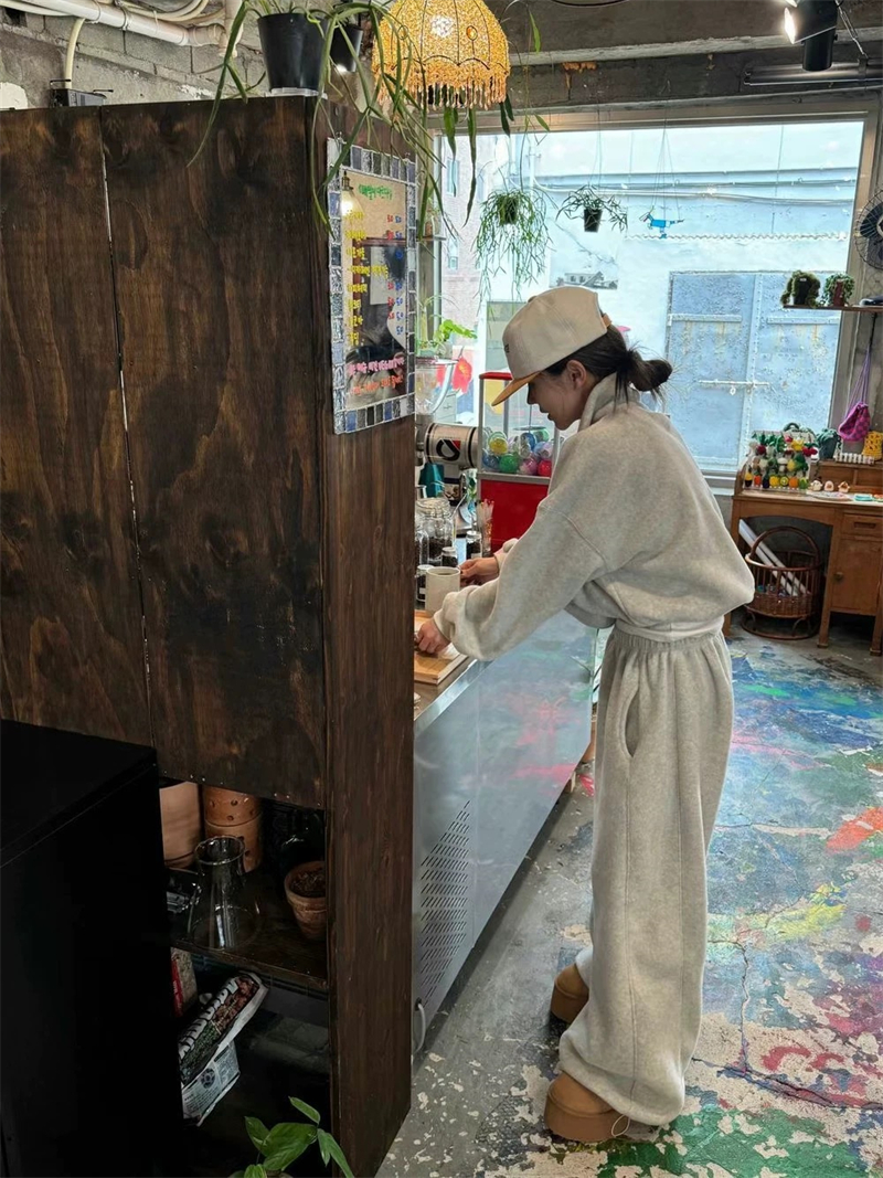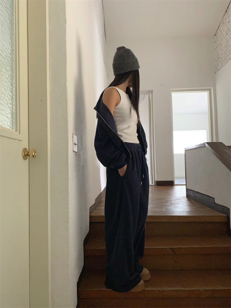 Korean Order 2025 Winter ins Fleece-Lined Thick Loose Wide-Leg Pants Extra-Long Milk Gray Furry Sweatpants Baggy Pants