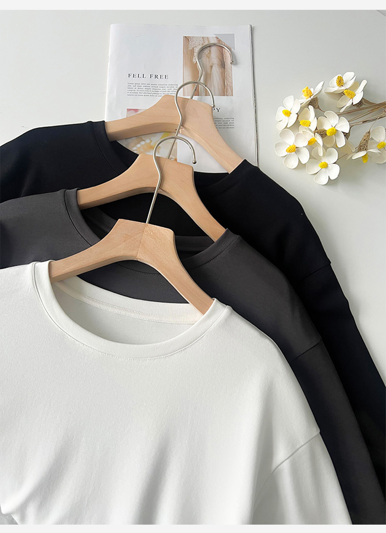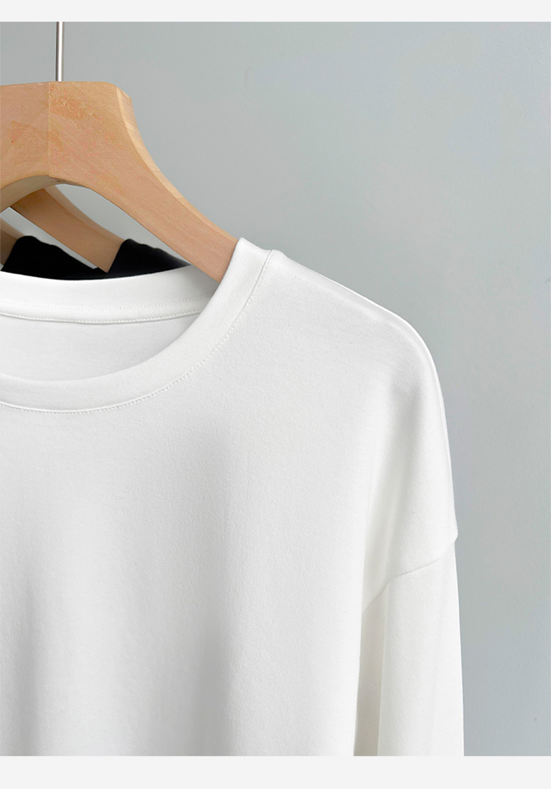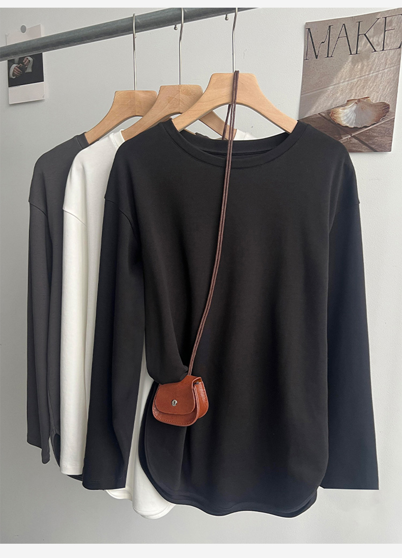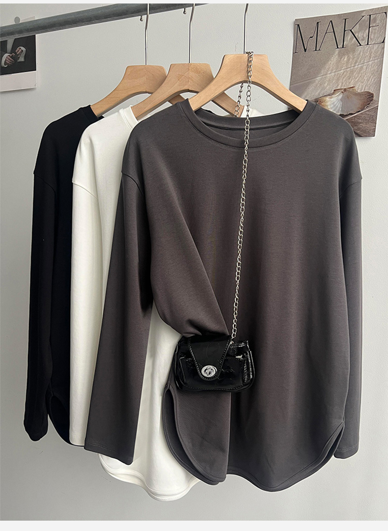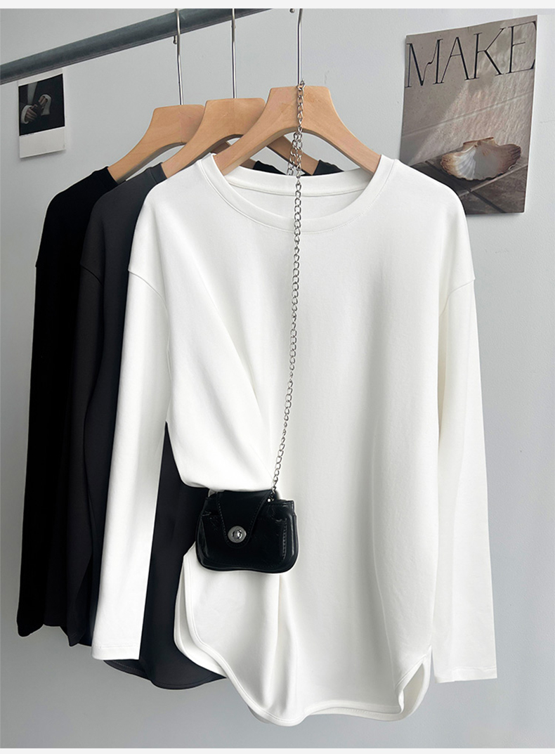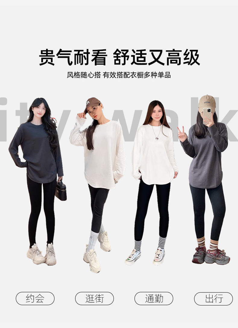 White Long-Sleeved T-Shirt as a Base Layer Paired with Shark Pants, a Mid-Length Top That Covers the Buttocks, New Model for Women in 2025