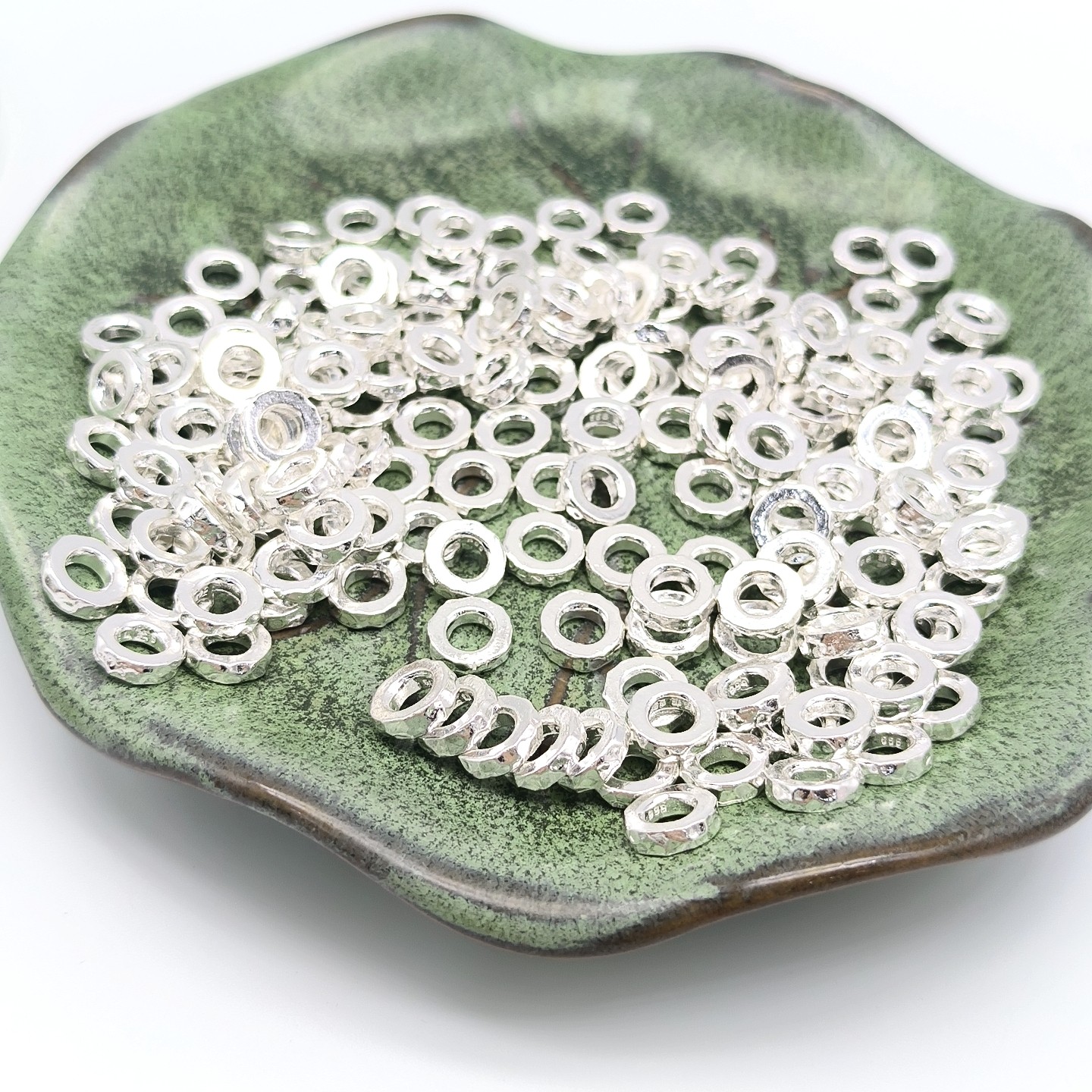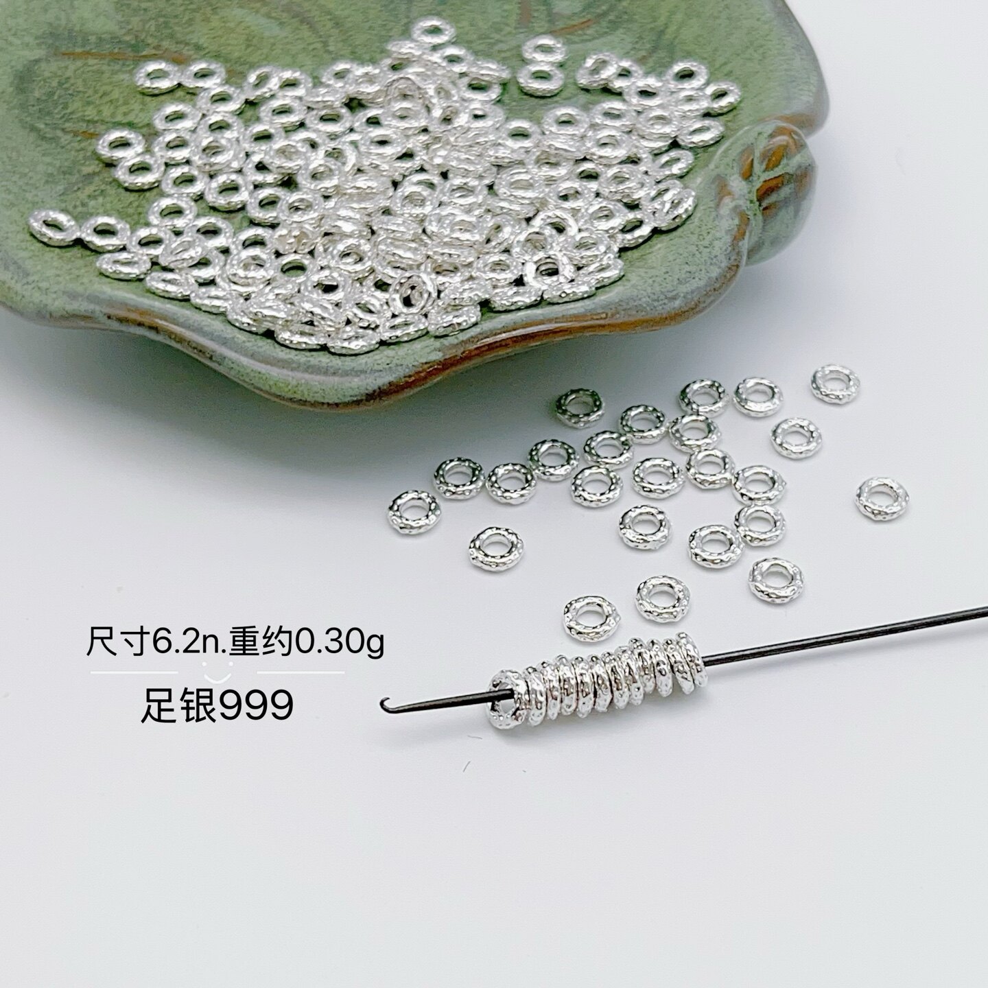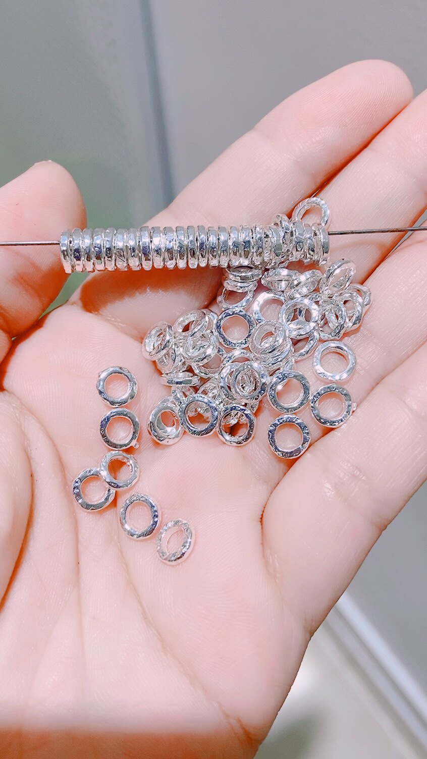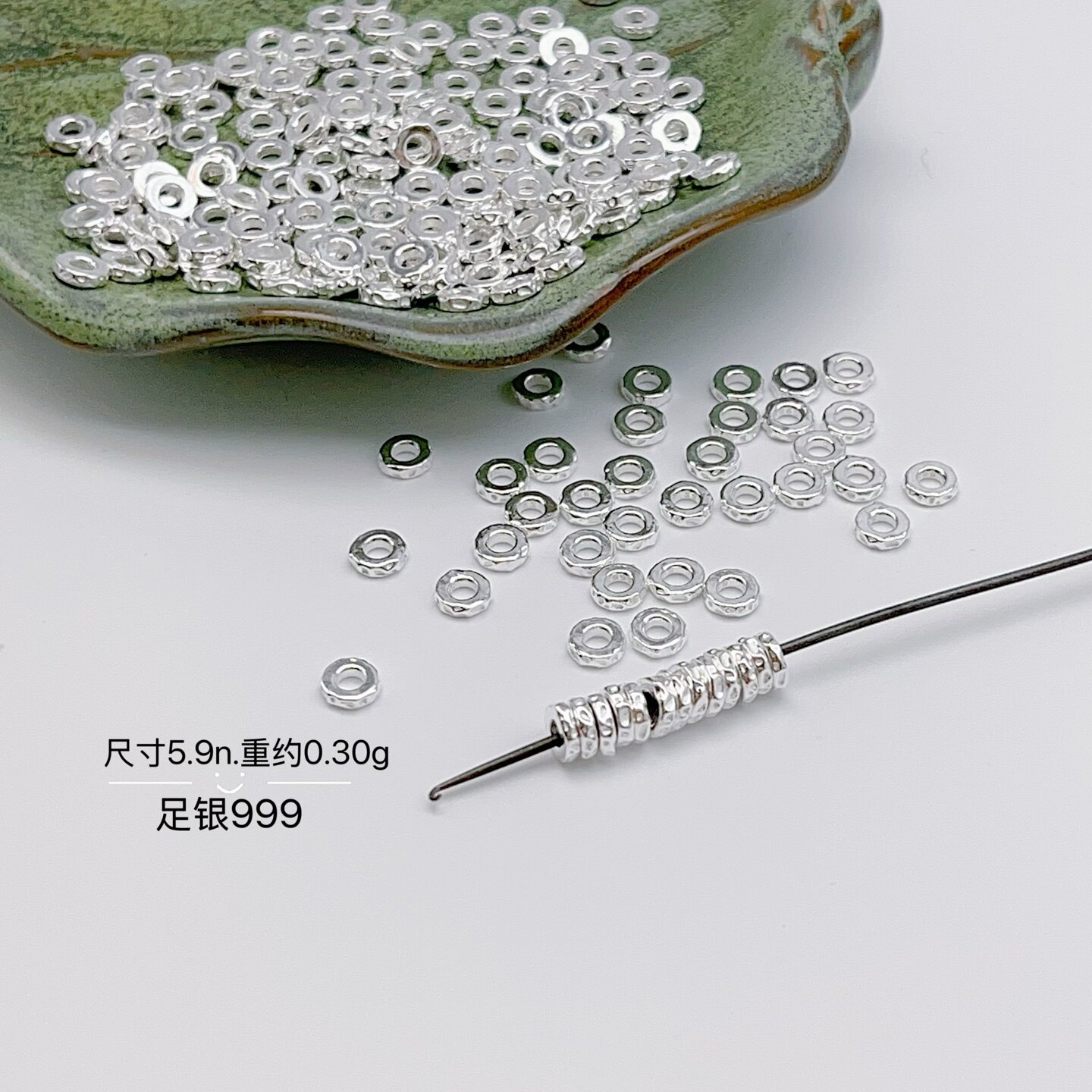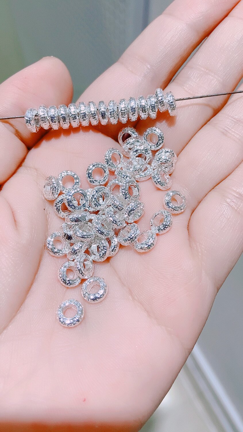 999 Pure Silver Hammered Solid Disc with Beads, Large Hole Spacer, Handmade Braided Cord Accessories