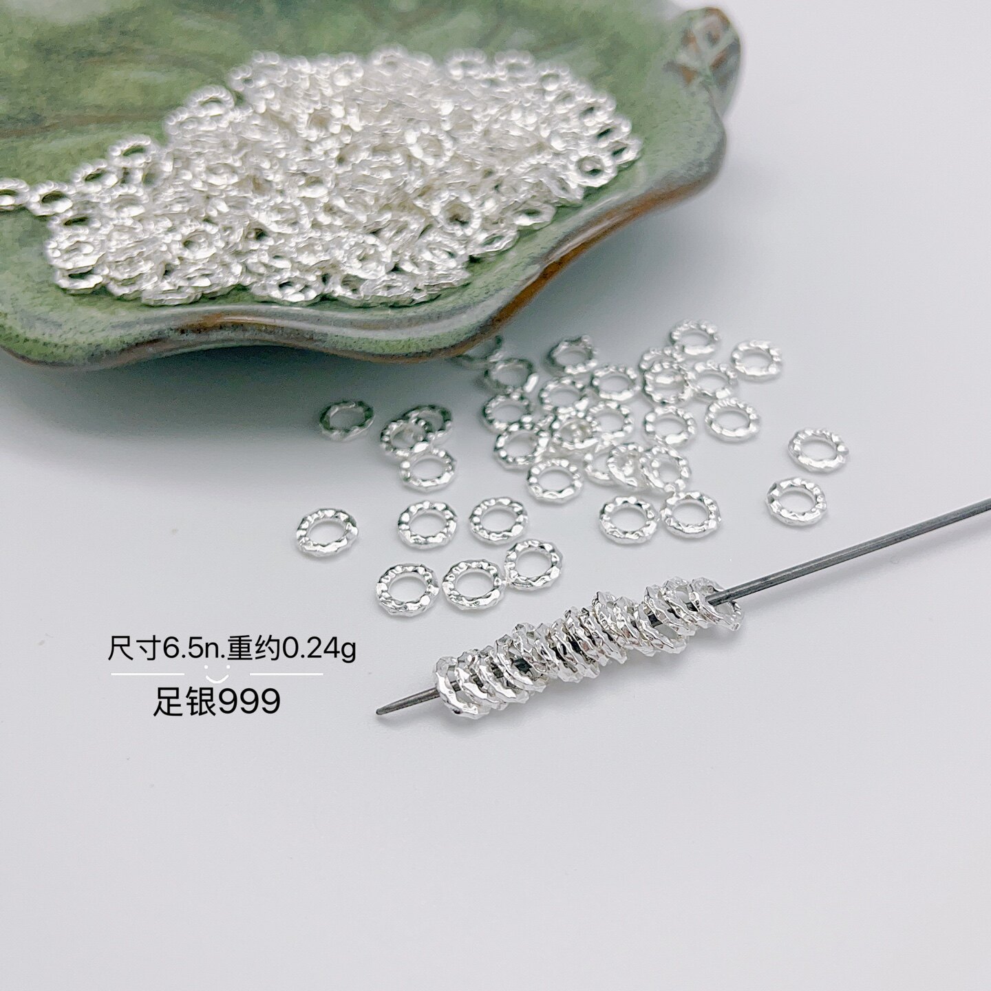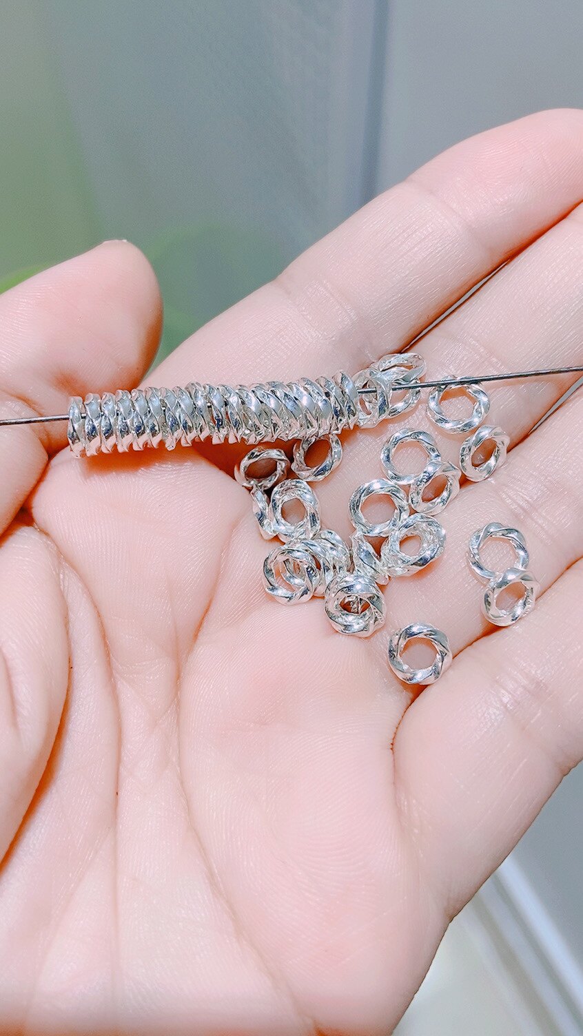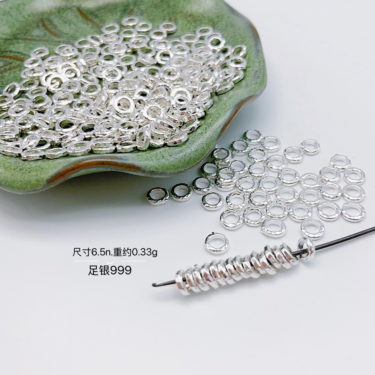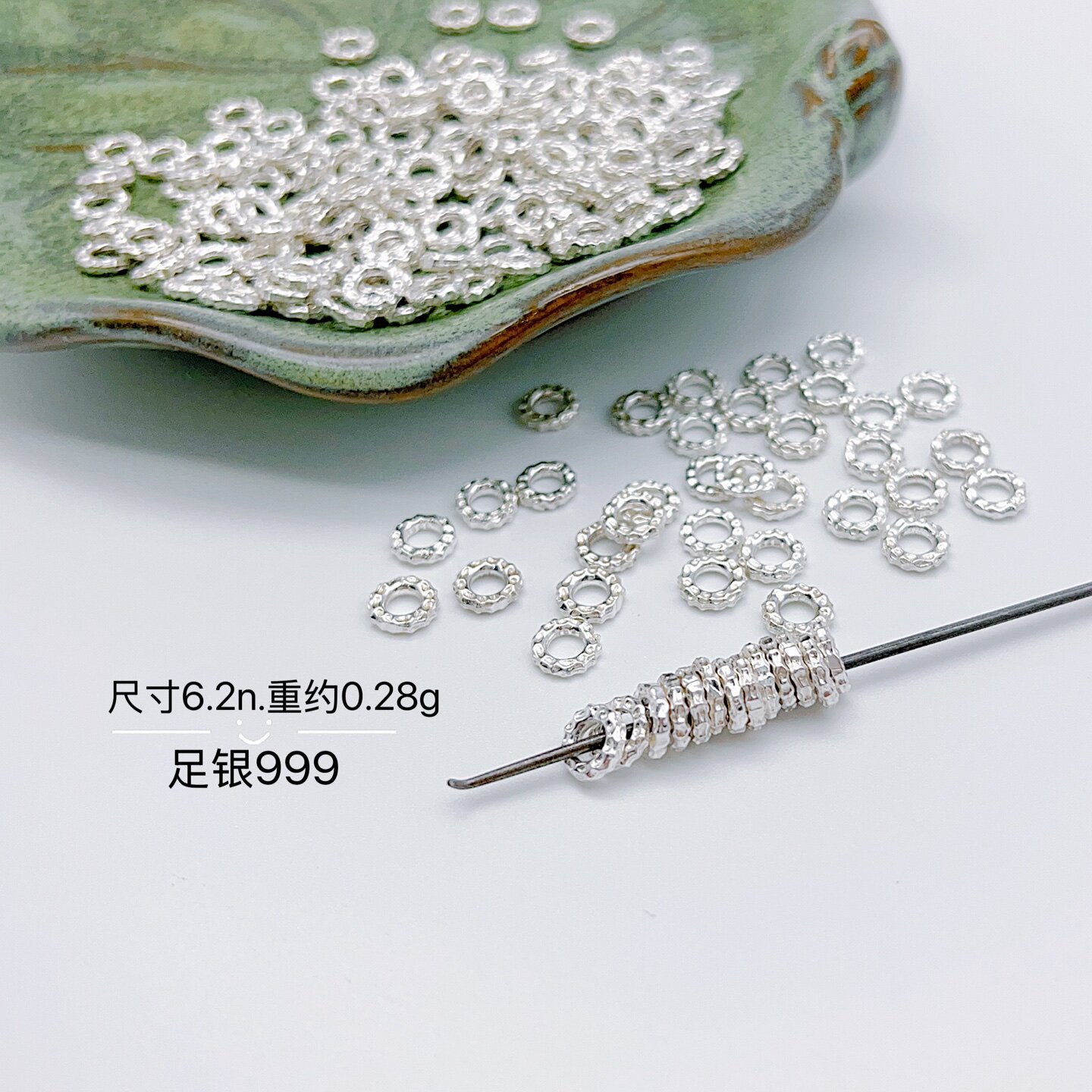 999 Pure Silver Hammered Solid Disc with Beads, Large Hole Spacer, Handmade Braided Cord Accessories